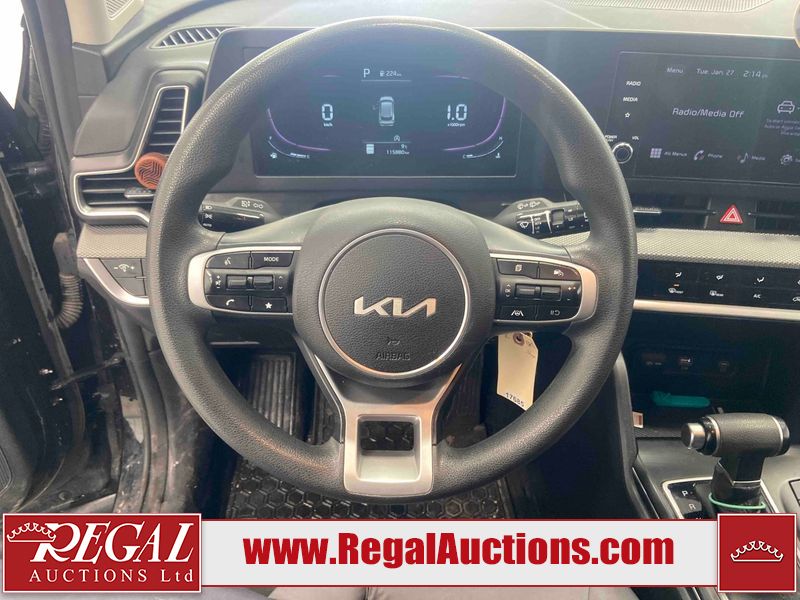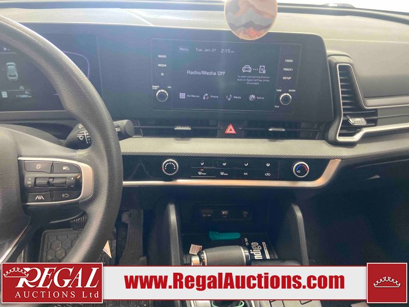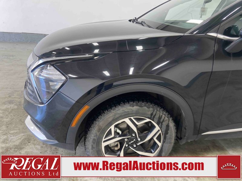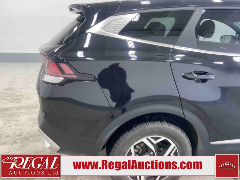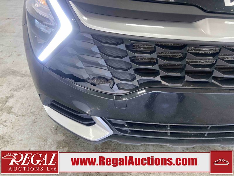 This 2023 KIA SPORTAGE LX 4D UTILITY 4WD 2.5L is powered by a 4 cylinder gasoline engine and an automatic transmission. It is equipped with four wheel drive. The SUV has seats for 5 people. The SUV has high mileage for its age. The vehicle has high value options including heated seats and a backup camera. The body looks to be in fair condition overall. The grille is cracked. There are minor chips on the front bumper, hood, roof, left front fender, left front door, left rear door, right rear fender, right rear door, right front door, and right front fender. There are very minor scratches in many areas around the body. The interior looks to be in fair condition overall. The driver's seat is stained. The carpet is dirty. The windshield is cracked. All of the tires have lots of tread remaining.