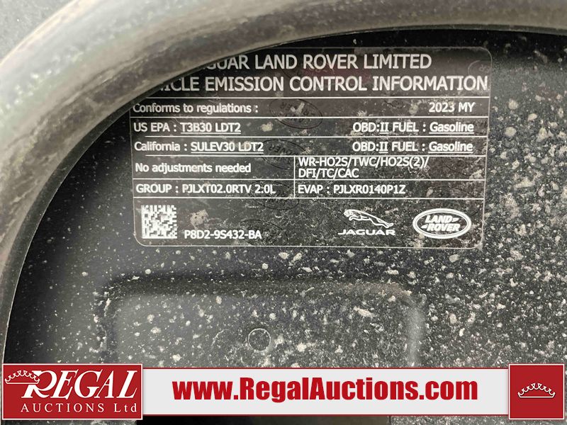This 2023 LAND ROVER RANGE ROVER EVOQUE R-DYNAMIC SE AWD 2.0L is powered by a 4 cylinder gasoline engine and an automatic transmission. It is equipped with four wheel drive. The SUV has seats for 5 people. The mileage is average considering the SUV's age. The vehicle has high value options including a sunroof, leather upholstery, heated seats, and a backup camera. The body looks to be in good condition overall. There are scratches on the rear bumper. There are very minor chips in many areas around the body. There are very minor scratches in many areas around the body. There is very minor dent damage in a few areas around the body. The interior looks to be in good condition overall. The windshield is cracked. The driver's side front tire is nearly bald and should be replaced. The other tires are worn.