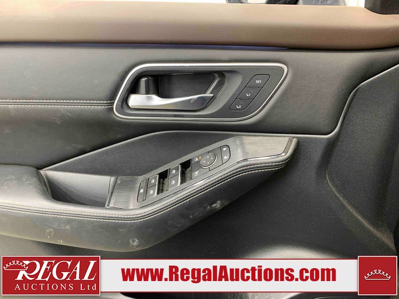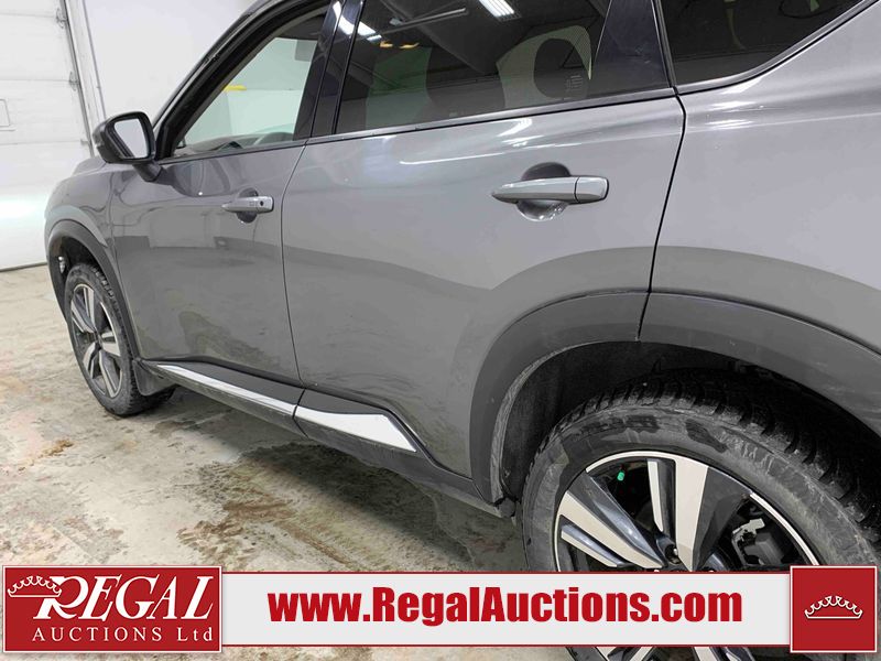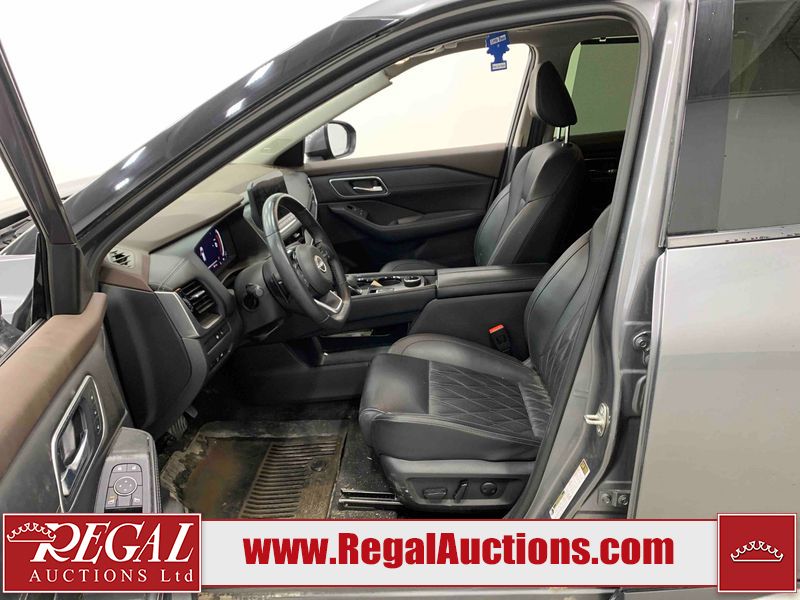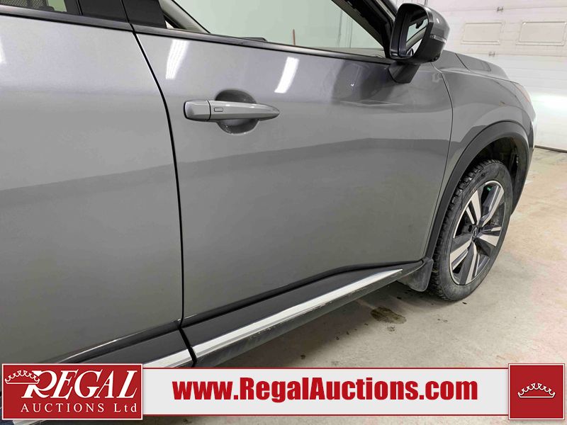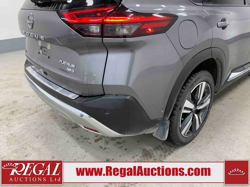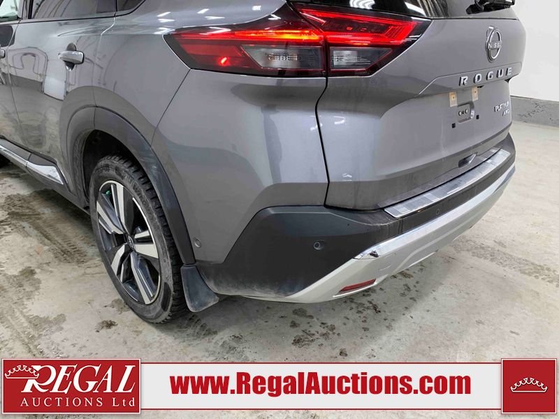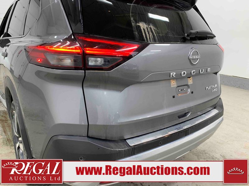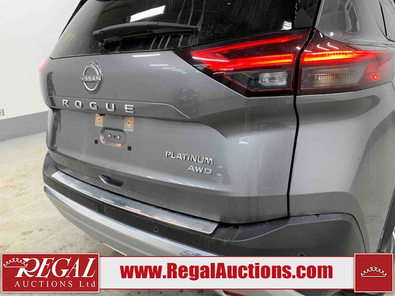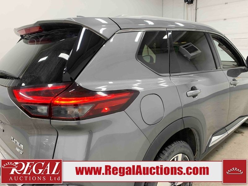 This 2023 NISSAN ROGUE PLATINUM 4D UTILITY 4WD 1.5L is powered by a 3 cylinder gasoline engine and an automatic transmission. It is equipped with four wheel drive. The SUV has seats for 5 people. The SUV has low mileage for its age. PLATINUM is a very popular trim level. The vehicle has high value options including a sunroof, leather upholstery, power seats, heated seats, navigation, and a backup camera. The body looks to be in good condition overall. There is dent damage on the right rear fender. There are very minor chips in many areas around the body. There are very minor scratches in many areas around the body. The interior looks to be in good condition overall. The carpet is dirty. The windshield is chipped. All of the tires have lots of tread remaining.