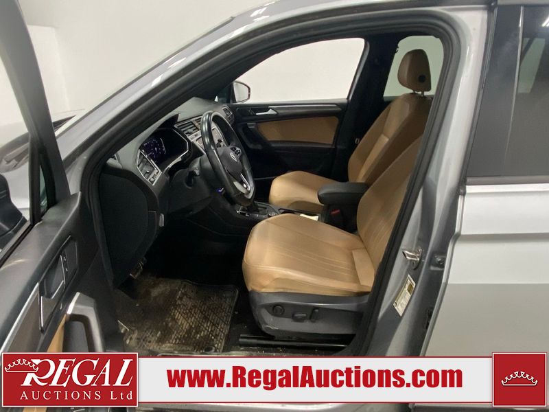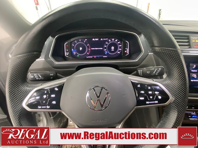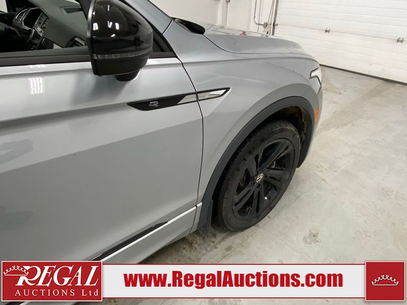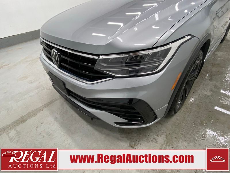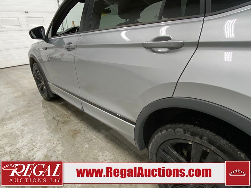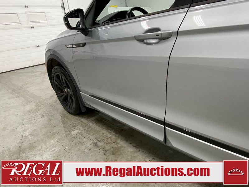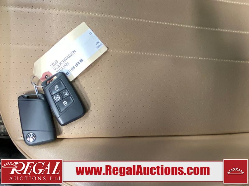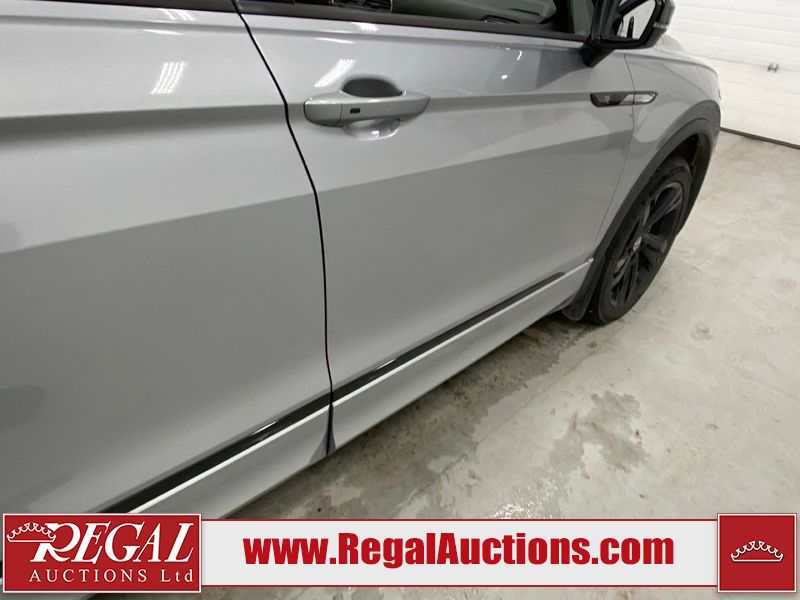 This 2023 VOLKSWAGEN TIGUAN COMFORTLINE R-L BLK 4D UTILITY AWD 2.0L is powered by a turbocharged 4 cylinder gasoline engine and an automatic transmission. It is equipped with four wheel drive. The SUV has seats for 5 people. The SUV has low mileage for its age. The vehicle has high value options including leather upholstery, heated seats, and a backup camera. The body looks to be in good condition overall. There are very minor chips in some areas around the body. There are very minor scratches in many areas around the body. The interior looks to be in good condition overall. The carpet is dirty. The windshield is damaged. All of the tires have lots of tread remaining.