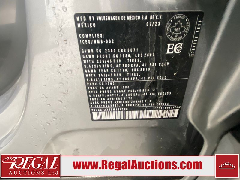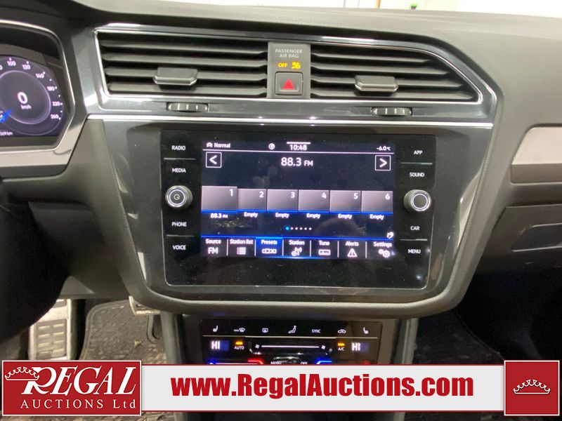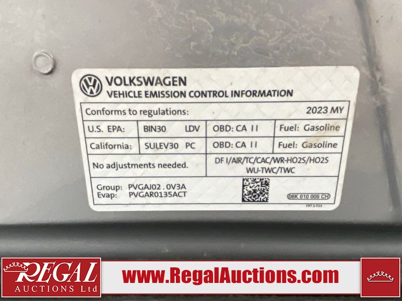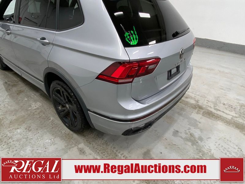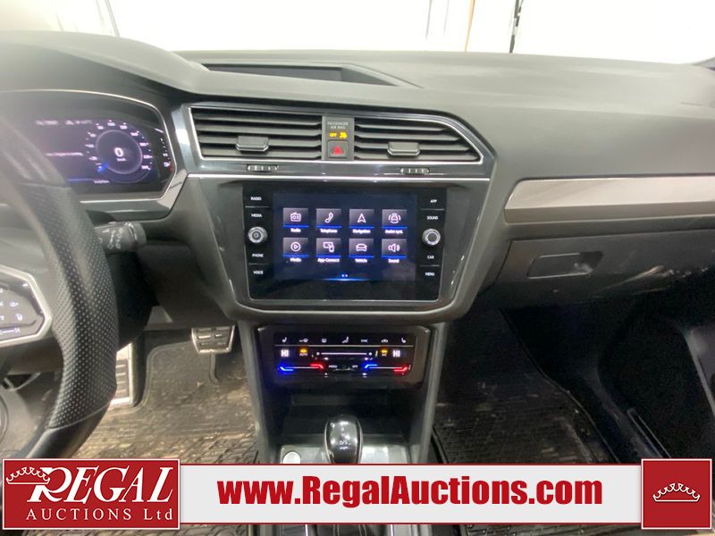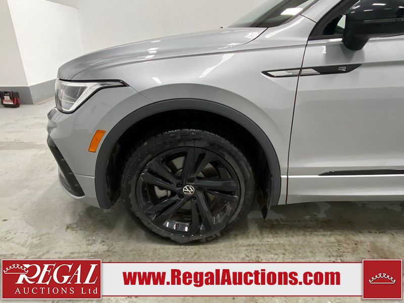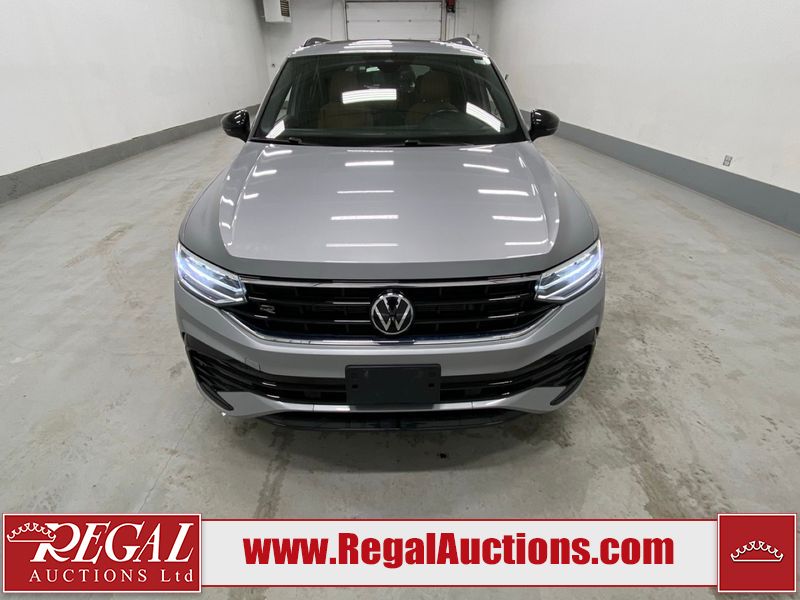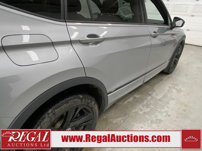 This 2023 VOLKSWAGEN TIGUAN COMFORTLINE R-L BLK 4D UTILITY AWD 2.0L is powered by a turbocharged 4 cylinder gasoline engine and an automatic transmission. It is equipped with four wheel drive. The SUV has seats for 5 people. The SUV has low mileage for its age. The vehicle has high value options including leather upholstery, heated seats, and a backup camera. The body looks to be in good condition overall. There are very minor chips in some areas around the body. There are very minor scratches in many areas around the body. The interior looks to be in good condition overall. The carpet is dirty. The windshield is damaged. All of the tires have lots of tread remaining.