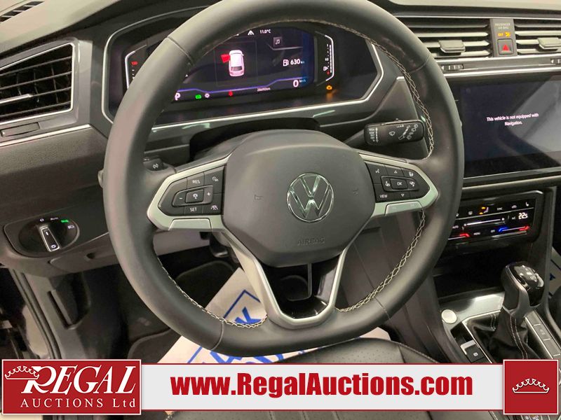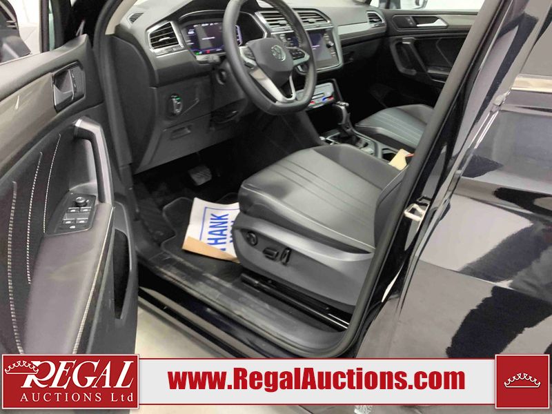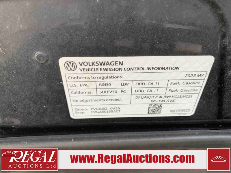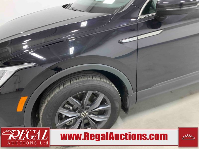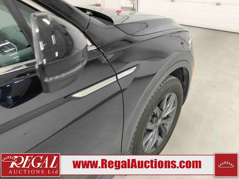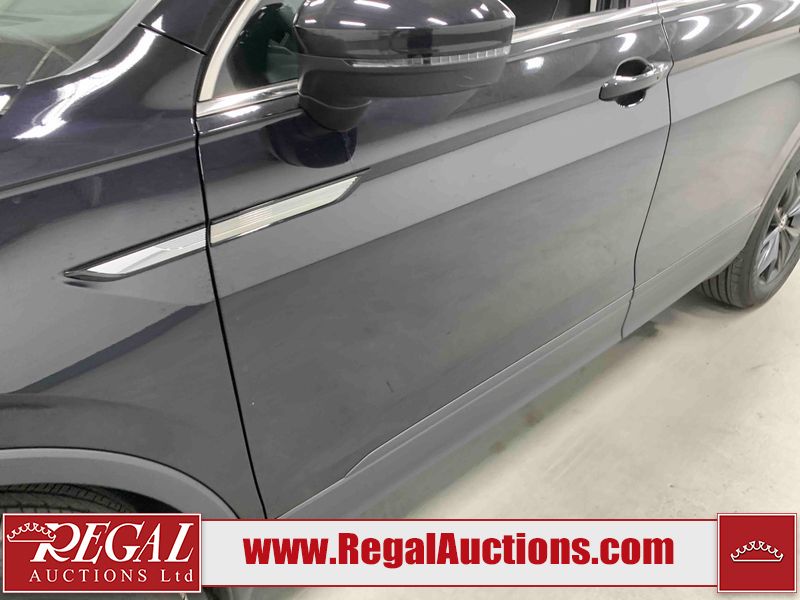 This 2023 VOLKSWAGEN TIGUAN COMFORTLINE 4D UTILITY 4WD 2.0L is powered by a turbocharged 4 cylinder gasoline engine and an automatic transmission. It is equipped with four wheel drive. The SUV has seats for 5 people. The SUV has low mileage for its age. The vehicle has high value options including a sunroof, leather upholstery, power seats, heated seats, and a backup camera. The body looks to be in fair condition overall. There are minor chips on the front bumper, grille, hood, left front fender, and left front door. There are scratches on the front bumper, roof, left front fender, left front door, and rear bumper. There is dent damage on the left rear fender and right front door. There are very minor scratches in many areas around the body. There are very minor chips in many areas around the body. The interior looks to be in good condition overall. The carpet is dirty. The windshield is chipped. All of the tires have lots of tread remaining.