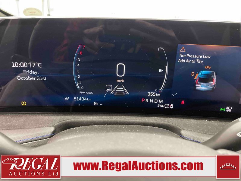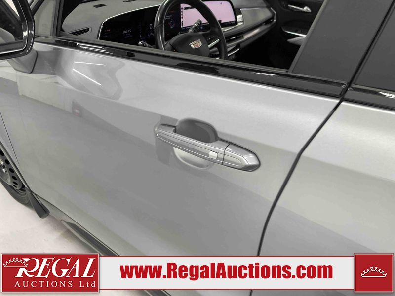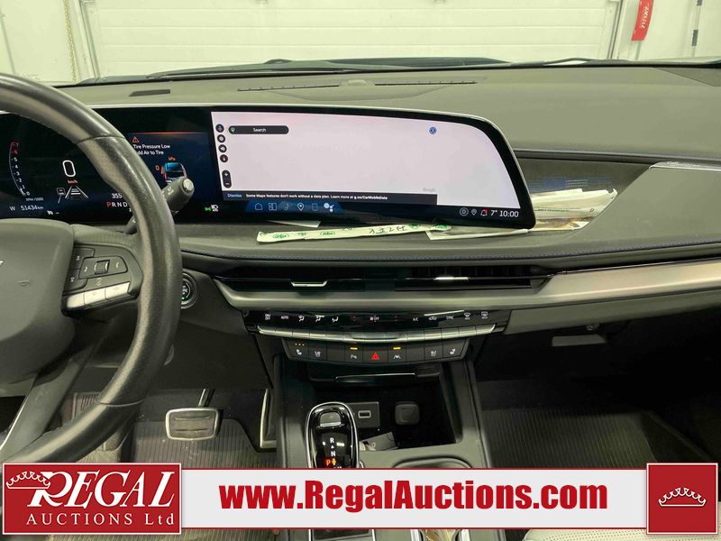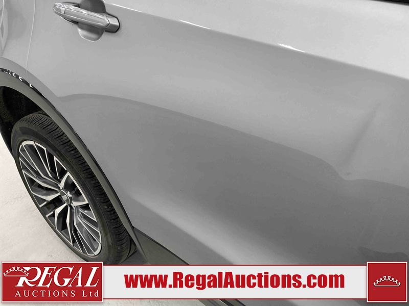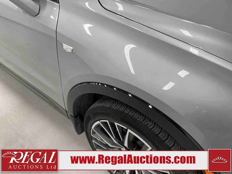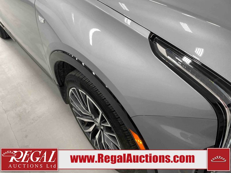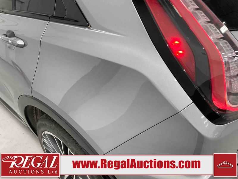 This 2024 CADILLAC XT4 SPORT 4D UTILITY AWD 2.0L is powered by a turbocharged 4 cylinder gasoline engine and an automatic transmission. It is equipped with four wheel drive. The SUV has seats for 5 people. The SUV has high mileage for its age. The vehicle has high value options including a sunroof, leather upholstery, power seats, heated seats, navigation, and a backup camera. The body looks to be in good condition overall. There are slight chips on the front bumper, hood, and rear bumper. There are very minor scratches in many areas around the body. There are very minor chips in many areas around the body. There is very minor dent damage on the right rear door. The interior looks to be in good condition overall. The carpet is dirty. The windshield is chipped. The driver's side front tire is nearly bald and should be replaced. All of the other tires have lots of tread remaining. The left front wheel is a spare. The factory alloy with the damaged tire mounted is in the rear.