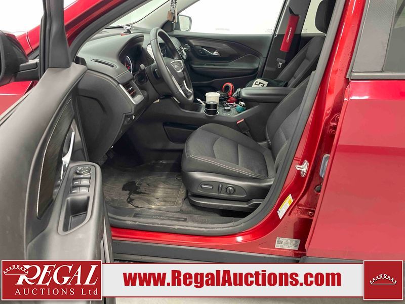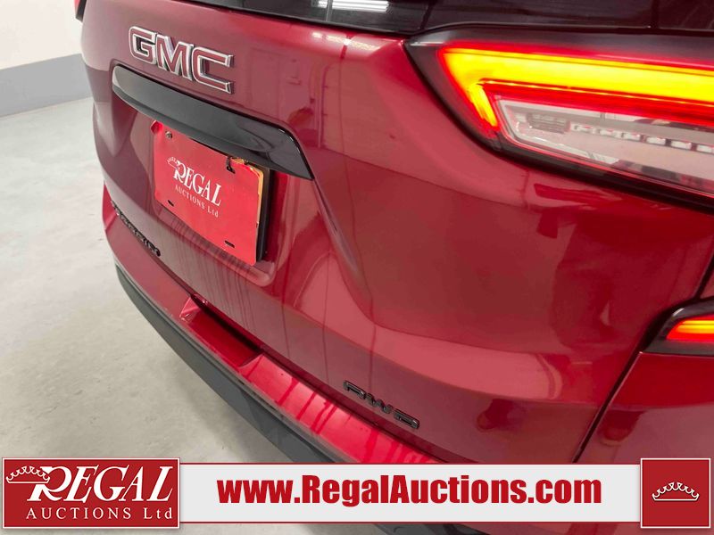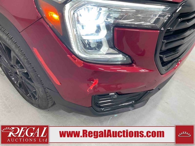 This 2024 GMC TERRAIN SLE 4D UTILITY AWD 1.5L is powered by a turbocharged 4 cylinder gasoline engine and an automatic transmission. It is equipped with four wheel drive. The SUV has seats for 5 people. The SUV has high mileage for its age. The vehicle has high value options including power seats, heated seats, a backup camera, and a power lift gate. The body looks to be in rough condition overall. The front bumper is cracked. There are chips on the front bumper, grille, hood, roof, left front fender, left front door, left rear door, left rear fender, rear bumper, right rear fender, right rear door, right front door, and right front fender. There are scratches on the front bumper, hood, roof, left front fender, left front door, left rear door, left rear fender, rear bumper, rear door, right rear fender, right rear door, right front door, and right front fender. There is very minor dent damage in a few areas around the body. There are very minor chips on the rear door. The interior looks to be in good condition overall. The carpet is dirty. The windshield is chipped. All of the tires have lots of tread remaining.