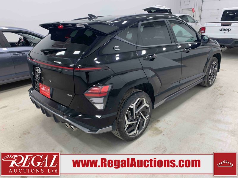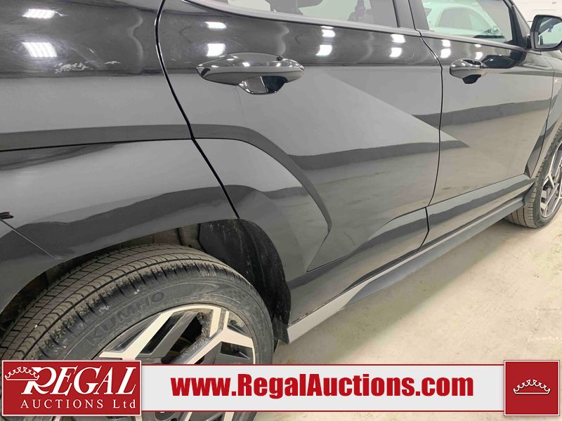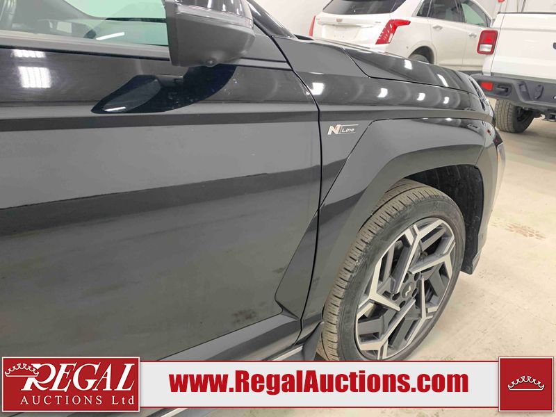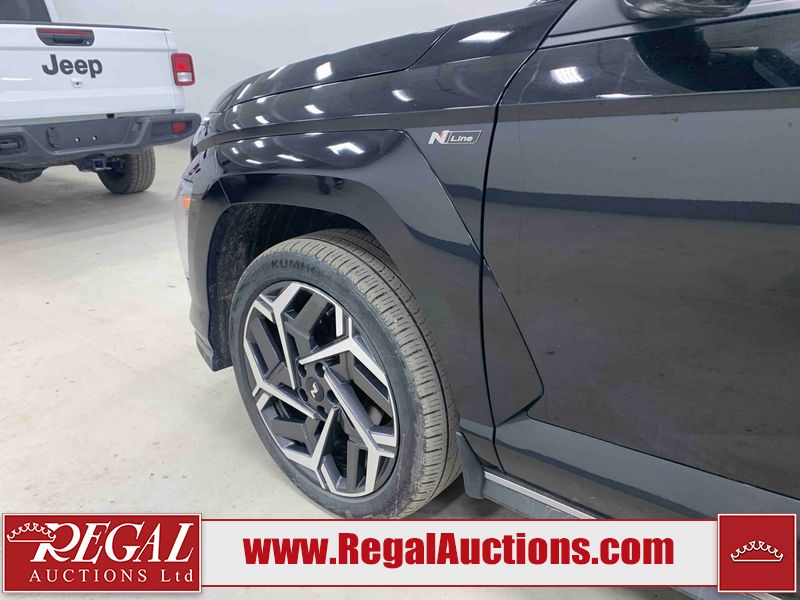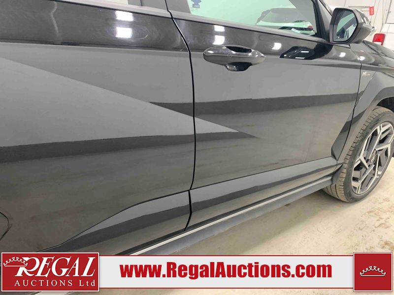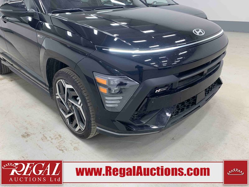 This 2024 HYUNDAI KONA N LINE ULTIMATE 4D SPORT UTILITY AWD 1.6L is powered by a turbocharged 4 cylinder gasoline engine and an automatic transmission. It is equipped with four wheel drive. The SUV has seats for 5 people. The SUV has low mileage for its age. The vehicle has high value options including a sunroof, leather upholstery, power seats, heated seats, navigation, and a backup camera. The body looks to be in fair condition overall. There are scratches on the hood, left front door, left rear door, left rear fender, rear bumper, rear door, and right rear door. There is dent damage on the rear bumper. There are very minor chips in many areas around the body. There are very minor scratches in many areas around the body. There is very minor dent damage on the rear door. The interior looks to be in fair condition overall. The dashboard, driver's seat, passenger seat, rear seats, and doors are dirty. The windshield looks to be in good condition. The tires are all worn.