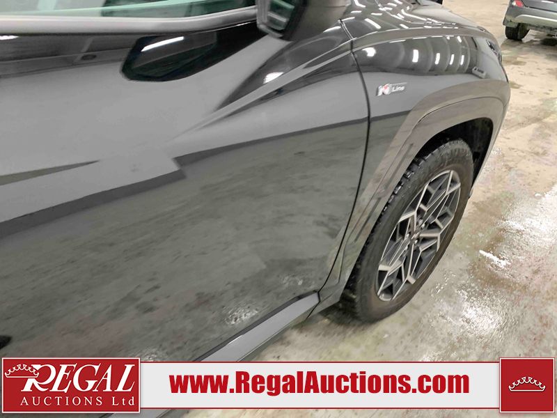 This 2024 HYUNDAI TUCSON N-LINE HYBRID 4D UTILITY AWD 1.6L is powered by a turbocharged 4 cylinder hybrid engine and an automatic transmission. It is equipped with four wheel drive. The SUV has seats for 5 people. The SUV has high mileage for its age. The vehicle has high value options including a sunroof, leather upholstery, power seats, heated seats, a backup camera, and a power lift gate. The body looks to be in fair condition overall. The rear bumper and rear door are cracked. There are minimal scratches on the right rear door and right front door. There is dent damage on the right rear door and right front door. There are very minor chips in many areas around the body. There are very minor scratches in many areas around the body. There is very minor dent damage in a few areas around the body. The interior looks to be in good condition overall. The windshield looks to be in good condition. All of the tires have lots of tread remaining.