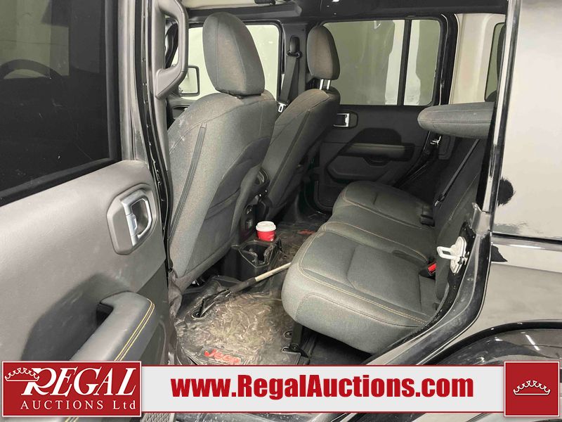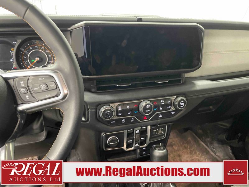 This 2024 JEEP WRANGLER SAHARA 4D UTILITY 4WD 2.0L is powered by a turbocharged 4 cylinder gasoline engine and an automatic transmission. It is equipped with four wheel drive. The SUV has seats for 5 people. The SUV has low mileage for its age. SAHARA is a very popular trim level. The vehicle has high value options including heated seats and a backup camera. The infotainment screen is inoperable. The body looks to be in good condition overall. There are minimal scratches on the roof, left front fender, and right rear fender. There are very minor chips in many areas around the body. There are very minor scratches in many areas around the body. There is very minor dent damage on the left front door. The interior looks to be in good condition overall. The windshield is cracked. All of the tires have lots of tread remaining.