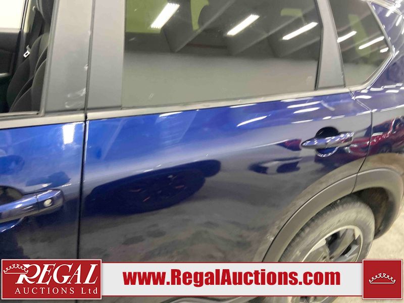 This 2024 NISSAN ROGUE SV MOONROOF 4D UTILITY AWD 1.5L is powered by a turbocharged 3 cylinder gasoline engine and an automatic transmission. It is equipped with four wheel drive. The SUV has seats for 5 people. The SUV has high mileage for its age. The vehicle has high value options including a sunroof, power seats, heated seats, a backup camera, and a power lift gate. The body looks to be in rough condition overall. There is very bad hail on the hood, roof, left front door, left rear door, left rear fender, right rear fender, and right rear door. There is moderate hail on the left front door and right front fender. There are chips on the rear bumper. There are scratches on the rear bumper. There are very minor chips in many areas around the body. There are very minor scratches in many areas around the body. The interior looks to be in fair condition overall. The driver's seat, passenger seat, and rear seats are stained. The carpet is dirty. The windshield is cracked. All of the tires have lots of tread remaining.