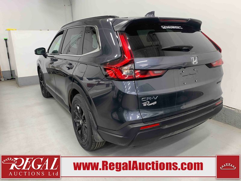 This 2025 HONDA CR-V SPORT 4D UTILITY AWD 1.5L is powered by a turbocharged 4 cylinder gasoline engine and an automatic transmission. It is equipped with four wheel drive. The SUV has seats for 5 people. The mileage is average considering the SUV's age. The vehicle has high value options including a sunroof, power seats, heated seats, a backup camera, and a power lift gate. The body looks to be in good condition overall. There are very minor scratches in many areas around the body. There are very minor chips on the grille. The interior looks to be in fair condition overall. The windshield is cracked. All of the tires are nearly bald and should be replaced.