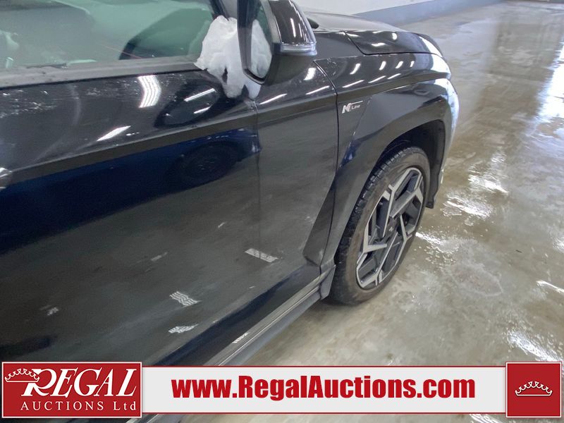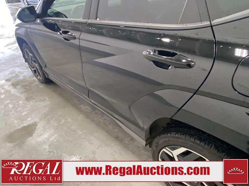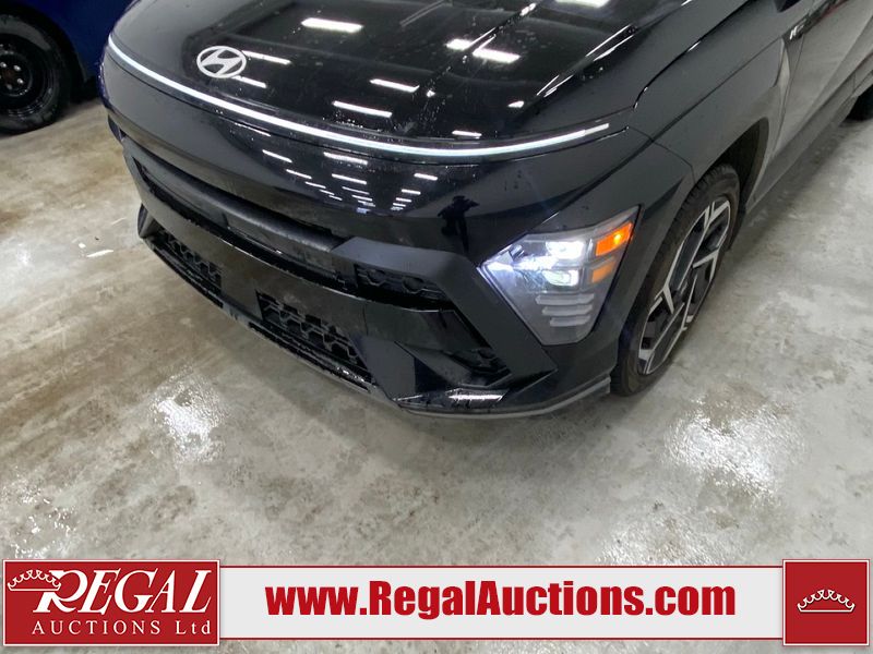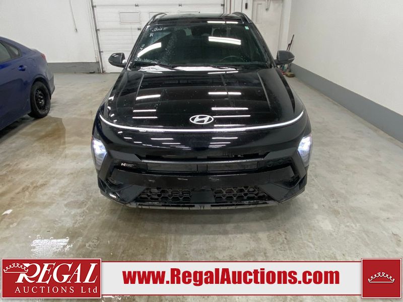 This 2025 HYUNDAI KONA N-LINE 4D UTILITY 4WD 1.6L is powered by a turbocharged 4 cylinder gasoline engine and an automatic transmission. It is equipped with four wheel drive. The SUV has seats for 4 people. The SUV has low mileage for its age. The vehicle has high value options including a sunroof, leather upholstery, power seats, heated seats, navigation, and a backup camera. The body looks to be in good condition overall. There are very minor chips on the front bumper. There are very minor scratches in many areas around the body. The interior looks to be in good condition overall. The windshield is cracked. All of the tires have lots of tread remaining.
