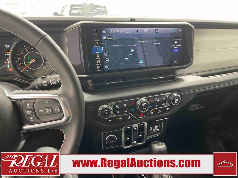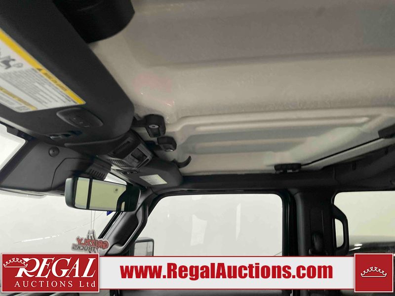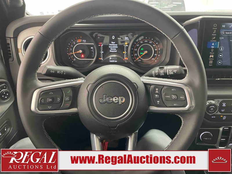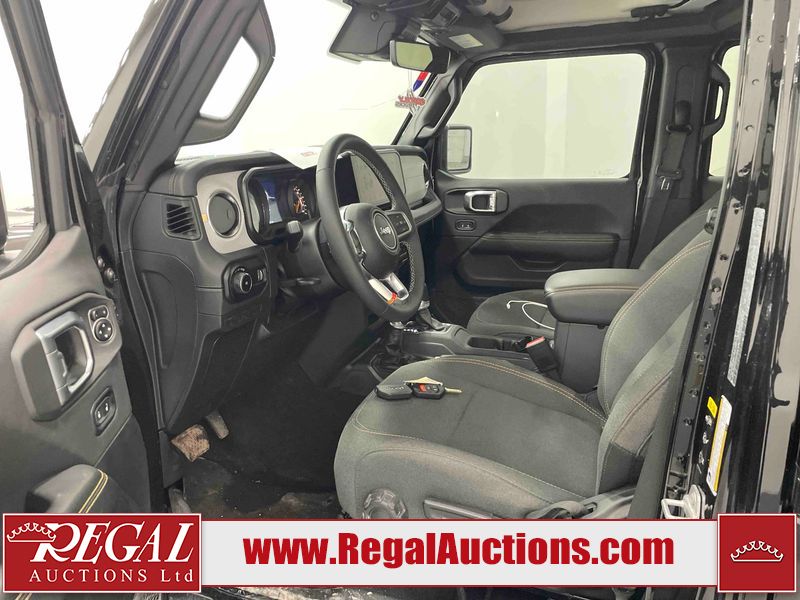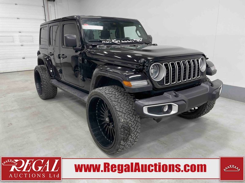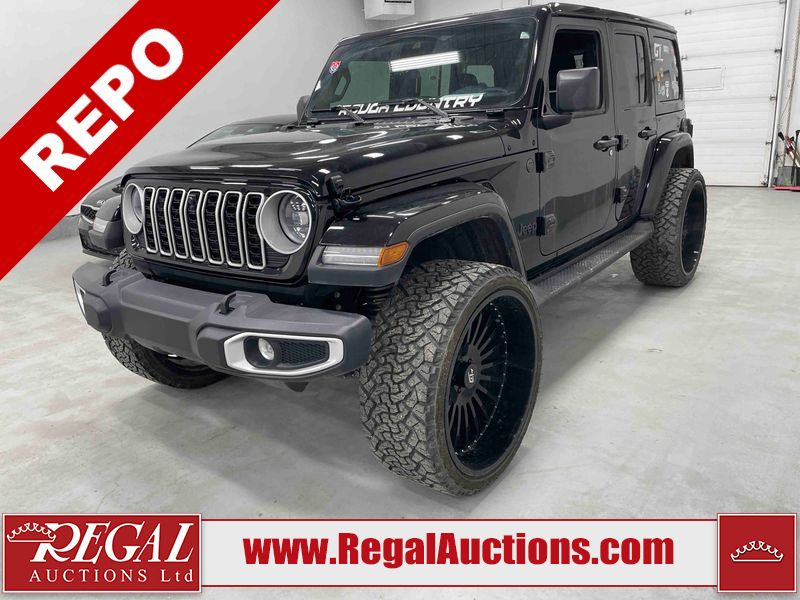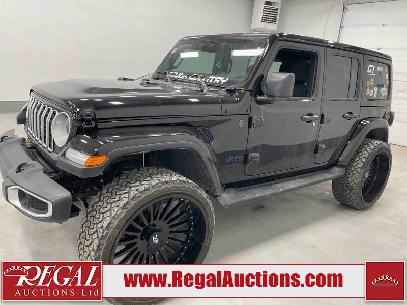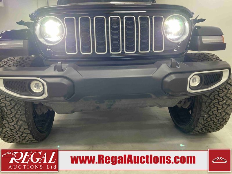 This 2025 JEEP WRANGLER SAHARA 4D UTILITY 4WD 2.0L is powered by a turbocharged 4 cylinder gasoline engine and an automatic transmission. It is equipped with four wheel drive. The SUV has seats for 5 people. The SUV has low mileage for its age. SAHARA is a very popular trim level. The vehicle has high value options including heated seats, navigation, and a backup camera. This unit is equipped with aftermarket suspension, shocks absorbers, and springs. The original shock absorbers, and springs are missing. The body looks to be in good condition overall. There are minimal scratches on the left front fender. There are minor chips on the left front fender. There are very minor chips in many areas around the body. There are very minor scratches in many areas around the body. The interior looks to be in good condition overall. The windshield is cracked. All of the tires have lots of tread remaining. Aftermarket alloy rims are mounted, factory alloys are missing.