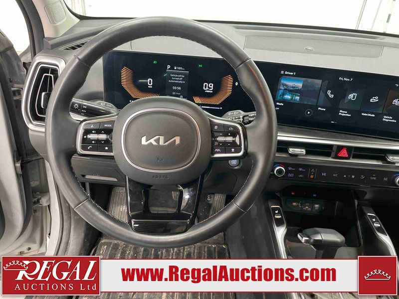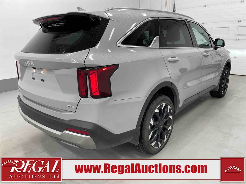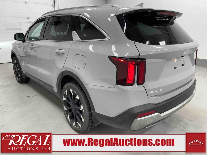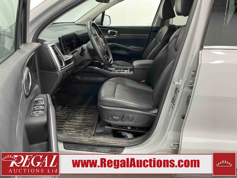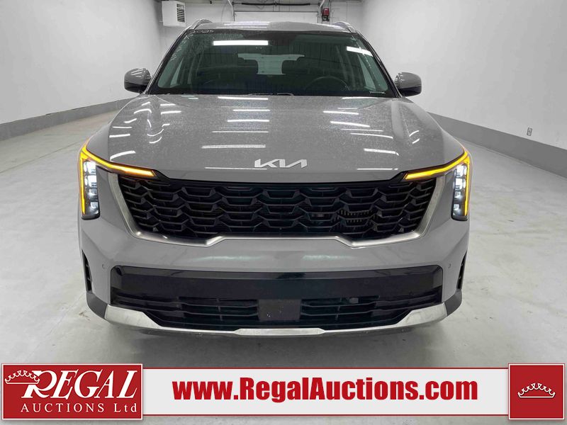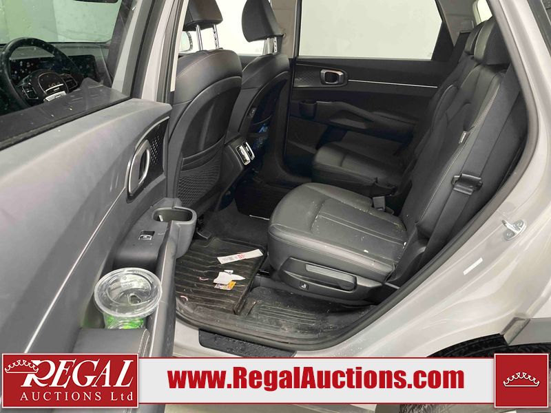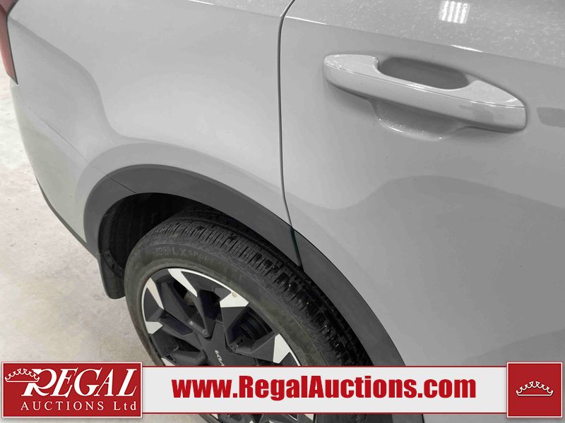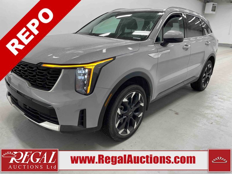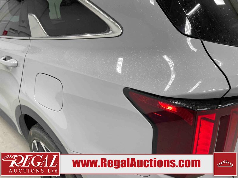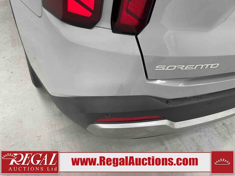 This 2025 KIA SORENTO EX 4D UTILITY 4WD 2.5L is powered by a turbocharged 4 cylinder gasoline engine and an automatic transmission. It is equipped with four wheel drive. The SUV has seats for 7 people. The SUV has high mileage for its age. The vehicle has high value options including leather upholstery, power seats, heated seats, a backup camera, and a power lift gate. The body looks to be in good condition overall. There are incidental chips on the grille, hood, and rear bumper. There are very minor chips in many areas around the body. There are very minor scratches in many areas around the body. There is very minor dent damage on the hood. The interior looks to be in fair condition overall. The rear seats are worn. The carpet is dirty. The windshield is chipped. The front tires are both worn. The rear tires both have lots of tread remaining.