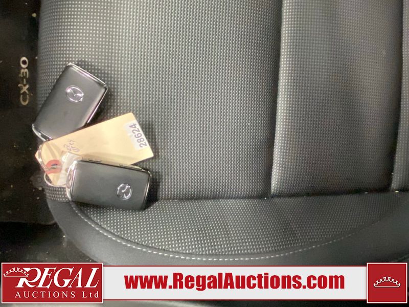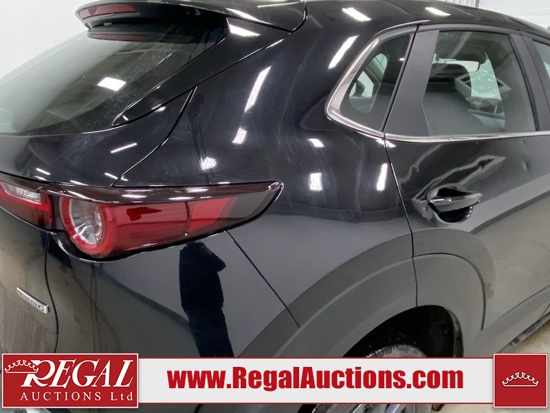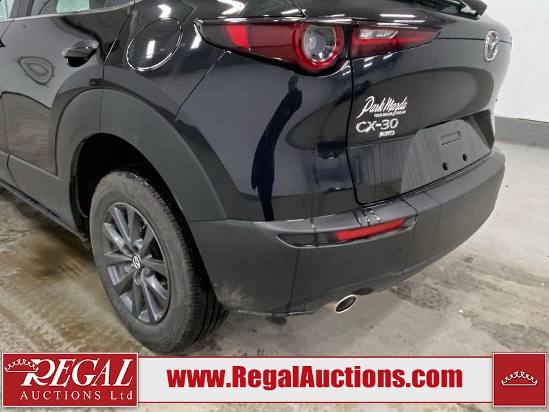 This 2025 MAZDA CX-30 GX 4D UTILITY 4WD is powered by a turbocharged 4 cylinder gasoline engine and an automatic transmission. It is equipped with four wheel drive. The SUV has seats for 5 people. The SUV has low mileage for its age. The vehicle has high value options including heated seats, a DVD Player, and a backup camera. The body looks to be in rough condition overall. There is very bad hail on the hood and roof. There is noteworthy hail on the left front fender, left rear fender, right rear fender, and right rear door. There are slight scratches on the hood. There is hail on the left rear door, right front door, and right front fender. There are very minor chips in many areas around the body. There are very minor scratches in many areas around the body. The interior looks to be in good condition overall. The carpet is dirty. The windshield is damaged. All of the tires have lots of tread remaining.