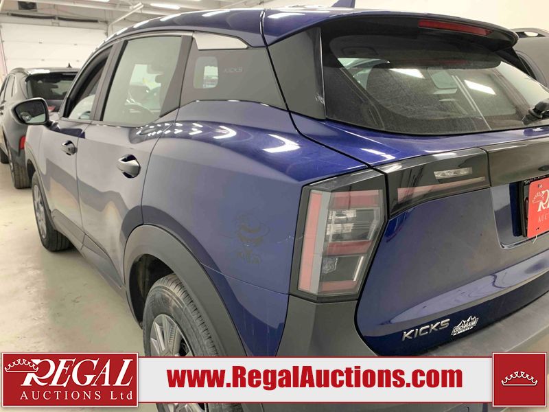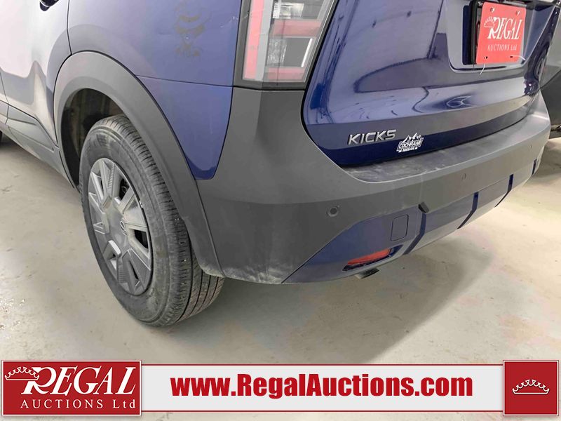 This 2025 NISSAN KICKS S 4D UTILITY AWD 2.0L is powered by a 4 cylinder gasoline engine and an automatic transmission. It is equipped with four wheel drive. The SUV has seats for 5 people. The SUV has low mileage for its age. The vehicle has high value options including heated seats and a backup camera. The body looks to be in good condition overall. There is dent damage on the left rear fender and right front door. There are minimal scratches on the left rear fender and right rear fender. There are very minor scratches in many areas around the body. There are very minor chips in many areas around the body. The interior looks to be in good condition overall. The carpet is dirty. The windshield looks to be in good condition. All of the tires have lots of tread remaining.