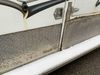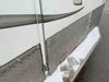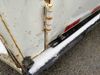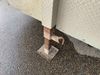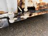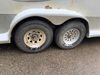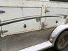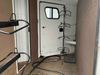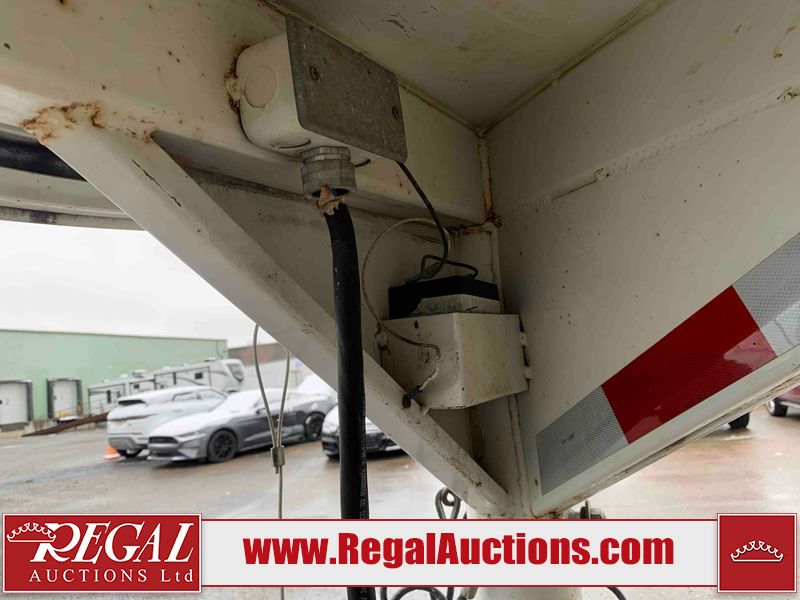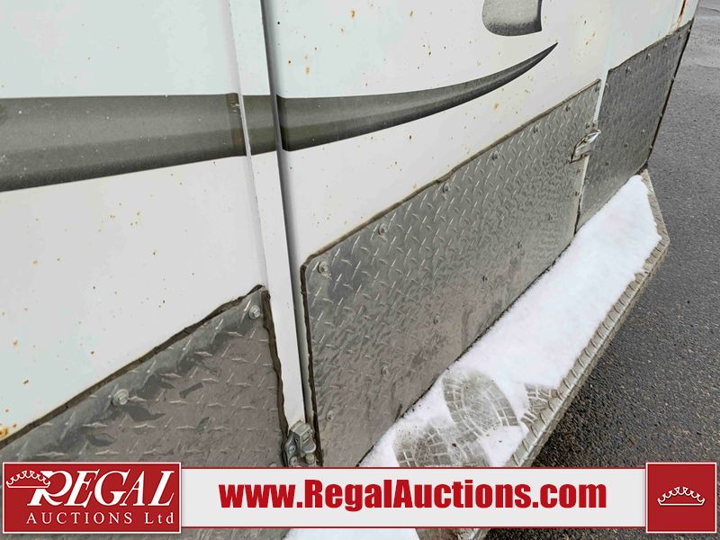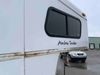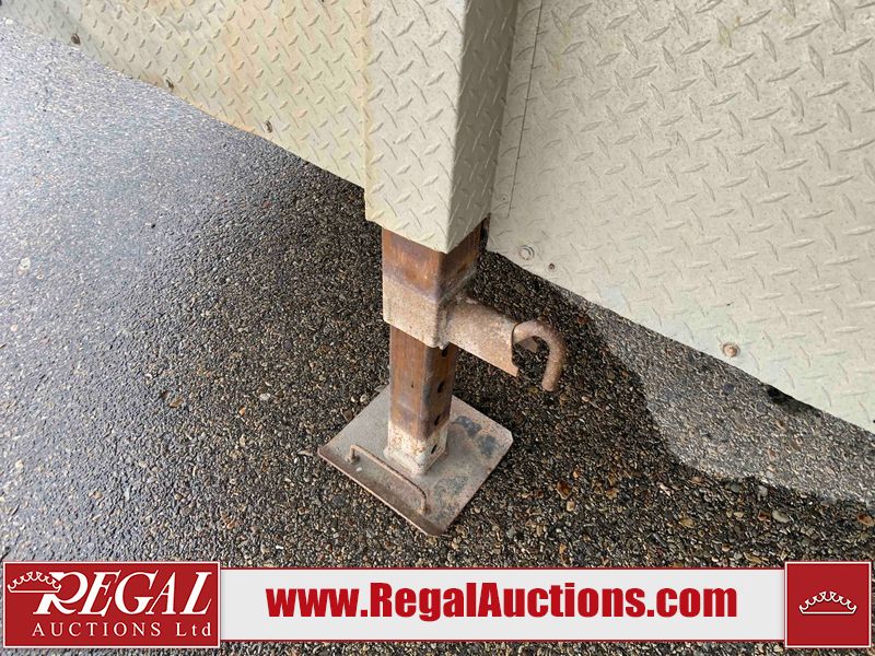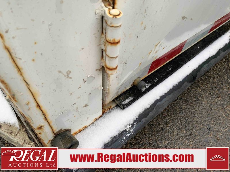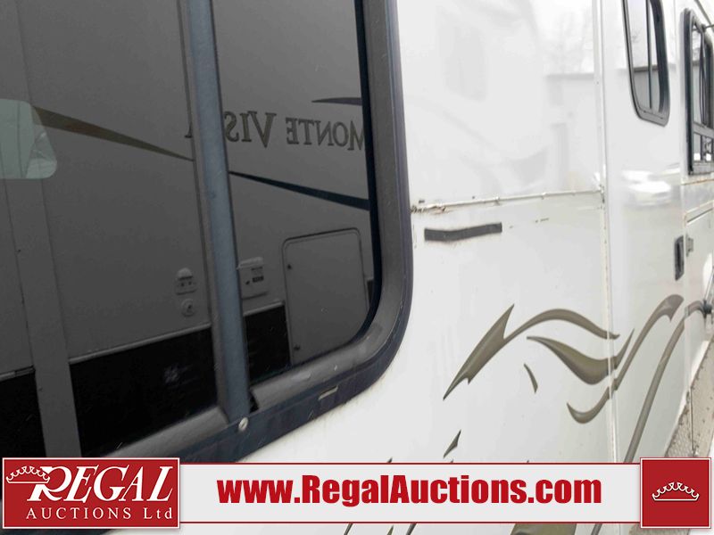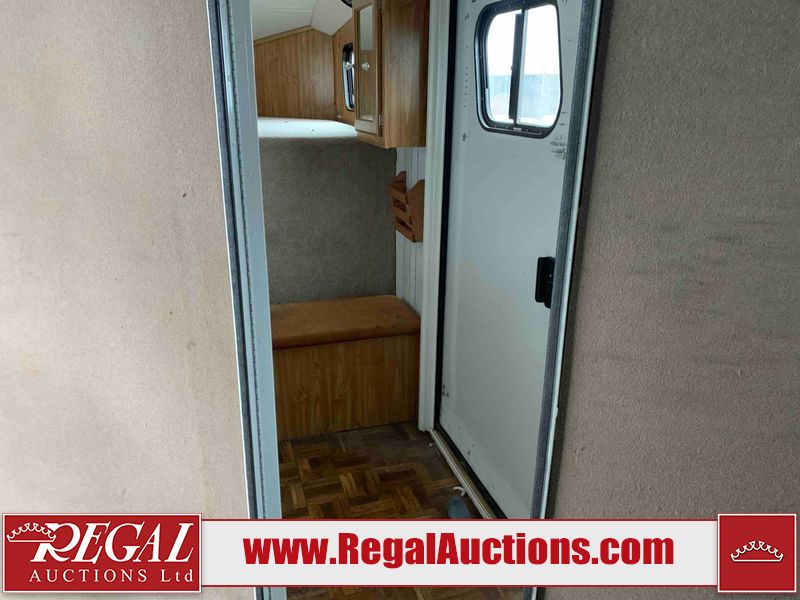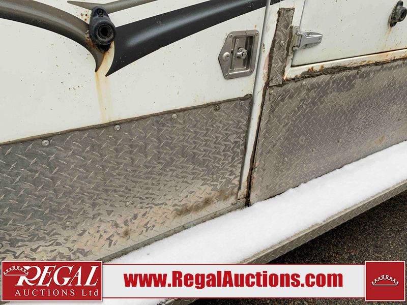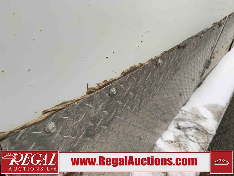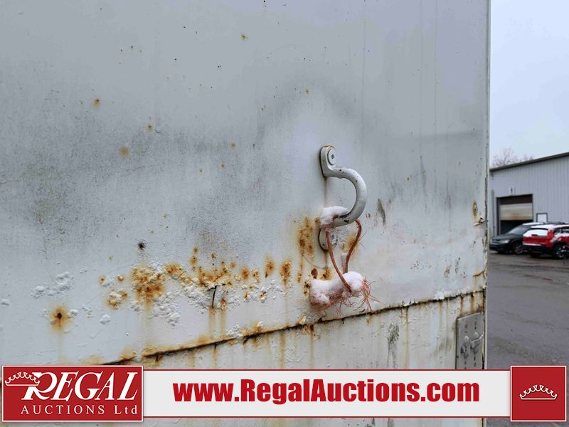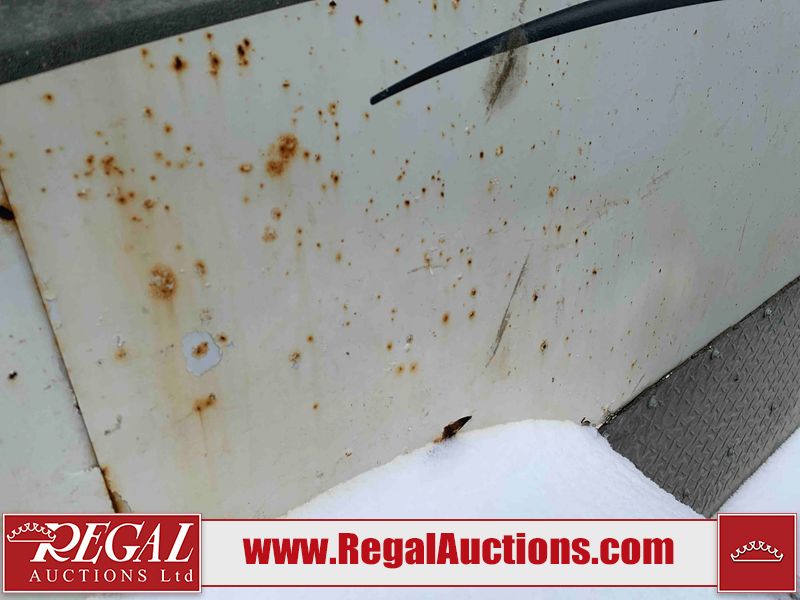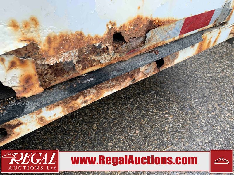 This 49 foot horse trailer is a 2005 trails West Manufac Tandem axle fifth wheel. It has a dual door entry. The interior is dirty. Interior floors are made of rubber matting. Some areas of the floor are torn. The right wall matting is torn. There are scratches and scuffs on all panels. The tack room door trims are separating. The roof is showing water damage. The wallpaper is lifting. Exterior walls are made of hard wall fiberglass. The frame has surface rust. The front end is showing scratches and scuffs. The front shield and roof has hail damage. All aluminum panels have been poorly resealed. Most of the left and right wall weatherstripping has been removed. All panels have been repainted. Some decals are peeling. The rear doors have penetrating rust. The right wall has peeling paint. The right front wall is cracked. This unit gets power with external power applied. This unit is missing a battery. The tires are mounted to steel rims and appear to be in good enough condition for use. This unit is equipped with a stereo system.
