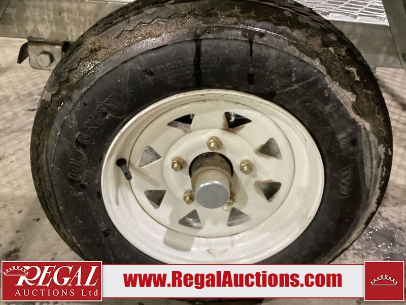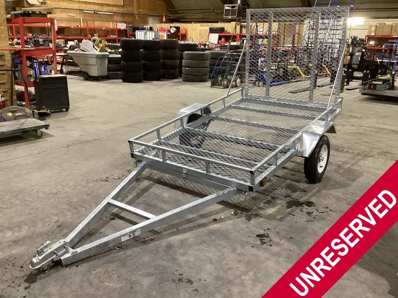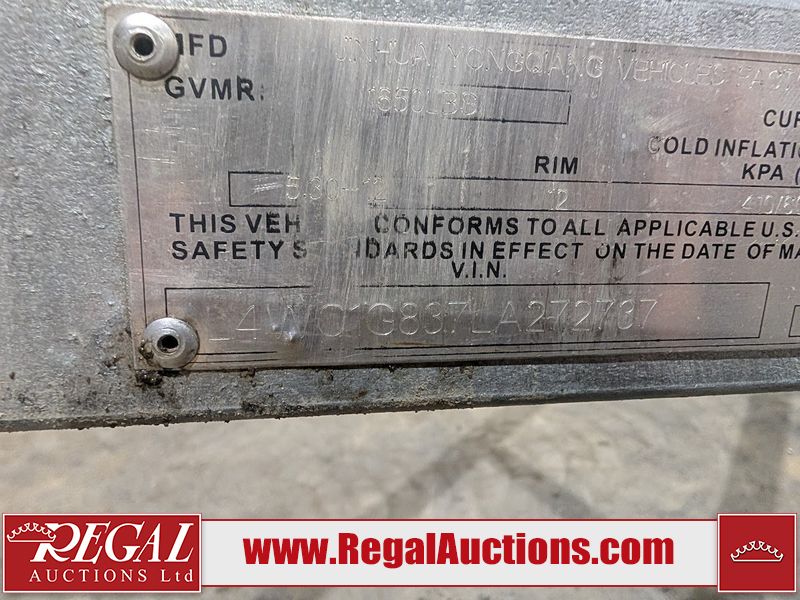 This unit is a 2020 Jinhua Yongqiang 5' x 8' Utility Trailer. GVWR: 1650 lbs, Curb Weight: 400lbs Tire Size: 5.30-12 One fender is bent and one reflector is cracked, as shown in photos.