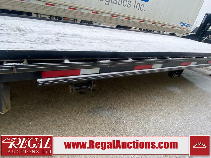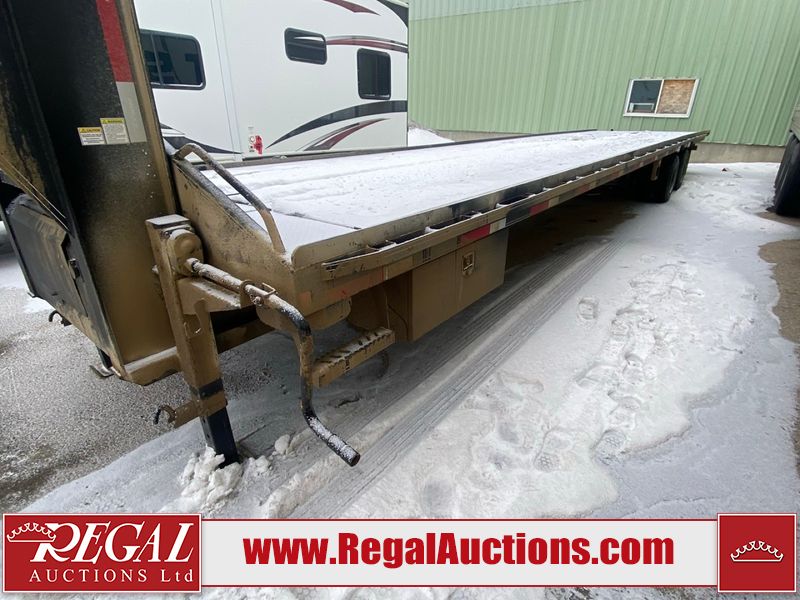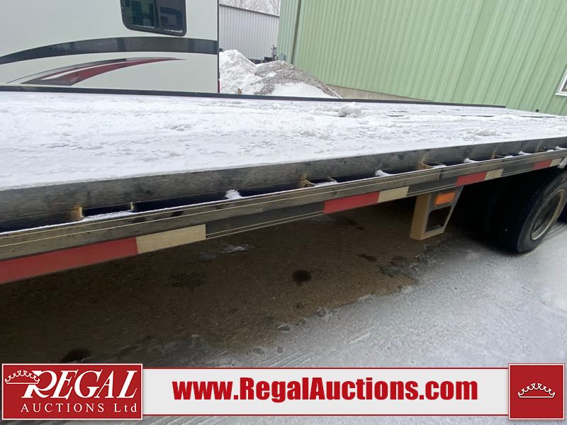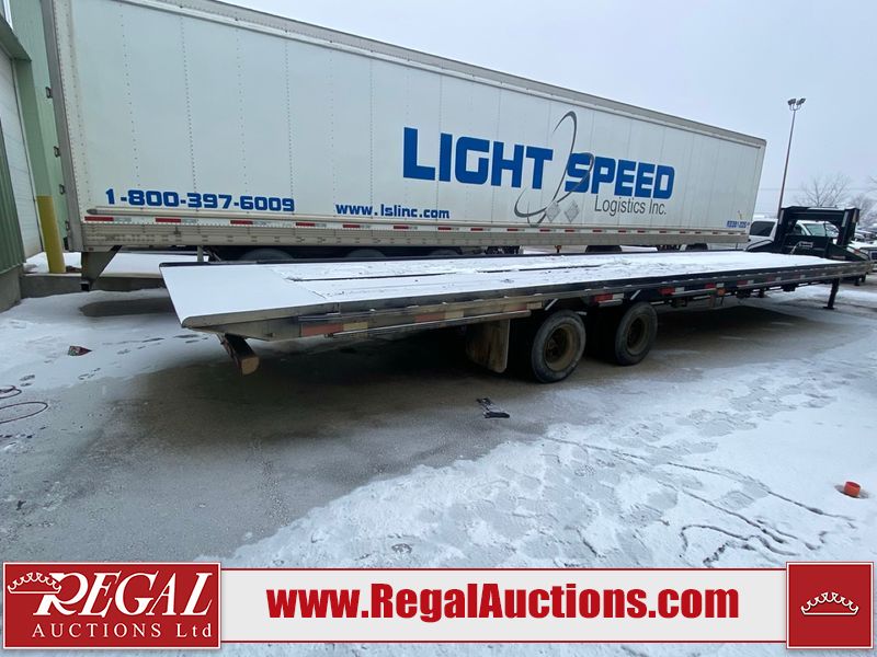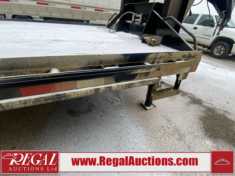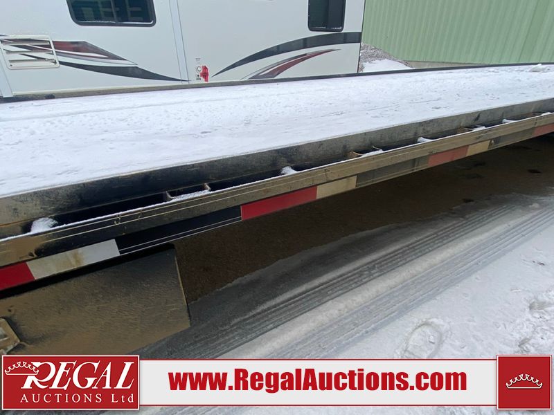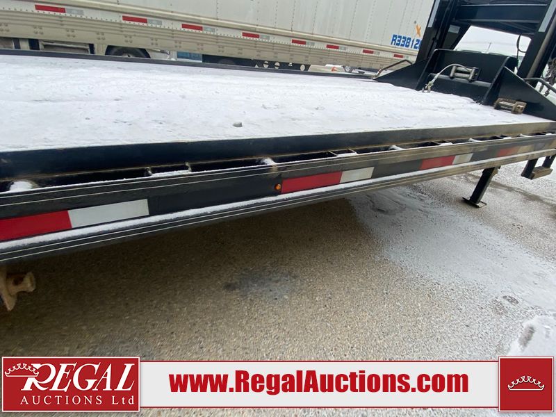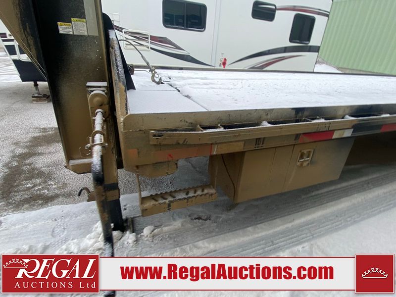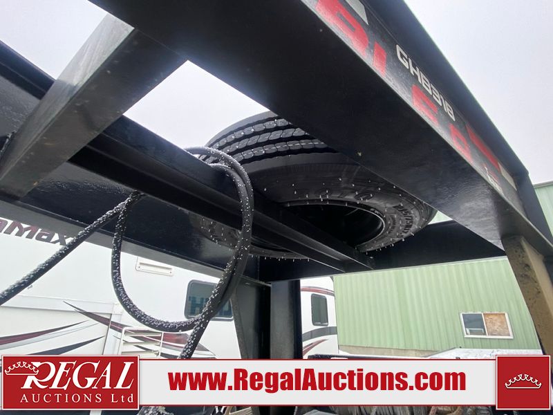 This unit is a 2025 40 foot Double A GHB318 model tilt deck goose neck trailer. It’s GVWR is 30,000 pounds. The deck is made of wood. This unit is covered in dust. Dirt, not all damages can be determined. Some of the frame has chips and peeling paint. This unit gets power with external power applied, the battery is weak. This unit’s hydraulics are operational but are leaking. The tires are mounted to alloy rims and appeared to be in good enough condition for use. This unit is equipped with a winch, and a torque tube system tilt deck.