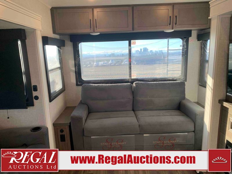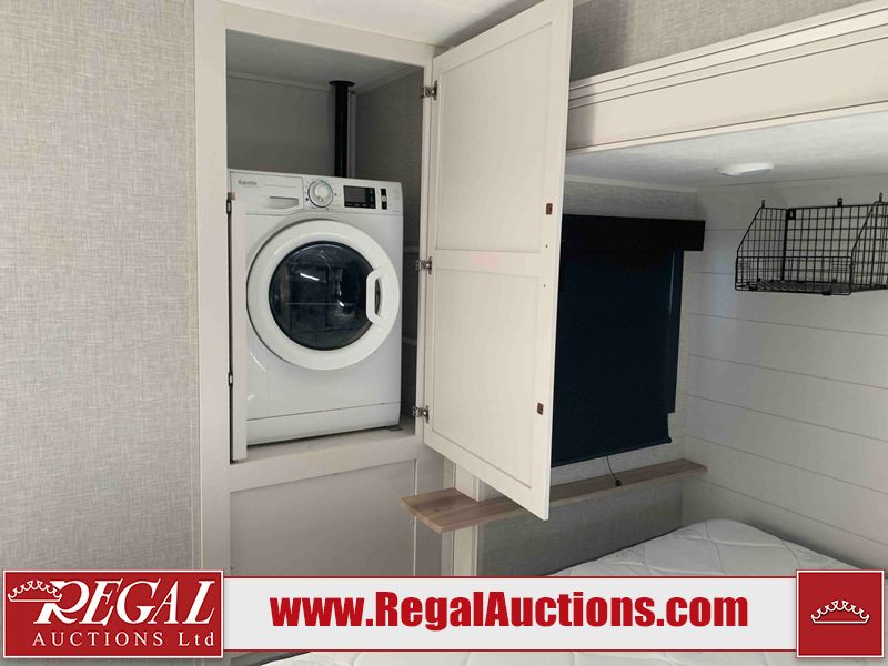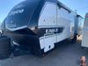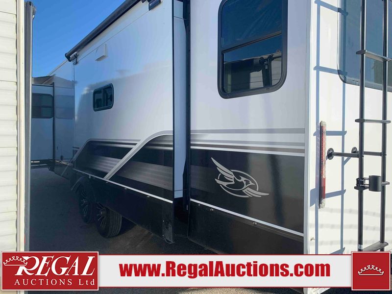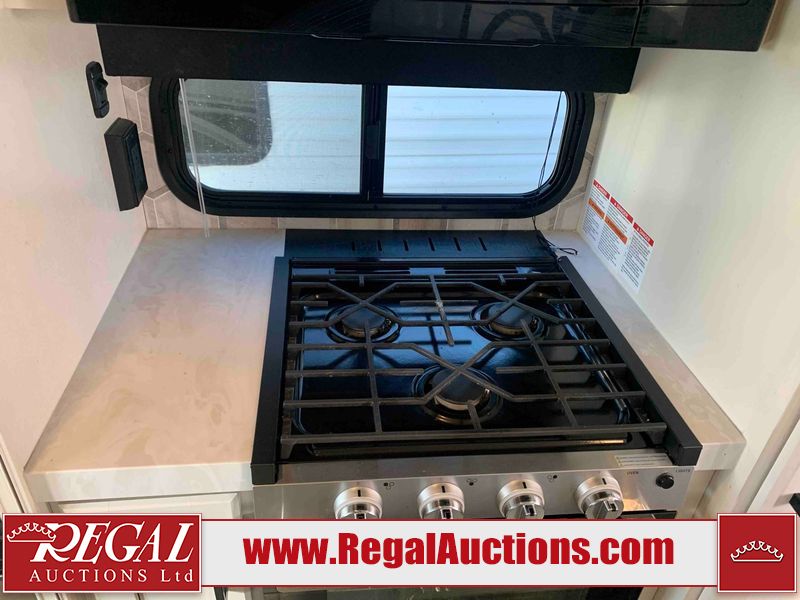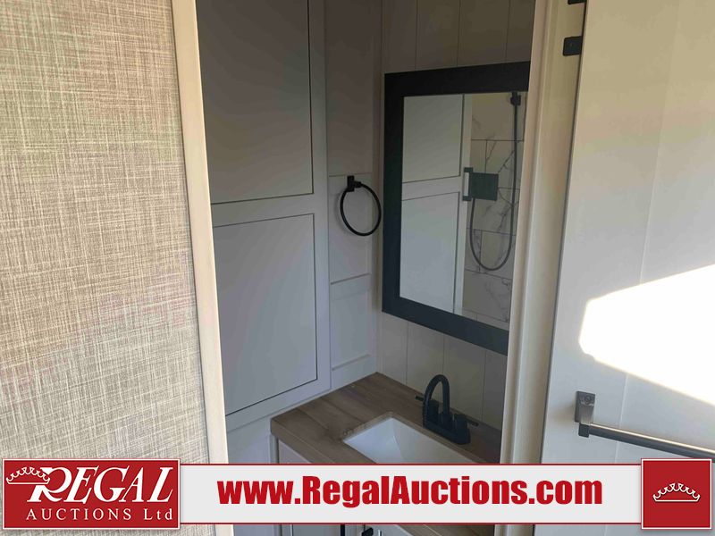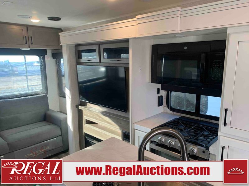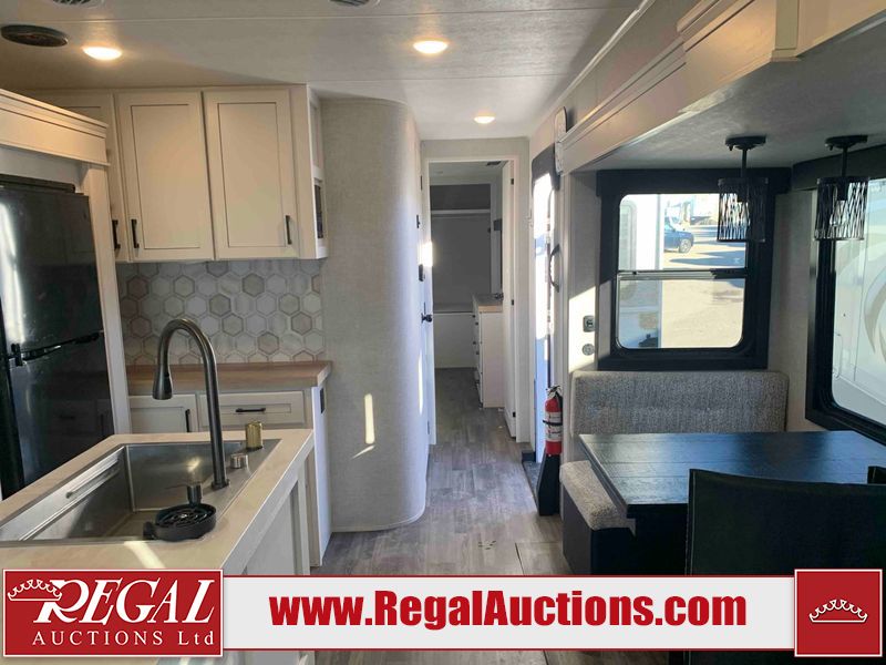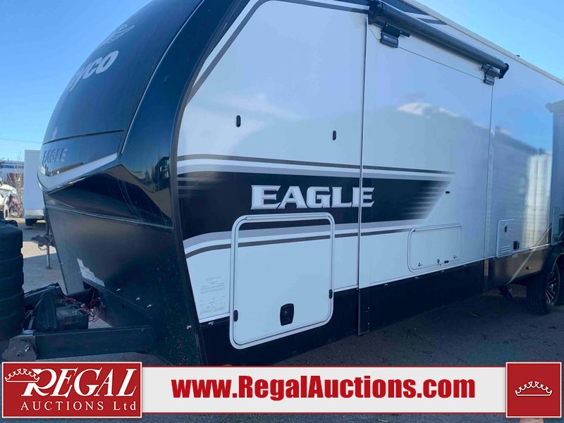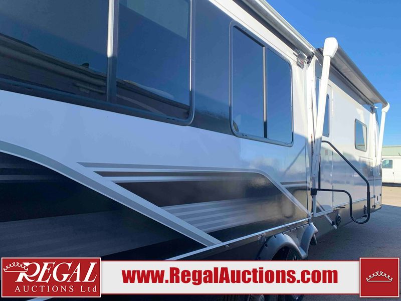 This RV is a 2025 Jayco Eagle HT 294 CKBS model tandem axle bumper pull trailer. It has a single door entry, roof air, and a single slide out accommodating the living room/kitchen area. The interior is dirty. The wood paneling has minor scuffs and scratches. The living area cushions are stained. The exterior walls are made out of hard wall fiberglass. All walls are showing minor chips, scratches and scuffs. This unit gets power with external power applied. The battery is dead. The kitchenette slide out does not fully extend. This unit is equipped with two propane tanks and two batteries. All tires are mounted on alloy rims, the tires have plenty of thread remaining. The layout of this unit consist of a master bedroom, bathroom with a washing machine at the front, and a kitchen/dining area at the center and a living room at the rear. This unit is equipped with a three burner stove top, oven, microwave, stereo system, and a television.