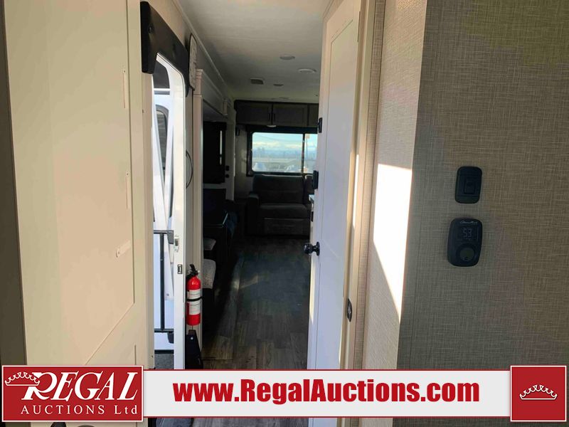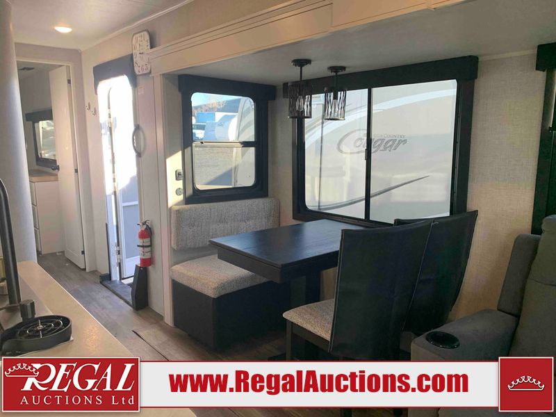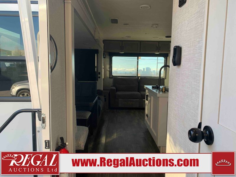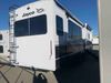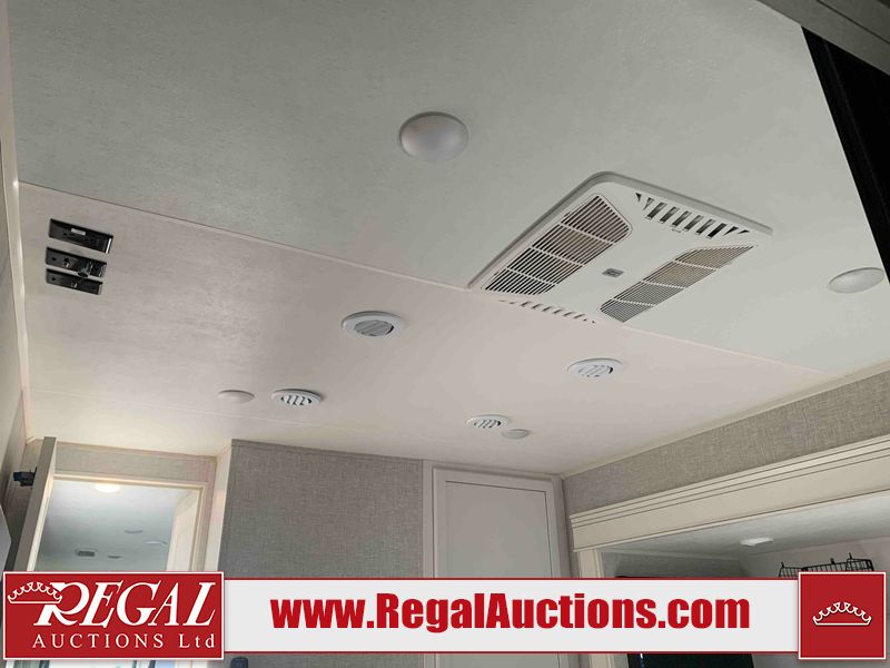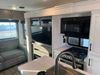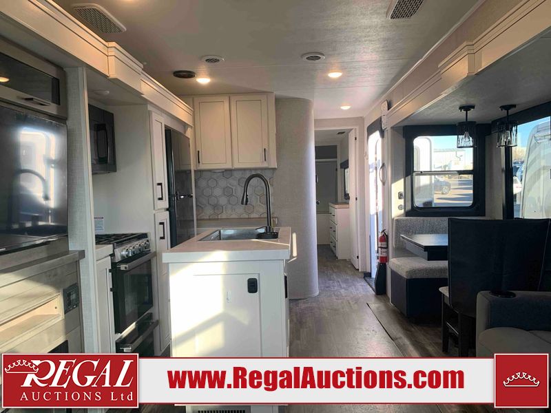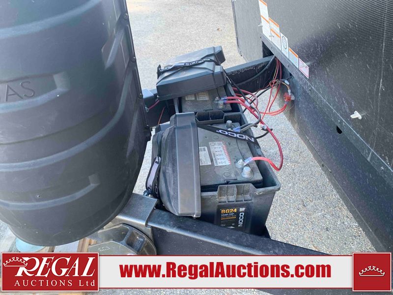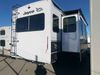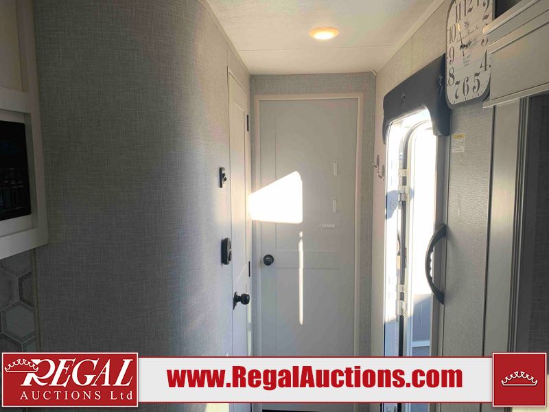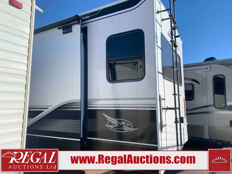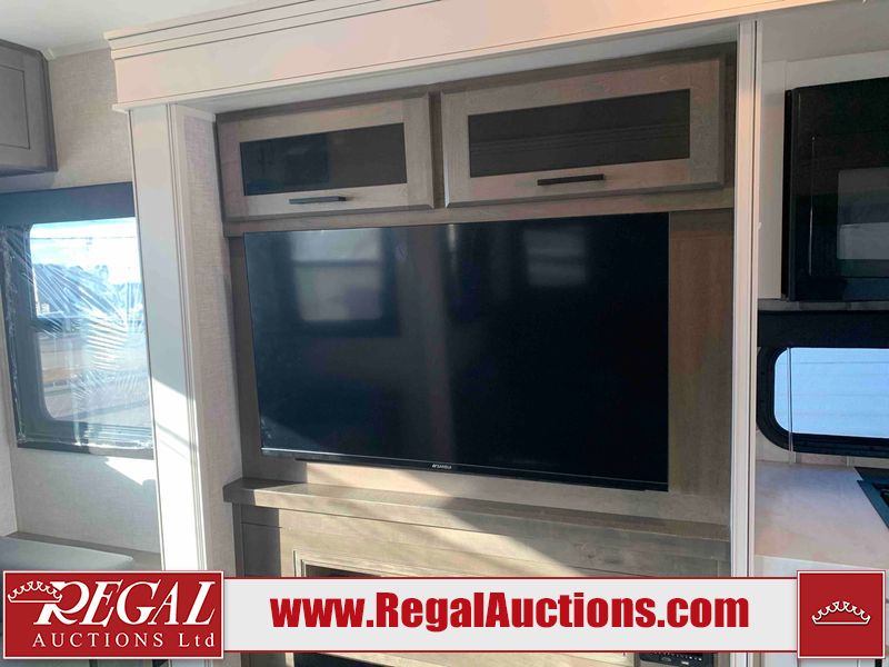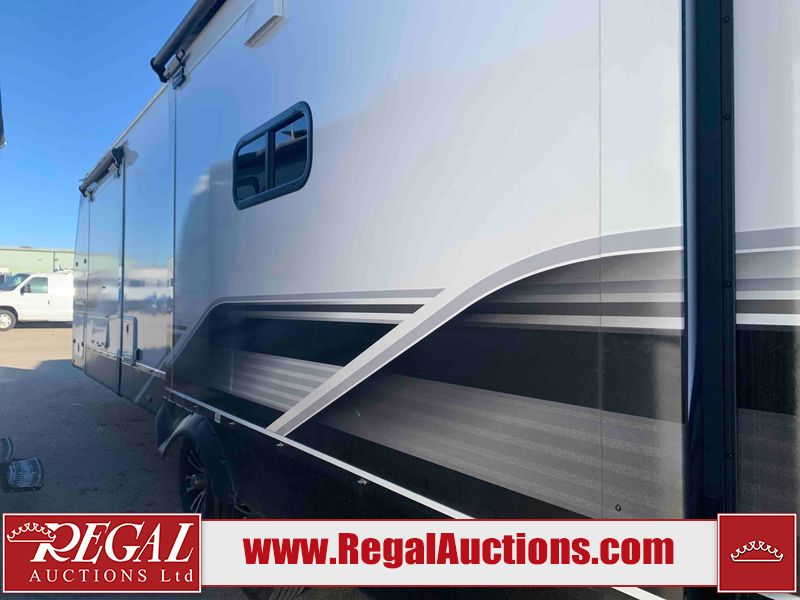 This RV is a 2025 Jayco Eagle HT 294 CKBS model tandem axle bumper pull trailer. It has a single door entry, roof air, and a single slide out accommodating the living room/kitchen area. The interior is dirty. The wood paneling has minor scuffs and scratches. The living area cushions are stained. The exterior walls are made out of hard wall fiberglass. All walls are showing minor chips, scratches and scuffs. This unit gets power with external power applied. The battery is dead. The kitchenette slide out does not fully extend. This unit is equipped with two propane tanks and two batteries. All tires are mounted on alloy rims, the tires have plenty of thread remaining. The layout of this unit consist of a master bedroom, bathroom with a washing machine at the front, and a kitchen/dining area at the center and a living room at the rear. This unit is equipped with a three burner stove top, oven, microwave, stereo system, and a television.