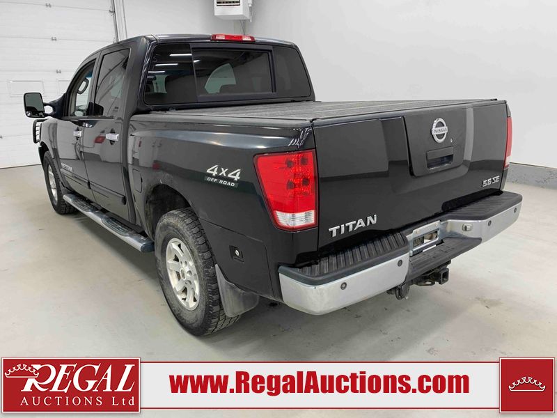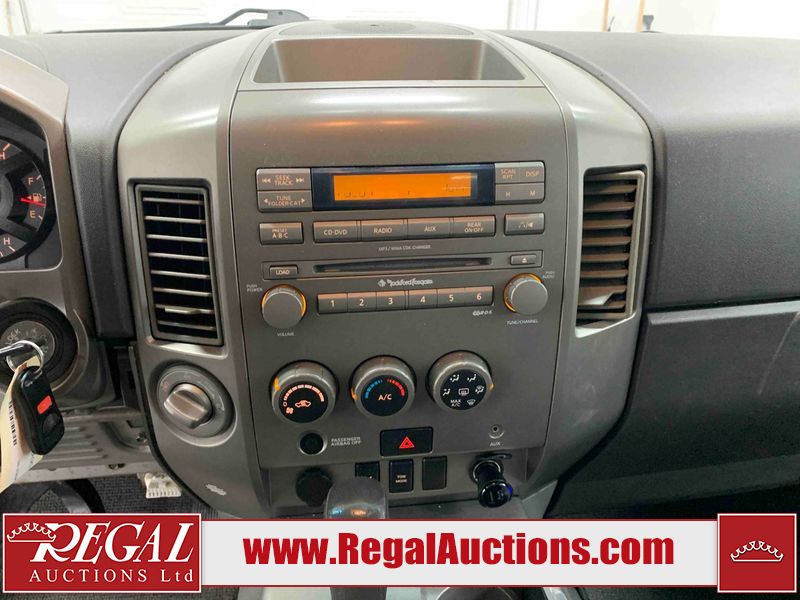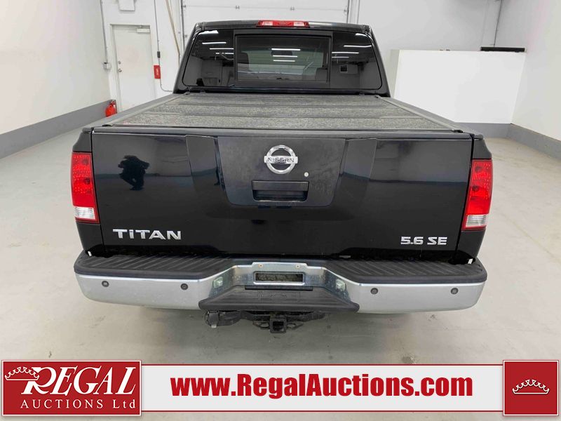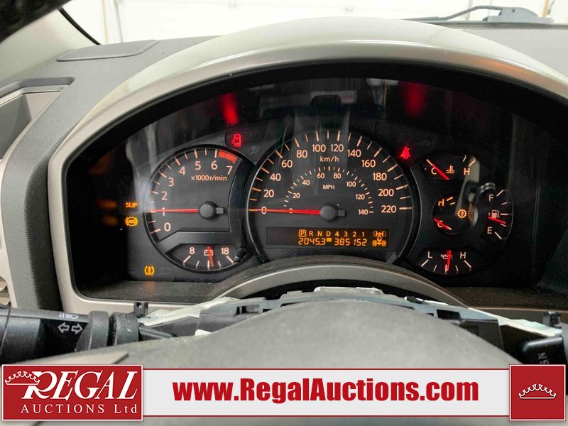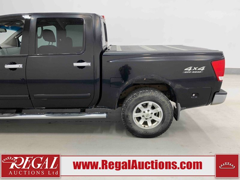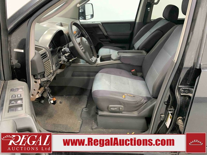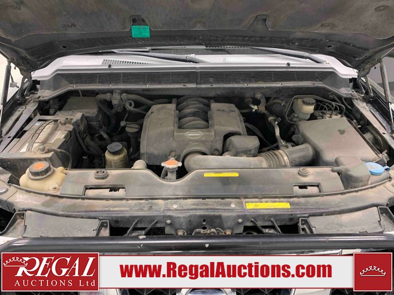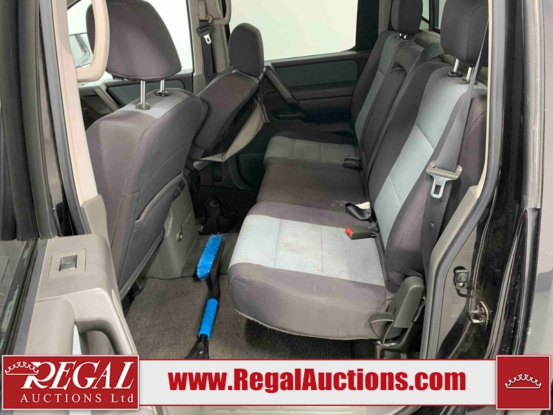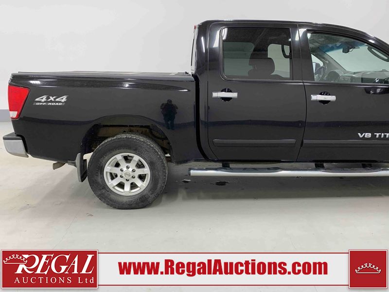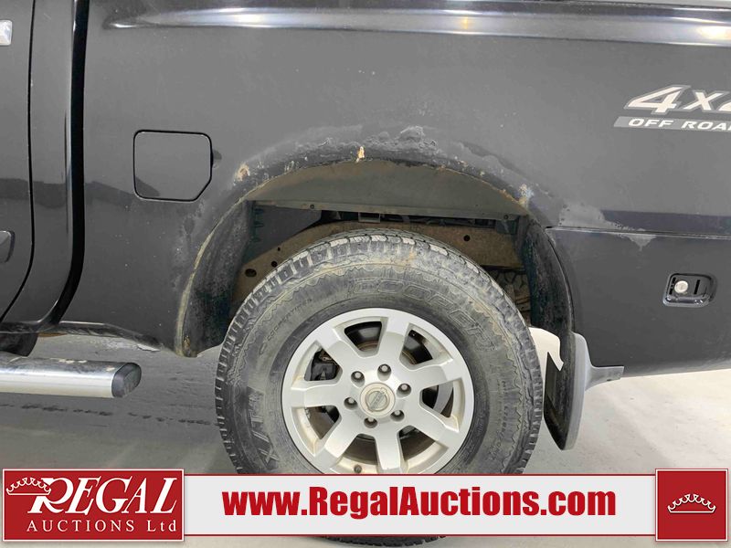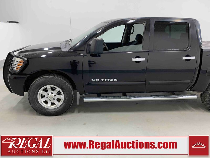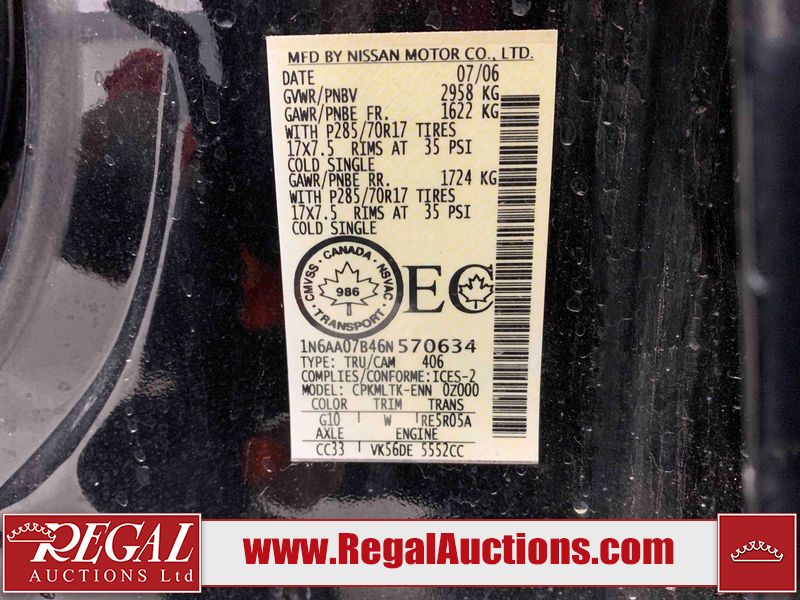 This 2006 NISSAN TITAN SE CREW CAB is powered by a 5.6L V8 gasoline engine and an automatic transmission. It is equipped with four-wheel drive. The truck has seats for 5 people. The truck has high mileage for its age. The vehicle has high-value options including power seats. The ABS light is on. The body looks to be in rough condition overall. There is very bad dent damage on the front bumper. There is severe rust on the left rear fender. There is some dent damage on the hood. There is a fair amount of rust on the hood. There is conspicuous paint fade on the roof. There are chips on the front bumper, grille, left front door, left rear door, right rear fender, right rear door, and right front door. There is paint overspray on the hood. There is rust on the roof and right rear fender. There are scratches on the left front door, left rear fender, tail gate, and right rear fender. There is paint fade on the left rear door and left rear fender. There is minor dent damage on the right rear door. There are very minor chips in a few areas around the body. There are very minor scratches in many areas around the body. There is very minor dent damage on the left front door. The interior looks to be in good condition overall. The driver's seat is torn. The passenger seat is stained. The windshield looks to be in good condition. All of the tires have lots of tread remaining. This truck is being sold by an automotive broker. Regal Auctions Ltd. makes no guarantee or warranty, either express or implied, with respect to the data provided in this report. The information has been provided from the consignor and from sources generally believed to be reliable, however the accuracy of this information cannot be guaranteed by Regal Auctions.