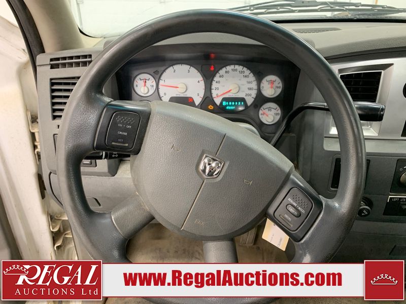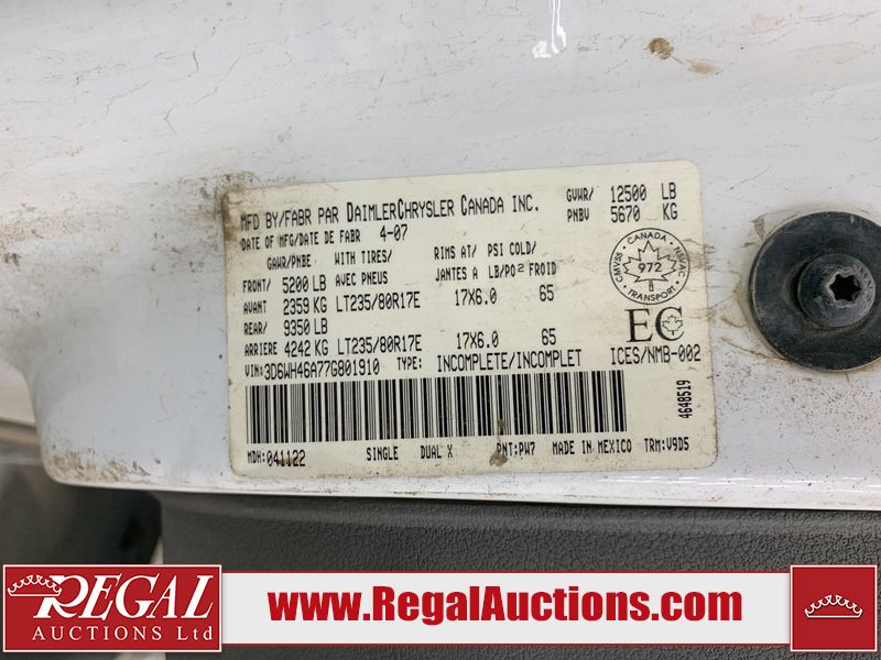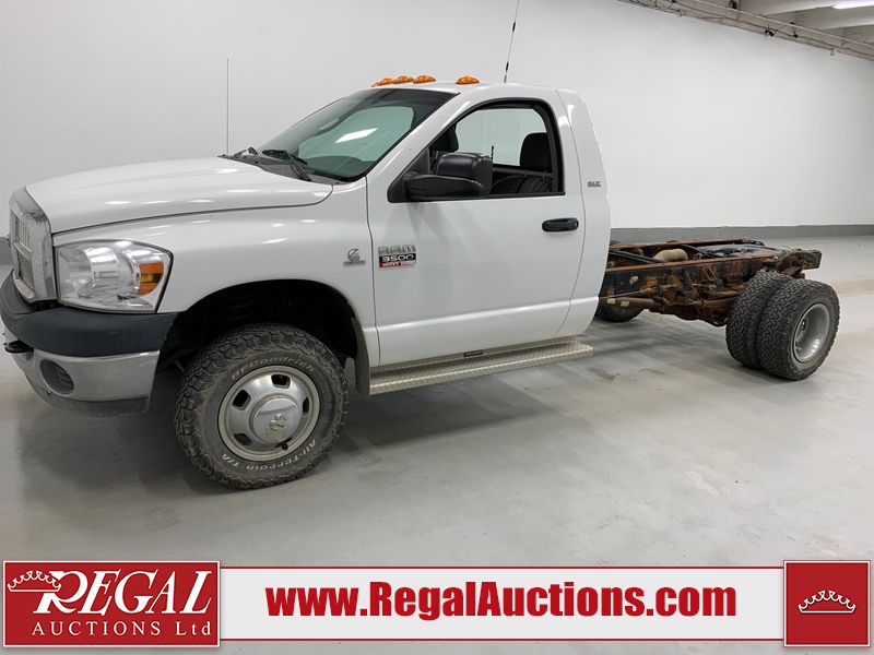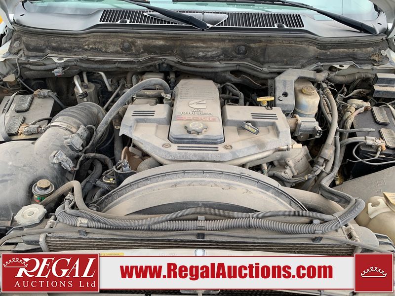 This 2007 DODGE RAM 3500 REGULAR CAB 4WD is powered by a 6.7L 6-cylinder diesel engine and an automatic transmission. It is equipped with four-wheel drive. The truck has seats for 3 people. The truck has high mileage for its age. The Battery and Check Engine lights are on. The vehicle has some mechanical problems. The engine is making abnormal noise. (See Footnote 1) The body looks to be in rough condition overall. The rear bumper and pickup bed are missing. There is pronounced chrome peeling on the grille. There is slight rust on the front bumper, roof, left front fender, left front door, right front door, and right front fender. There is hail on the hood and roof. The right front fender has been repainted poorly. There are very minor scratches in many areas around the body. There is very minor dent damage in some areas around the body. There are very minor chips in many areas around the body. The tail lights are missing. The interior looks to be in good condition overall. The windshield is cracked. All of the tires have lots of tread remaining. The right front tire is damaged. This truck is being sold by an automotive broker. The vehicle will be sold with the following declarations: Hail Damage (See Footnote 2) and Mechanical Problems (See Footnote 1). Footnotes: 1) We've identified some mechanical problems with the vehicle. However, the vehicle has not undergone a mechanical inspection and our findings are not to be considered a complete evaluation of the vehicle's mechanical condition. Review our Buyer Protection Policy to see how Regal Auctions protects you from undisclosed mechanical problems. 2) This vehicle shows signs of damage from a hail storm. Hail damage is not always clearly visible in photographs. Regal Auctions Ltd. makes no guarantee or warranty, either express or implied, with respect to the data provided in this report. The information has been provided from the consignor and from sources generally believed to be reliable, however the accuracy of this information cannot be guaranteed by Regal Auctions.