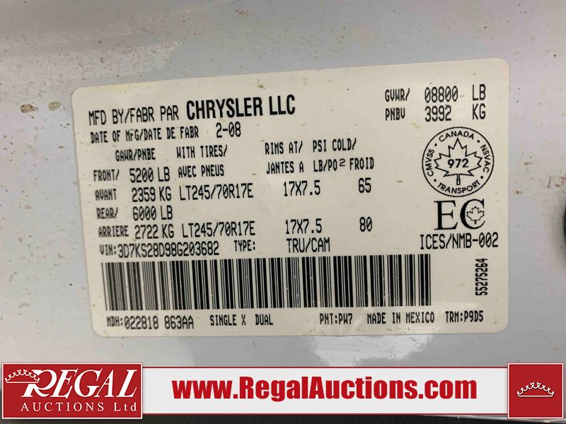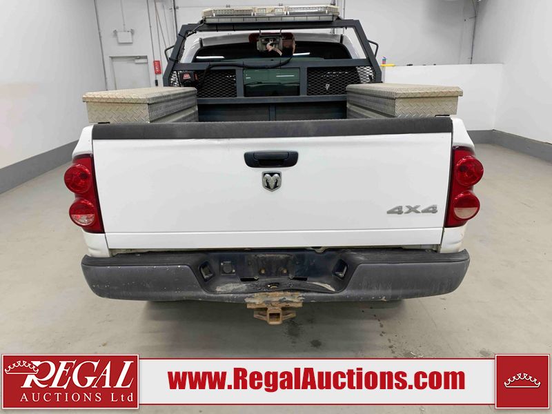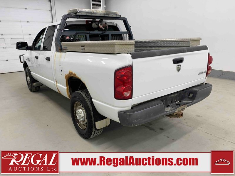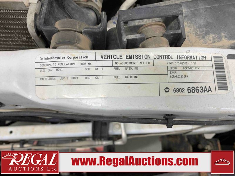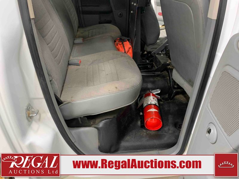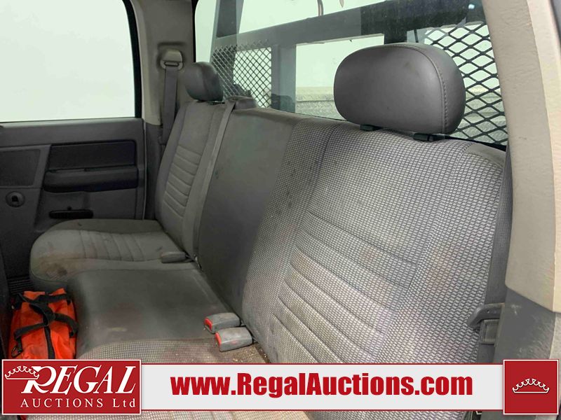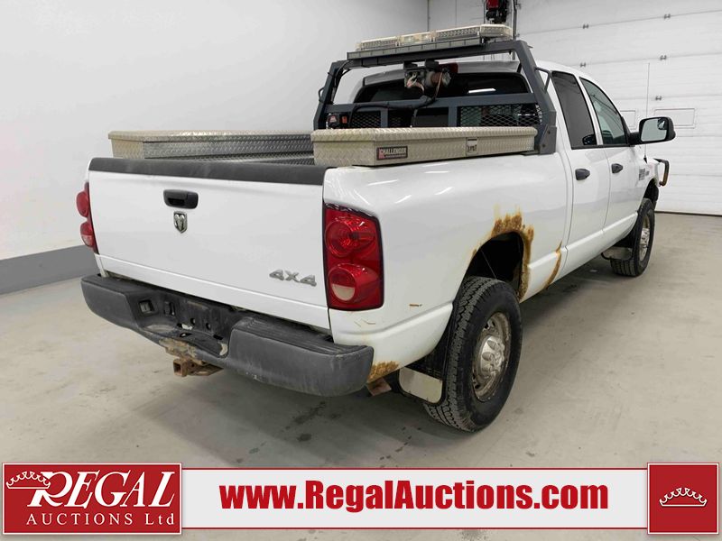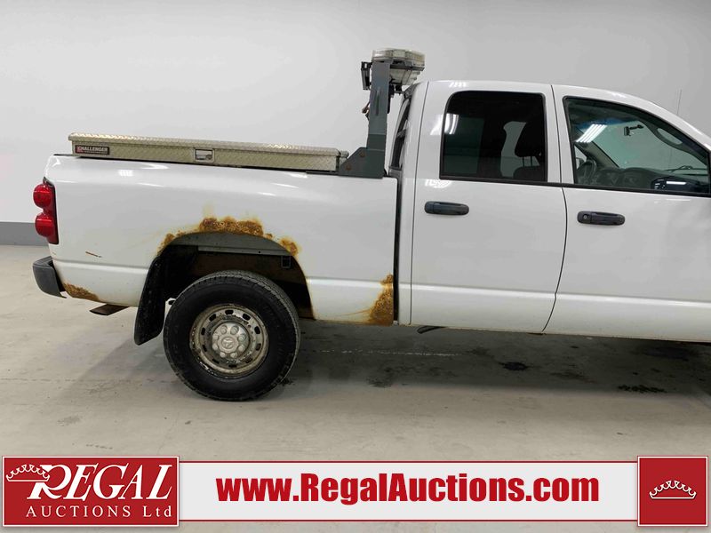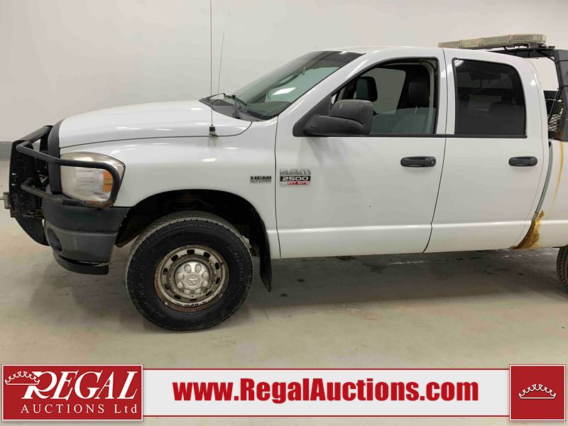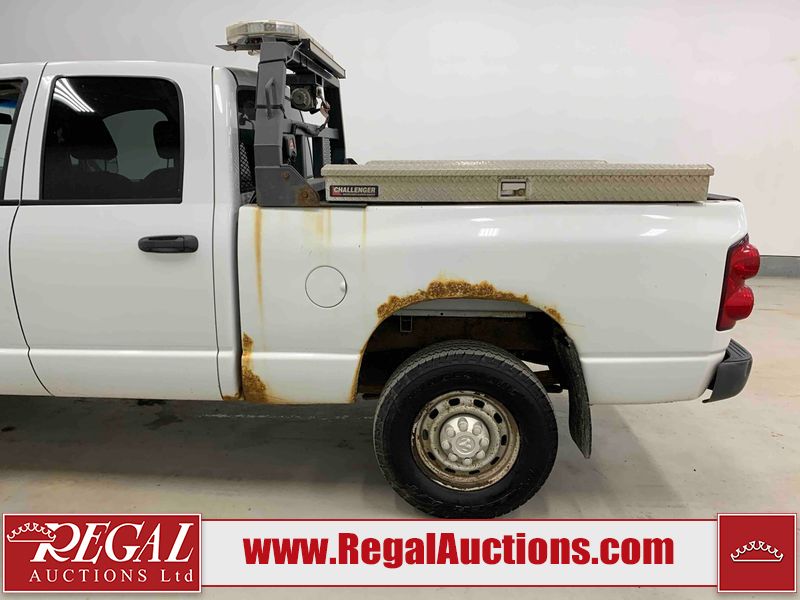This 2008 DODGE RAM 2500 CREW CAB 4WD 5.7L is powered by an 8 cylinder gasoline engine and an automatic transmission. It is equipped with four wheel drive. The truck has seats for 5 people. The truck has low mileage for its age. The body looks to be in rough condition overall. There is substantial rust on the left rear fender and right rear fender. There is extensive dent damage on the rear bumper. There is moderate dent damage on the front bumper. The fascia is broken on the front bumper. There is slight rust on the front bumper, roof, left rear door, and right front fender. There are chips on the hood, left front door, left rear door, right rear door, and right front door. There is incidental dent damage on the left front door. There are scratches on the left rear fender, rear bumper, right rear fender, and right front fender. There are chips on the left front fender. There are scratches in a few areas around the body. The interior looks to be in good condition overall. The driver's seat is worn. The windshield is cracked. The passenger side mirror is broken. All of the tires have lots of tread remaining. This truck is being sold by the fleet department of a company or government body. The vehicle will be sold with the following declarations: Alberta Government Fleet (See Footnote 1). Footnotes: 1) This vehicle is owned by the Government of Alberta. Regal Auctions Ltd. makes no guarantee or warranty, either express or implied, with respect to the data provided in this report. The information has been provided from the consignor and from sources generally believed to be reliable, however the accuracy of this information cannot be guaranteed by Regal Auctions.