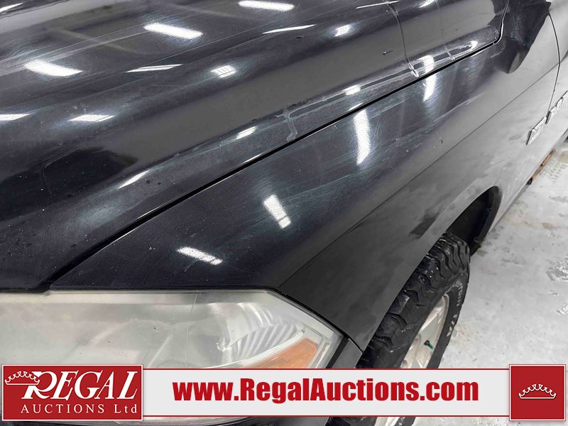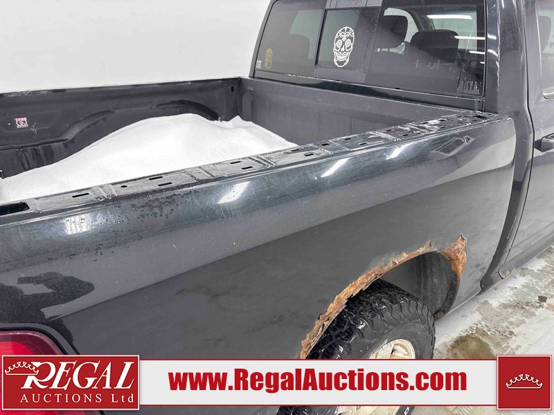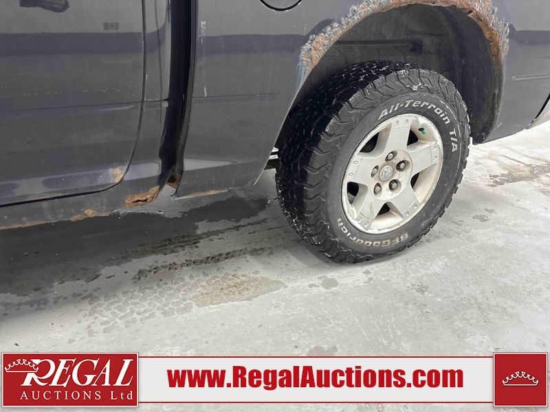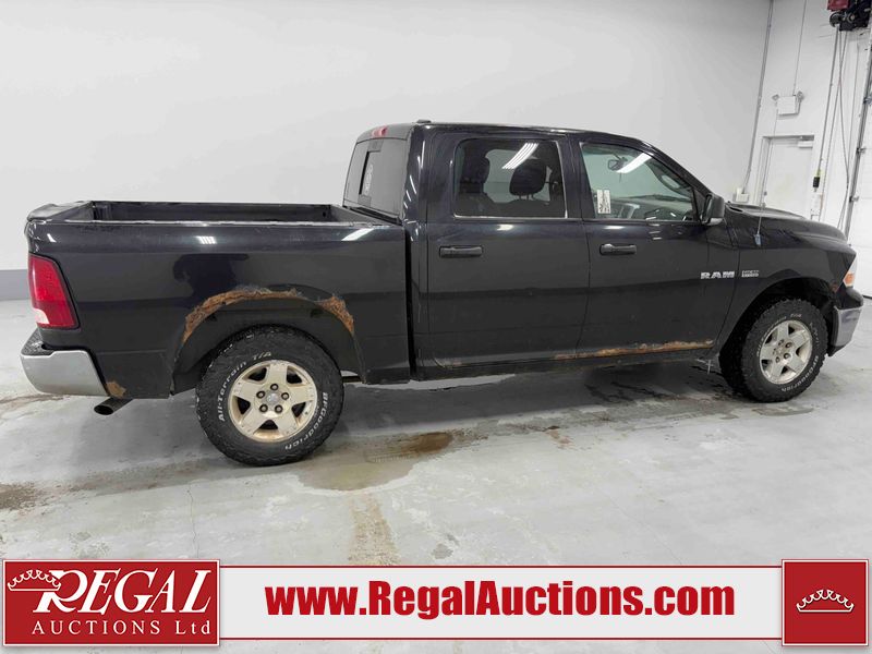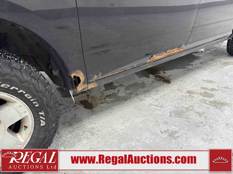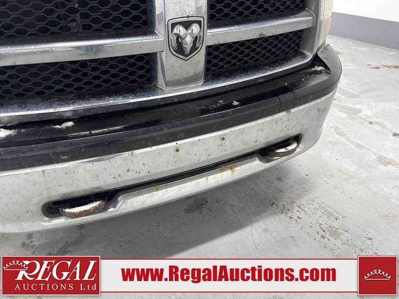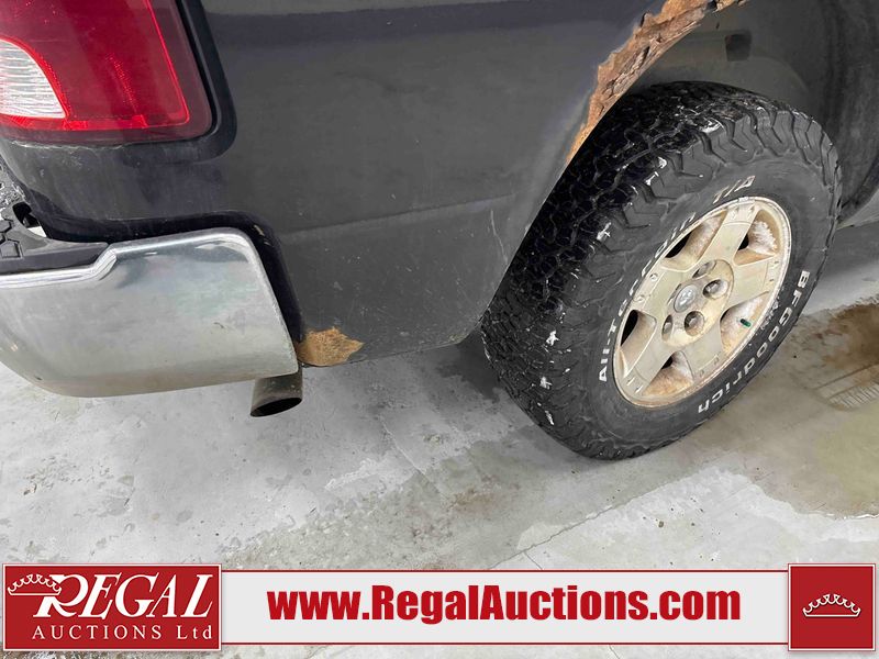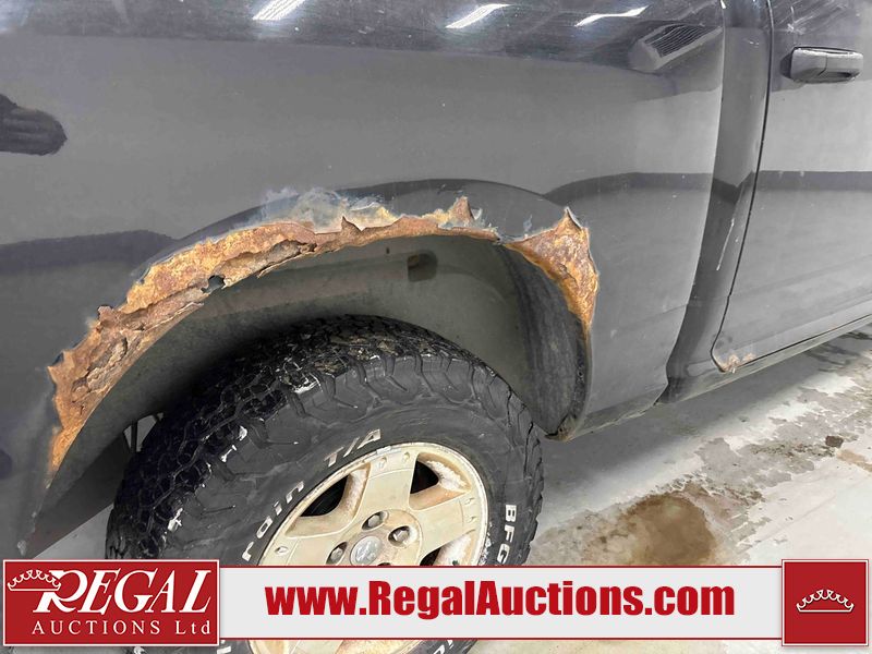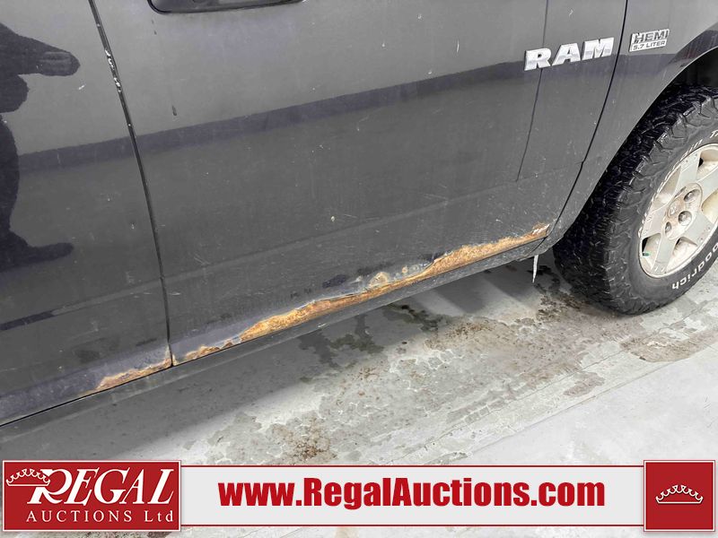 This 2009 DODGE RAM 1500 CREW CAB 4WD is powered by a 5.7L V8 gasoline engine and an automatic transmission. It is equipped with four-wheel drive. The truck has seats for 6 people. The mileage is average considering the truck's age. The body looks to be in rough condition overall. There is severe rust on the left front fender, left rear door, left rear fender, right rear fender, and right rear door. The tail gate is broken. There is a fair amount of hail on the hood and roof. The hood and left front fender have been repainted poorly. There is a fair amount of rust on the roof, left front door, tail gate, right front door, and right front fender. There is rust on the front bumper. There is minimal dent damage on the front bumper. There is hail on the left front fender. The left rear fender and right rear fender have parts missing. There are very minor chips in many areas around the body. There are very minor scratches in many areas around the body. There is very minor dent damage on the rear bumper. The interior looks to be in good condition overall. The driver seat is torn. The windshield looks to be in good condition. All of the tires have lots of tread remaining. This truck is being sold by an automotive broker. The vehicle will be sold with the following declarations: Hail Damage (See Footnote 1). Footnotes: 1) This vehicle shows signs of damage from a hail storm. Hail damage is not always clearly visible in photographs. Regal Auctions Ltd. makes no guarantee or warranty, either express or implied, with respect to the data provided in this report. The information has been provided from the consignor and from sources generally believed to be reliable, however the accuracy of this information cannot be guaranteed by Regal Auctions.