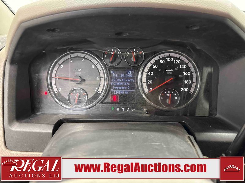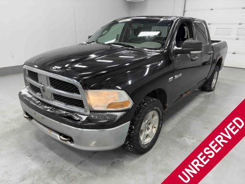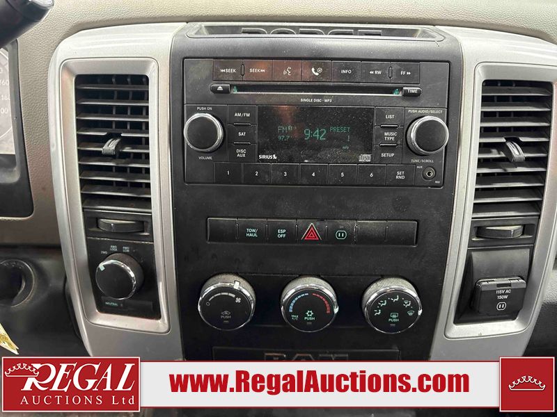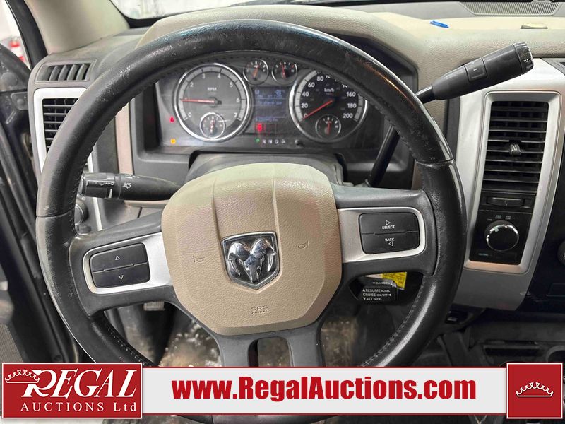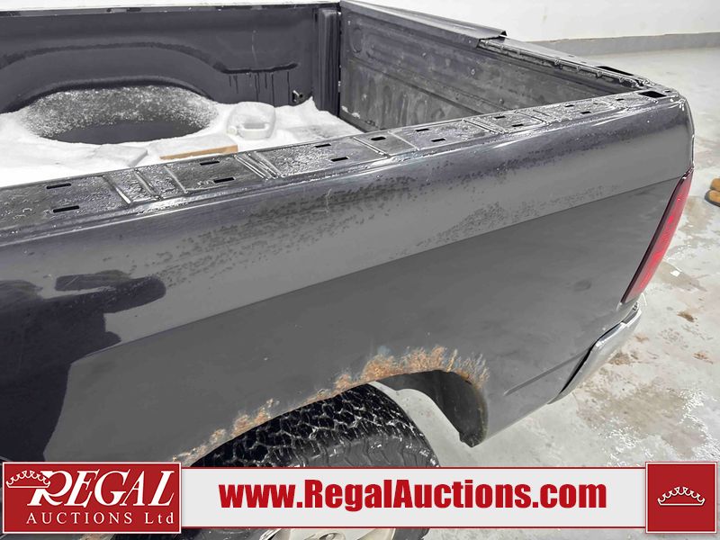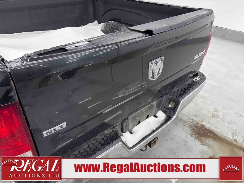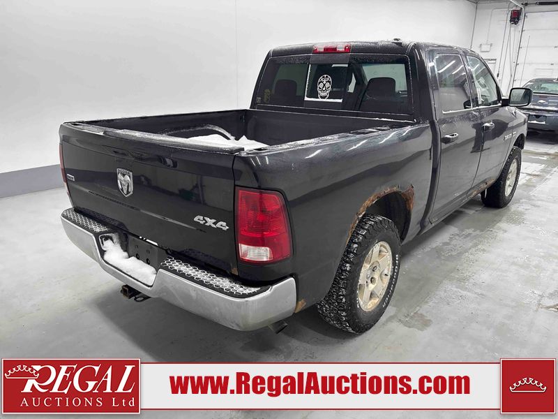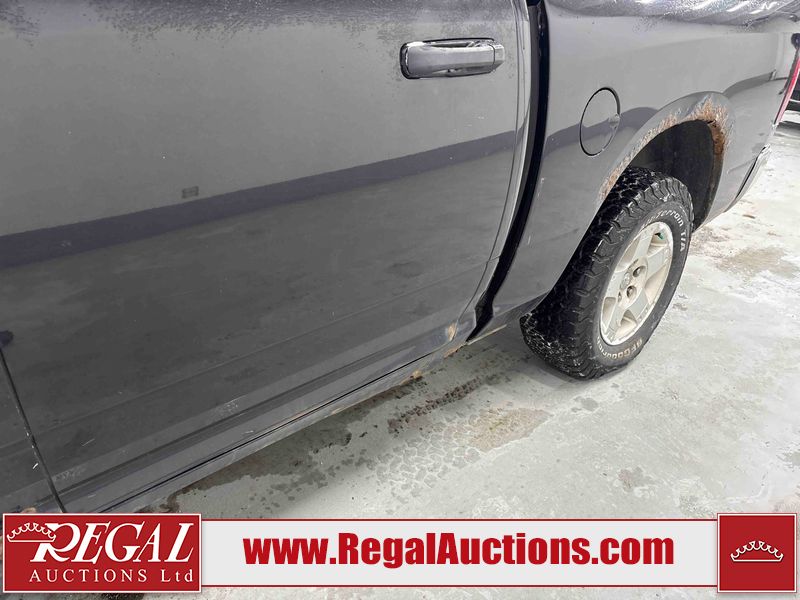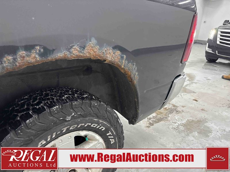This 2009 DODGE RAM 1500 CREW CAB 4WD is powered by a 5.7L V8 gasoline engine and an automatic transmission. It is equipped with four-wheel drive. The truck has seats for 6 people. The mileage is average considering the truck's age. The body looks to be in rough condition overall. There is severe rust on the left front fender, left rear door, left rear fender, right rear fender, and right rear door. The tail gate is broken. There is a fair amount of hail on the hood and roof. The hood and left front fender have been repainted poorly. There is a fair amount of rust on the roof, left front door, tail gate, right front door, and right front fender. There is rust on the front bumper. There is minimal dent damage on the front bumper. There is hail on the left front fender. The left rear fender and right rear fender have parts missing. There are very minor chips in many areas around the body. There are very minor scratches in many areas around the body. There is very minor dent damage on the rear bumper. The interior looks to be in good condition overall. The driver seat is torn. The windshield looks to be in good condition. All of the tires have lots of tread remaining. This truck is being sold by an automotive broker. The vehicle will be sold with the following declarations: Hail Damage (See Footnote 1). Footnotes: 1) This vehicle shows signs of damage from a hail storm. Hail damage is not always clearly visible in photographs. Regal Auctions Ltd. makes no guarantee or warranty, either express or implied, with respect to the data provided in this report. The information has been provided from the consignor and from sources generally believed to be reliable, however the accuracy of this information cannot be guaranteed by Regal Auctions.