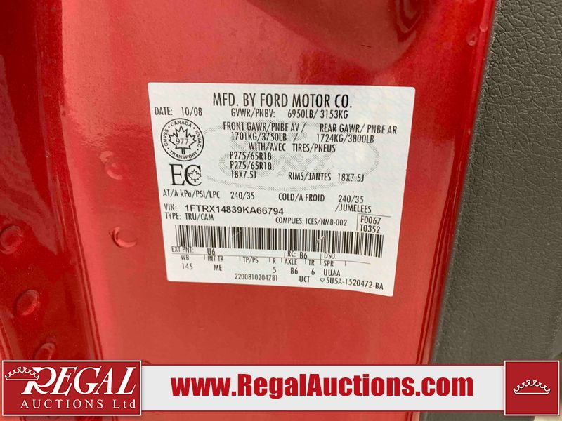 This 2009 FORD F-150 SUPERCAB is powered by a 292HP 4.6L 8 cylinder gasoline engine and an automatic transmission. It is equipped with four wheel drive. The truck has seats for 6 people. The truck has high mileage for its age. The vehicle has high value options including power seats. The body looks to be in rough condition overall. There is extensive rust on the left rear fender and right rear fender. There are minimal chips on the grille. There are scratches on the hood, left rear fender, tail gate, and right rear fender. There is incidental paint peeling on the hood, left front fender, left front door, left rear fender, right rear fender, right rear door, and right front door. There is minor dent damage on the left rear fender, tail gate, right front door, and right front fender. There is minimal rust on the right rear door. There are very minor chips in many areas around the body. There are very minor scratches in many areas around the body. There is very minor dent damage on the hood. The interior looks to be in fair condition overall. There is pronounced stained on the driver's seat and passenger seat. The windshield is damaged. The passenger side mirror housing is broken. All of the tires have lots of tread remaining. This truck is being sold by a franchise dealership. The vehicle will be sold with the following declarations: Dealership Trade-In (See Footnote 1). Footnotes: 1) This vehicle is being sold on behalf of a franchise dealership. Franchise Dealerships are automotive sales companies who are directly connected to an automotive manufacturer like Ford, Tesla, Honda, BMW, or similar. Regal Auctions Ltd. makes no guarantee or warranty, either express or implied, with respect to the data provided in this report. The information has been provided from the consignor and from sources generally believed to be reliable, however the accuracy of this information cannot be guaranteed by Regal Auctions.