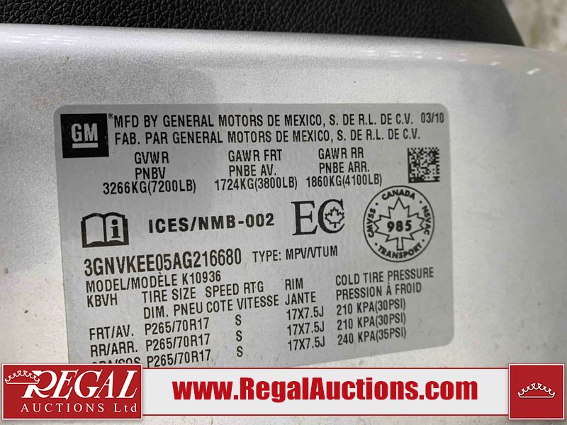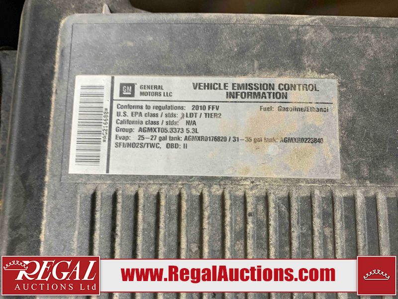 This 2010 CHEVROLET AVALANCHE 4D UTILITY 4WD is powered by a 5.3L V8 gasoline engine and an automatic transmission. It is equipped with four-wheel drive. The truck has seats for 5 people. The truck has high mileage for its age. The vehicle has high-value options including power seats. The body looks to be in fair condition overall. There is a fair amount of rust on the left rear fender. There is a fair amount of paint peeling on the left rear fender. There are chips on the front bumper, hood, roof, left front fender, left front door, left rear door, left rear fender, rear bumper, tailgate, right rear fender, right rear door, and right front door. There is minor rust on the left front fender, rear bumper, tailgate, and right rear fender. There are scratches on the left rear fender and rear bumper. There are very minor scratches in many areas around the body. There are very minor chips in a few areas around the body. There is very minor dent damage on the left rear fender. The headlight lenses are hazy. The interior looks to be in fair condition overall. The driver's seat is torn. The dashboard, passenger seat, rear seats, and doors are dirty. The carpet is dirty. The windshield is cracked. All of the tires have lots of tread remaining. This truck is being sold by an automotive broker. Regal Auctions Ltd. makes no guarantee or warranty, either express or implied, with respect to the data provided in this report. The information has been provided from the consignor and from sources generally believed to be reliable, however the accuracy of this information cannot be guaranteed by Regal Auctions.