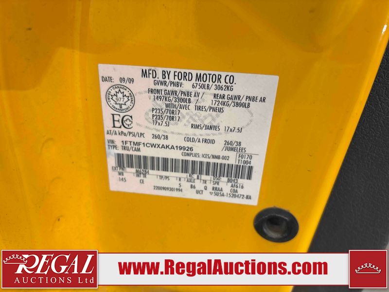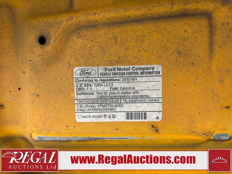This 2010 FORD F-150 XL is powered by a 4.6L 8C 8 cylinder gasoline engine and an automatic transmission. It is a two wheel drive model. The truck has seats for 3 people. The truck has high mileage for its age. The vehicle has transmission problems. The Tire Pressure light is on. The body looks to be in rough condition overall. The left rear fender and right rear fender have been repainted poorly. The tail gate is a different color from the rest of the vehicle. There is considerable rust on the right rear fender. There is conspicuous rust on the front bumper, roof, and left rear fender. The grille is cracked. The left front fender, left front door, rear bumper, tail gate, and right front fender have been repainted poorly. The front bumper is broken. There is rust on the left front fender, left front door, tail gate, right front door, and right front fender. The left rear fender is a different color from the rest of the vehicle. There are very minor chips in many areas around the body. There are very minor scratches in many areas around the body. There is very minor dent damage in a few areas around the body. The interior looks to be in good condition overall. The driver's seat is torn. The windshield is cracked. The passenger side mirror is broken. All of the tires have lots of tread remaining. This truck is being sold by a private individual. The vehicle will be sold with the following declarations: Claims Total $5000 - $9999 (See Footnote 1). Footnotes: 1) The vehicle's total recorded insurance claims history is between $5,000 - $9,999. This is the amount of money that was paid out by an insurance company for repairs to cover claims against the vehicle's insurance policy. This information is provided by CarFax. Regal Auctions Ltd. makes no guarantee or warranty, either express or implied, with respect to the data provided in this report. The information has been provided from the consignor and from sources generally believed to be reliable, however the accuracy of this information cannot be guaranteed by Regal Auctions.