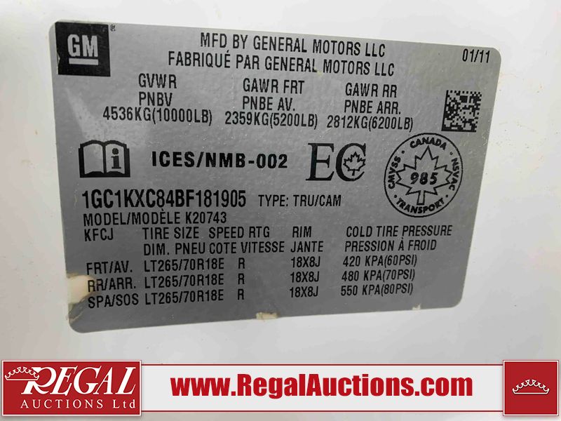 This 2011 CHEVROLET SILVERADO 2500 LT CREW CAB 4WD SERVICE BOX is powered by a turbocharged 6.6L V8 DIESEL 8 cylinder diesel engine and an automatic transmission. It is equipped with four wheel drive. The truck has seats for 6 people. The truck has high mileage for its age. The vehicle has high value options including power seats. The vehicle has some mechanical problems. The battery is dead. The vehicle requires a boost to start and may require a booster pack in order to stay running. (See Footnote 1) The body looks to be in fair condition overall. The fascia is broken on the front bumper. There are scratches on the front bumper, hood, left front door, left rear door, right rear door, and right front door. There are minimal chips on the hood, left front fender, and right front fender. There is rust on the roof, left front fender, and right front fender. There are very minor chips in some areas around the body. The interior looks to be in fair condition overall. The driver's seat is worn. The passenger seat and rear seats are stained. The driver's seat is stained. The windshield is chipped. All of the tires have lots of tread remaining. This truck is being sold by the fleet department of a corporation or government body. The vehicle will be sold with the following declarations: Claims Total $10,000 - $14,999 (See Footnote 2), Fleet Vehicle (See Footnote 3), and Out of Province - SK (See Footnote 4). Footnotes: 1) We've identified some mechanical problems with the vehicle. However, the vehicle has not undergone a mechanical inspection and our findings are not to be considered a complete evaluation of the vehicle's mechanical condition. Review our Buyer Protection Policy to see how Regal Auctions protects you from undisclosed mechanical problems. 2) The vehicle's total recorded insurance claims history is between $10,000 - $14,999. This is the amount of money that was paid out by an insurance company for repairs to cover claims against the vehicle's insurance policy. This information is provided by CarFax. 3) This vehicle is a commercially owned work vehicle. 4) The vehicle's last registered jurisdiction is Saskatchewan. The purchaser must have the vehicle undergo and pass an Out of Province inspection before it can be registered in Alberta. Regal Auctions Ltd. makes no guarantee or warranty, either express or implied, with respect to the data provided in this report. The information has been provided from the consignor and from sources generally believed to be reliable, however the accuracy of this information cannot be guaranteed by Regal Auctions.