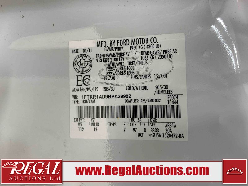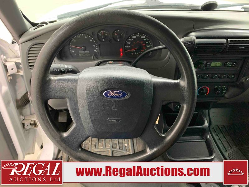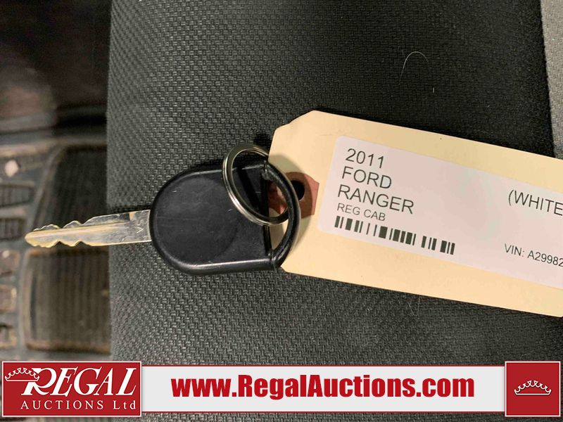 This 2011 FORD RANGER REG CAB is powered by a 2.3L 4-cylinder gasoline engine and an automatic transmission. It is a two-wheel drive model. The truck has seats for 2 people. The mileage is average considering the truck's age. The vehicle does not have power windows, power locks, or air conditioning. The body looks to be in fair condition overall. There is pronounced rust on the rear bumper. There are a fair amount of scratches on the pickup bed. There is noteworthy dent damage on the right rear fender. There are scratches on the front bumper, left front door, left rear fender, rear bumper, tailgate, and right rear fender. There are chips on the hood. There is rust on the hood. There is dent damage on the left front door. There are very minor scratches in a few areas around the body. There are very minor chips in a few areas around the body. The headlights are loose. The taillights are broken. The left headlight is loose. The interior looks to be in good condition overall. The driver's seat is torn. The windshield is chipped. All of the tires have lots of tread remaining. This truck is being sold by a private individual. The vehicle will be sold with the following declarations: Claims Total $5000 - $9999 (See Footnote 1). Footnotes: 1) The vehicle's total recorded insurance claims history is between $5,000 - $9,999. This is the amount of money that was paid out by an insurance company for repairs to cover claims against the vehicle's insurance policy. This information is provided by CarFax. Regal Auctions Ltd. makes no guarantee or warranty, either express or implied, with respect to the data provided in this report. The information has been provided from the consignor and from sources generally believed to be reliable, however the accuracy of this information cannot be guaranteed by Regal Auctions.
