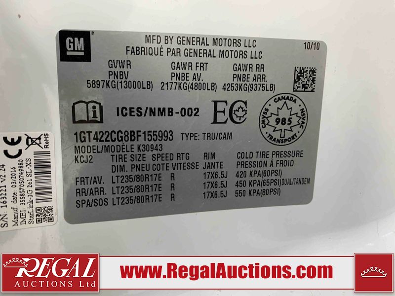 This 2011 GMC SIERRA 3500 HD CREW CAB DRW 4WD is powered by a 6.0L V8 gasoline engine and an automatic transmission. It is equipped with four-wheel drive. The truck has seats for 6 people. The truck has low mileage for its age. The vehicle has high-value options including leather upholstery. The vehicle does not have power windows. The vehicle has some mechanical problems. The battery is dead. The vehicle requires a boost to start and may require a booster pack in order to stay running. (See Footnote 1) The body looks to be in rough condition overall. There is very bad dent damage on the hood. There is a fair amount of dent damage on the left rear fender. There are minor chips on the front bumper, hood, left front fender, left rear fender, right rear fender, and right front fender. There is paint peeling on the front bumper. There is slight rust on the roof. There are minor scratches on the left front door, left rear door, left rear fender, tailgate, right rear fender, right front door, and right front fender. The left rear fender and right rear fender are a different color from the rest of the vehicle. There is dent damage on the rear bumper. There are very minor scratches in a few areas around the body. There is very minor dent damage in a few areas around the body. There are very minor chips in a few areas around the body. The hood is misaligned. Both right and left rear fenders are repainted and may vary in color. The interior looks to be in good condition overall. The driver's seat is torn. The windshield looks to be in good condition. All of the tires have lots of tread remaining. This truck is being sold by the fleet department of a corporation or government body. The vehicle will be sold with the following declarations: Fleet Vehicle (See Footnote 2). Footnotes: 1) We've identified some mechanical problems with the vehicle. However, the vehicle has not undergone a mechanical inspection and our findings are not to be considered a complete evaluation of the vehicle's mechanical condition. Review our Buyer Protection Policy to see how Regal Auctions protects you from undisclosed mechanical problems. 2) This vehicle is a commercially owned work vehicle. Regal Auctions Ltd. makes no guarantee or warranty, either express or implied, with respect to the data provided in this report. The information has been provided from the consignor and from sources generally believed to be reliable, however the accuracy of this information cannot be guaranteed by Regal Auctions.