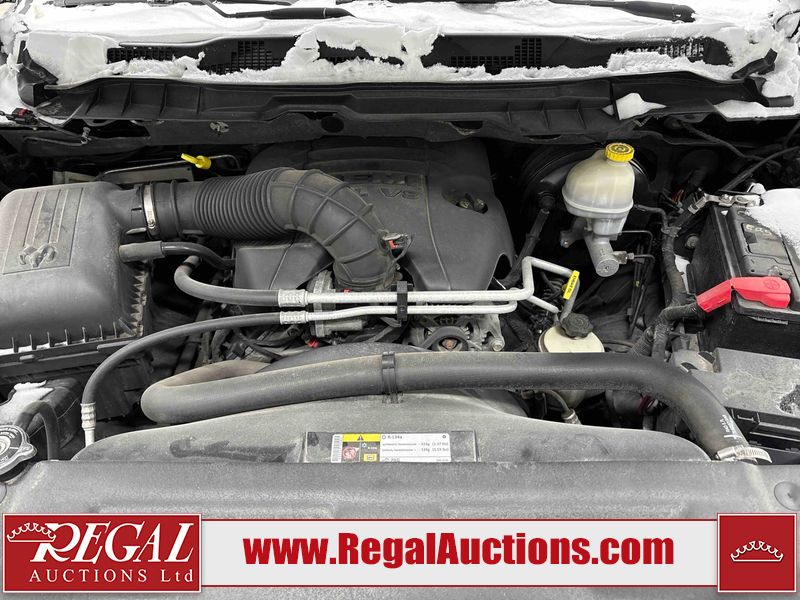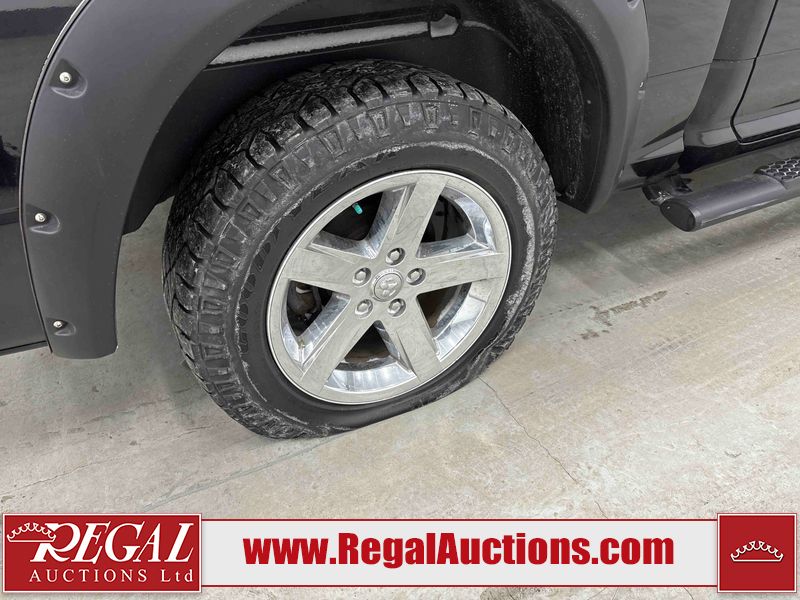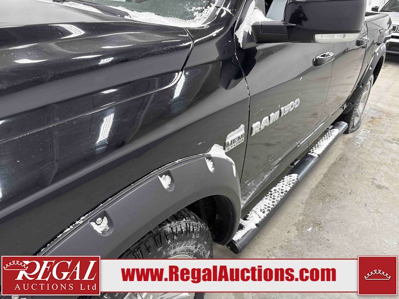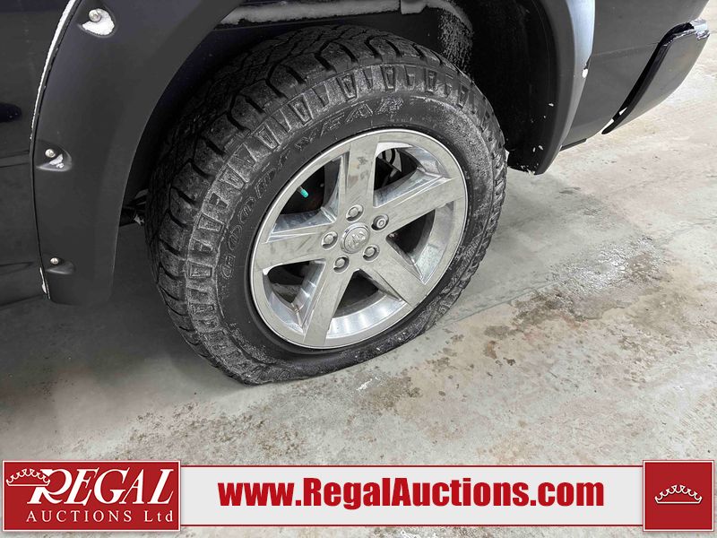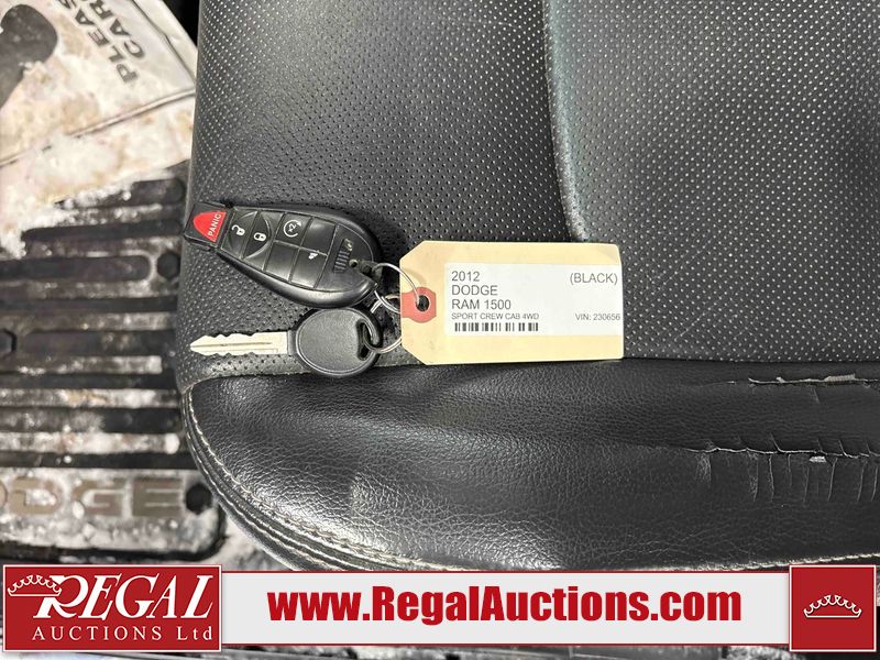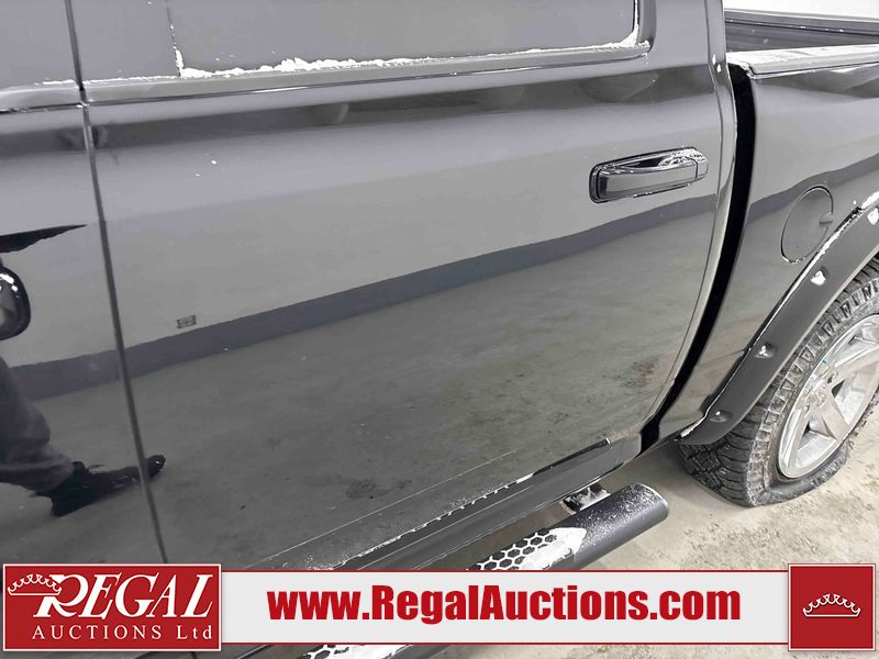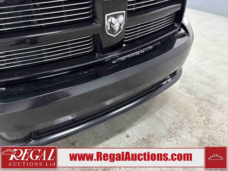 This 2012 DODGE RAM 1500 SPORT CREW CAB 4WD is powered by a 5.7 liter 8-cylinder gasoline engine and an automatic transmission. It is equipped with four-wheel drive. The truck has seats for 5 people. The truck has low mileage for its age. The vehicle has high-value options, including leather upholstery, power seats, and navigation. There is a noise in the motor. The Check Engine and Tire Pressure lights are on. The body looks to be in fair condition overall. There is noteworthy rust on the hood. The hood has been repainted poorly. There is some hail on the hood. There is rust on the roof. There is hail on the roof, left front fender, and right front door. There are chips in many areas around the body. There are scratches in many areas around the body. There is dent damage on the front bumper. The interior looks to be in good condition overall. The driver's seat is torn. The windshield is chipped. All of the tires have lots of tread remaining. The left rear tire is damaged. The right rear tire is damaged. This truck is being sold by an automotive broker. The vehicle will be sold with the following declarations: Hail Damage (See Footnote 1). Footnotes: 1) This vehicle shows signs of damage from a hail storm. Hail damage is not always clearly visible in photographs. Regal Auctions Ltd. makes no guarantee or warranty, either express or implied, with respect to the data provided in this report. The information has been provided from the consignor and from sources generally believed to be reliable, however the accuracy of this information cannot be guaranteed by Regal Auctions.