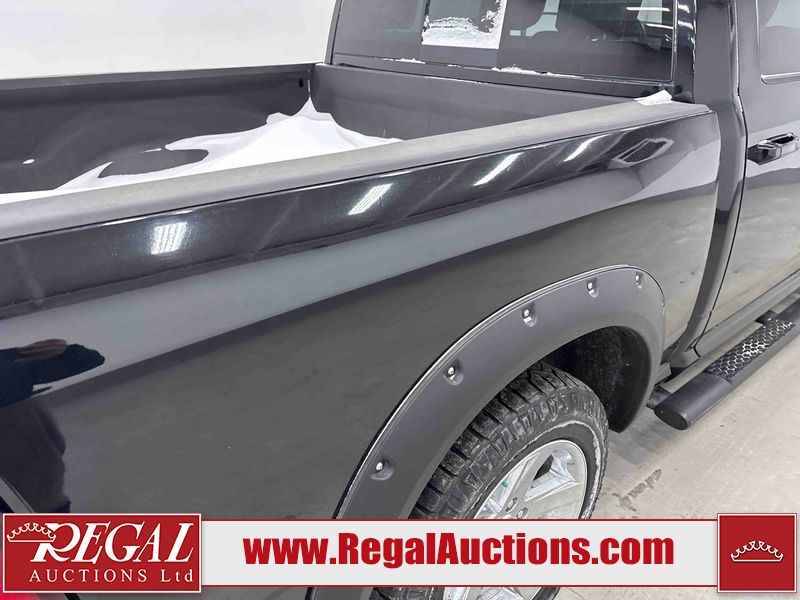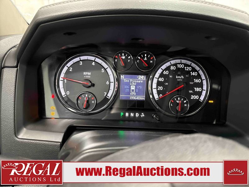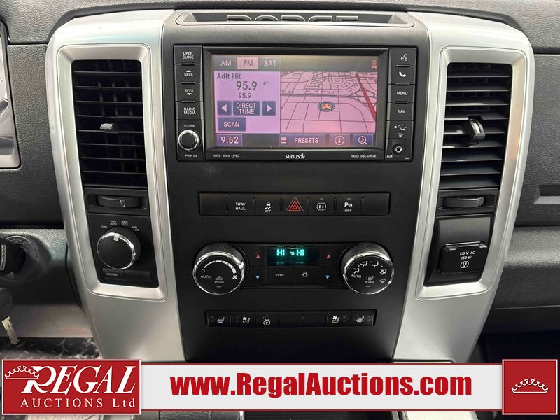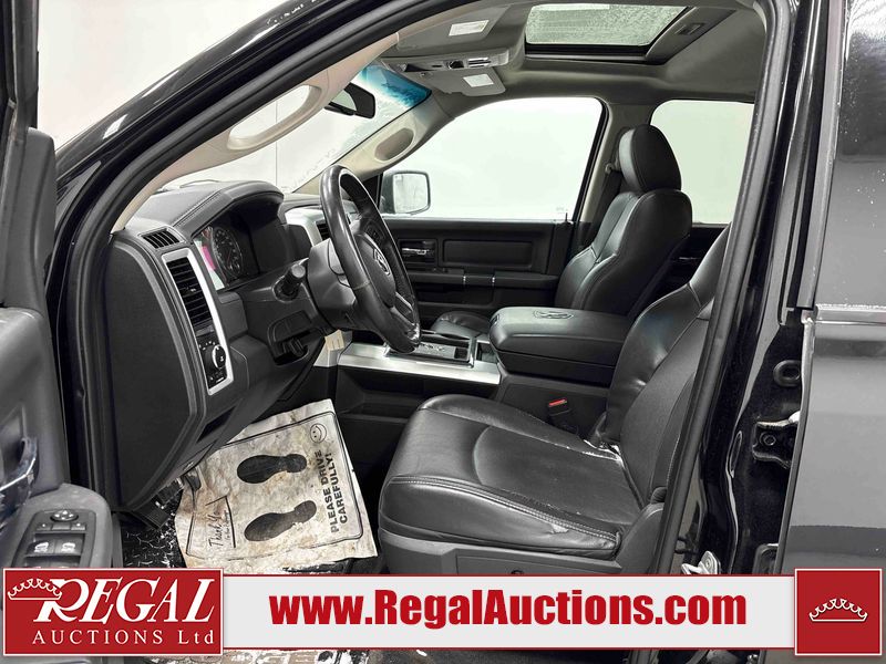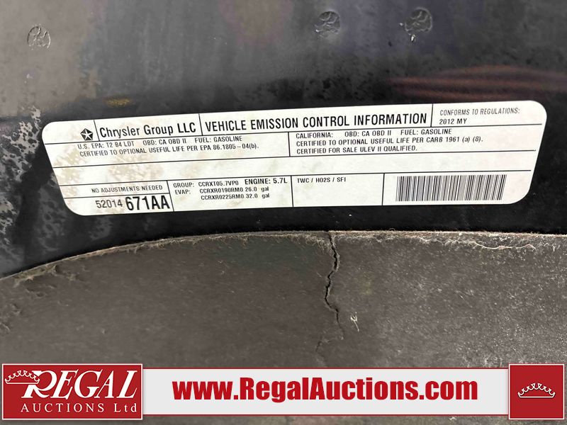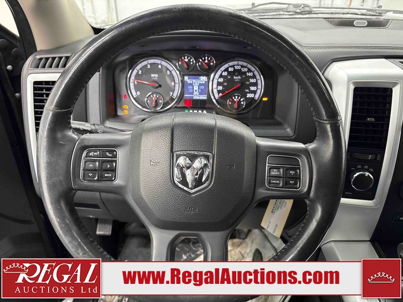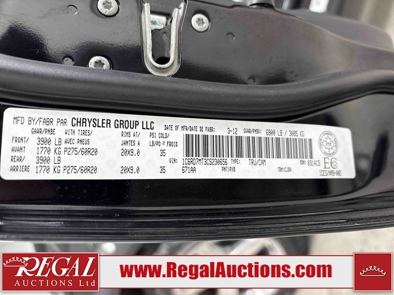 This 2012 DODGE RAM 1500 SPORT CREW CAB 4WD is powered by a 5.7 liter 8-cylinder gasoline engine and an automatic transmission. It is equipped with four-wheel drive. The truck has seats for 5 people. The truck has low mileage for its age. The vehicle has high-value options, including leather upholstery, power seats, and navigation. There is a noise in the motor. The Check Engine and Tire Pressure lights are on. The body looks to be in fair condition overall. There is noteworthy rust on the hood. The hood has been repainted poorly. There is some hail on the hood. There is rust on the roof. There is hail on the roof, left front fender, and right front door. There are chips in many areas around the body. There are scratches in many areas around the body. There is dent damage on the front bumper. The interior looks to be in good condition overall. The driver's seat is torn. The windshield is chipped. All of the tires have lots of tread remaining. The left rear tire is damaged. The right rear tire is damaged. This truck is being sold by an automotive broker. The vehicle will be sold with the following declarations: Hail Damage (See Footnote 1). Footnotes: 1) This vehicle shows signs of damage from a hail storm. Hail damage is not always clearly visible in photographs. Regal Auctions Ltd. makes no guarantee or warranty, either express or implied, with respect to the data provided in this report. The information has been provided from the consignor and from sources generally believed to be reliable, however the accuracy of this information cannot be guaranteed by Regal Auctions.