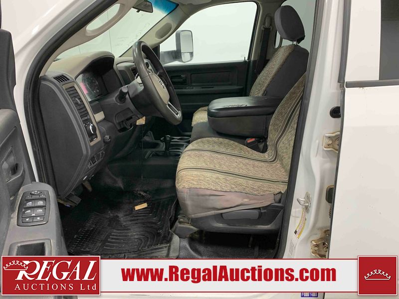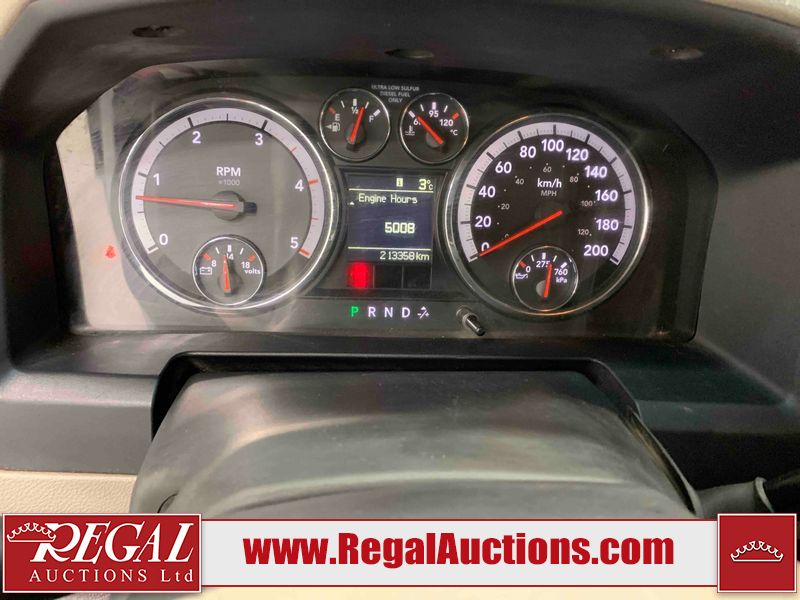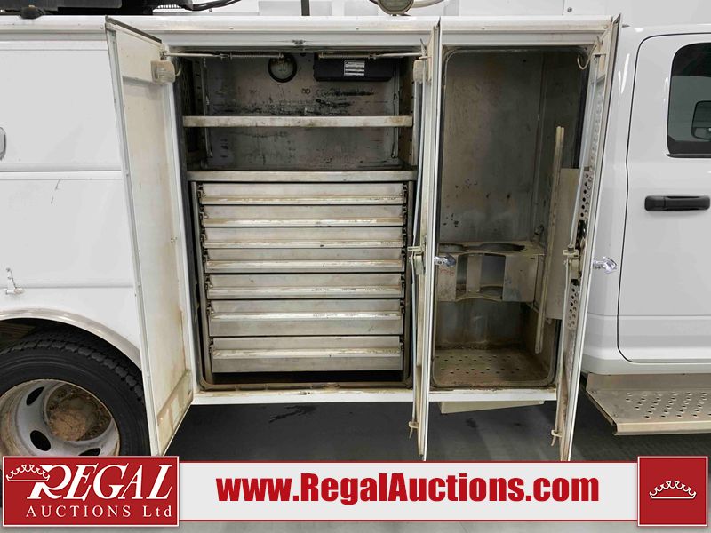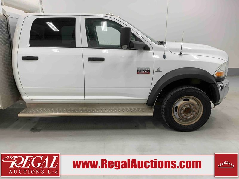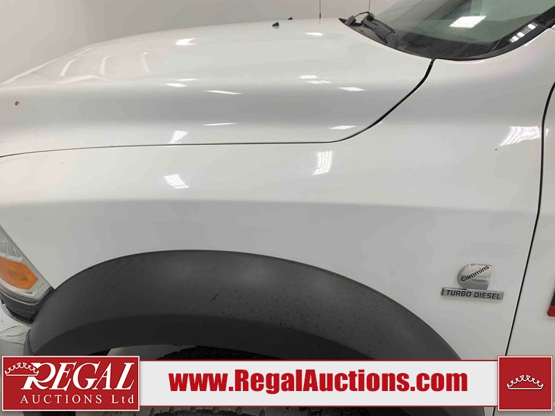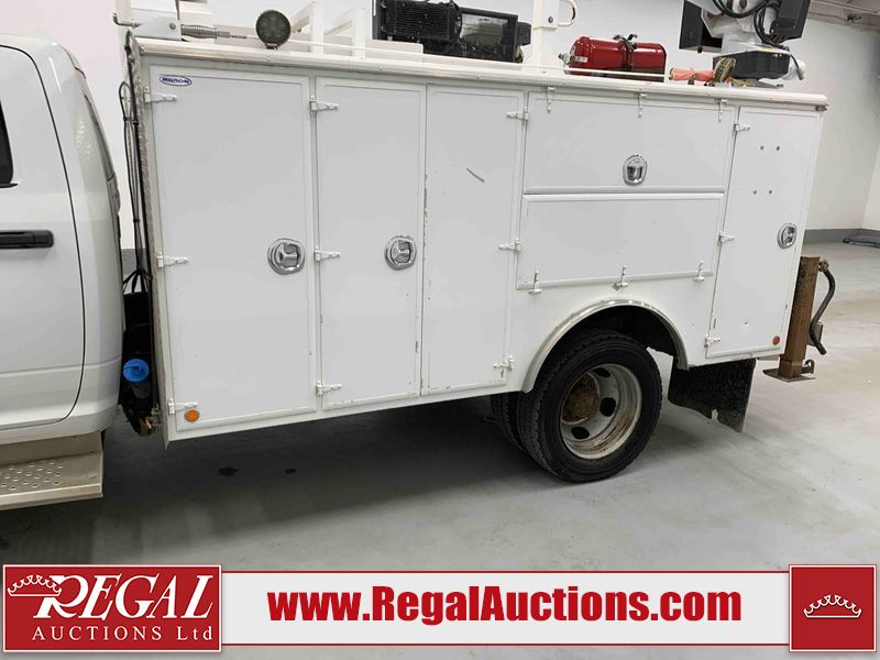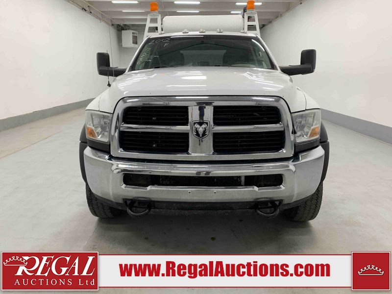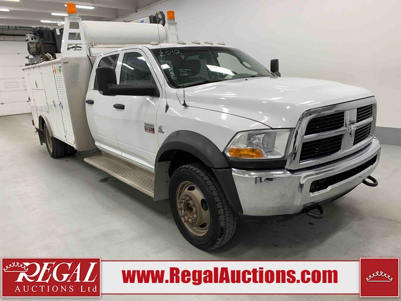 This 2012 DODGE RAM 5500 CREW CAB SERVICE TRUCK DRW 4WD is powered by a turbocharged 6 cylinder diesel engine and an automatic transmission. It is equipped with four wheel drive. The truck has seats for 6 people. The vehicle does not have a radio. The vehicle has some mechanical problems. The brakes are weak. (See Footnote 1) The body looks to be in fair condition overall. There is substantial hail on the roof. The grille is cracked. There is some hail on the hood. There are chips on the front bumper, hood, left rear fender, and right rear fender. There is minimal rust on the hood. There are scratches on the hood, left front door, rear bumper, and tail gate. There is incidental hail on the left front fender. There is minor paint peeling on the left rear fender and right rear fender. There are very minor chips in many areas around the body. There are very minor scratches in many areas around the body. The interior looks to be in fair condition overall. The driver's seat is worn. The roofliner is dirty. The windshield is cracked. All of the tires have lots of tread remaining. This truck is being sold by the fleet department of a corporation or government body. The vehicle will be sold with the following declarations: Fleet Vehicle (See Footnote 2) and Claims Total $3000 - $4999 (See Footnote 3). Footnotes: 1) We've identified some mechanical problems with the vehicle. However, the vehicle has not undergone a mechanical inspection and our findings are not to be considered a complete evaluation of the vehicle's mechanical condition. Review our Buyer Protection Policy to see how Regal Auctions protects you from undisclosed mechanical problems. 2) This vehicle is a commercially owned work vehicle. 3) The vehicle's total recorded insurance claims history is between $3,000 - $4,999. This is the amount of money that was paid out by an insurance company for repairs to cover claims against the vehicle's insurance policy. This information is provided by CarFax. Regal Auctions Ltd. makes no guarantee or warranty, either express or implied, with respect to the data provided in this report. The information has been provided from the consignor and from sources generally believed to be reliable, however the accuracy of this information cannot be guaranteed by Regal Auctions.