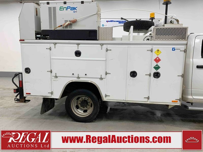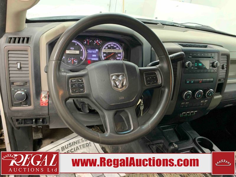 This 2012 DODGE RAM 5500 CREW CAB 4WD SERVICE BOX is powered by a turbocharged 6 cylinder diesel engine and an automatic transmission. It is equipped with four wheel drive. The truck has seats for 6 people. The mileage is average considering the truck's age. The vehicle has some mechanical problems. The battery is dead. The vehicle requires a boost to start and may require a booster pack in order to stay running. The catalytic converter is missing from the exhaust. (See Footnote 1) The body looks to be in good condition overall. There are minimal scratches on the front bumper, left front door, left rear door, and rear bumper. There are slight chips on the hood and left front fender. There is rust on the hood and left front fender. There is slight dent damage on the left front door and left rear door. There are very minor chips in many areas around the body. There are very minor scratches in a few areas around the body. There is very minor dent damage on the right front door. The interior looks to be in good condition overall. The roofliner is dirty. The windshield looks to be in good condition. The passenger front tire is worn. The rest of the tires all have lots of tread remaining. This truck is being sold by the fleet department of a corporation or government body. The vehicle will be sold with the following declarations: Fleet Vehicle (See Footnote 2). Footnotes: 1) We've identified some mechanical problems with the vehicle. However, the vehicle has not undergone a mechanical inspection and our findings are not to be considered a complete evaluation of the vehicle's mechanical condition. Review our Buyer Protection Policy to see how Regal Auctions protects you from undisclosed mechanical problems. 2) This vehicle is a commercially owned work vehicle. Regal Auctions Ltd. makes no guarantee or warranty, either express or implied, with respect to the data provided in this report. The information has been provided from the consignor and from sources generally believed to be reliable, however the accuracy of this information cannot be guaranteed by Regal Auctions.