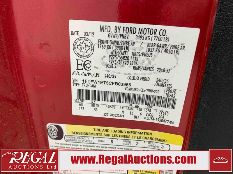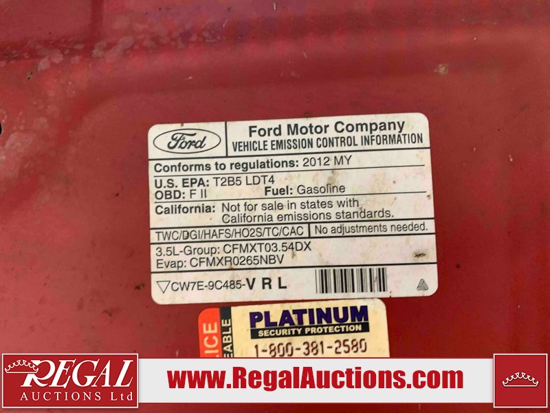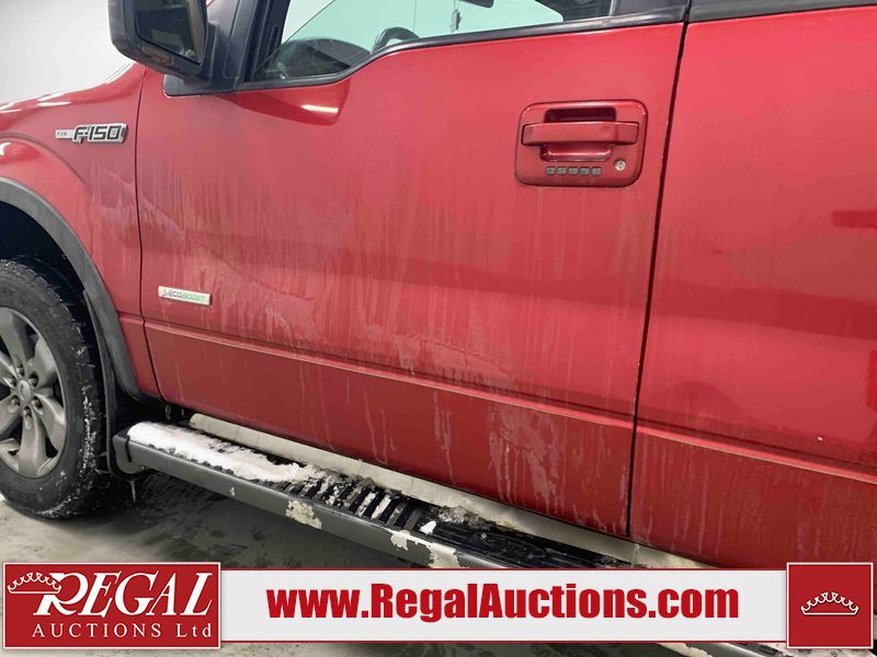 This 2012 FORD F-150 CREW CAB 4WD is powered by a 3.5L 6 cylinder gasoline engine and an automatic transmission. It is equipped with four wheel drive. The truck has seats for 5 people. The truck has high mileage for its age. The vehicle has high value options including leather upholstery, power seats, heated seats, navigation, and a backup camera. The body looks to be in rough condition overall. There is noteworthy paint peeling on the front bumper. The grille is vroken and partially missing. There is moderate hail on the hood. There is conspicuous rust on the roof. There are chips on the front bumper. There are scratches on the front bumper, roof, left front fender, tail gate, right rear fender, right rear door, right front door, and right front fender. There is slight hail on the roof. There is minor dent damage on the left rear door, left rear fender, and right front fender. There are very minor chips in many areas around the body. There are very minor scratches in many areas around the body. The interior looks to be in good condition overall. The driver's seat is worn. The windshield is cracked. The rear tires are worn. The front tires have lots of tread remaining. This truck is being sold by an automotive broker. Regal Auctions Ltd. makes no guarantee or warranty, either express or implied, with respect to the data provided in this report. The information has been provided from the consignor and from sources generally believed to be reliable, however the accuracy of this information cannot be guaranteed by Regal Auctions.