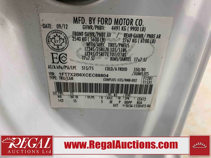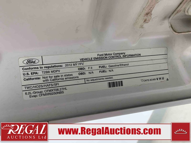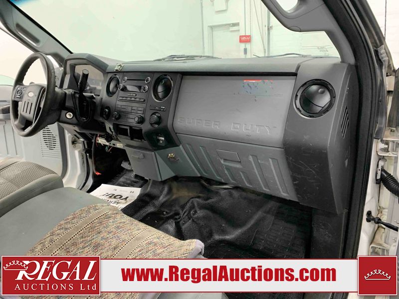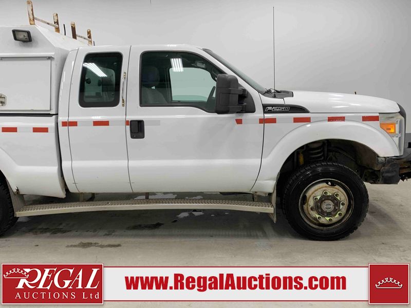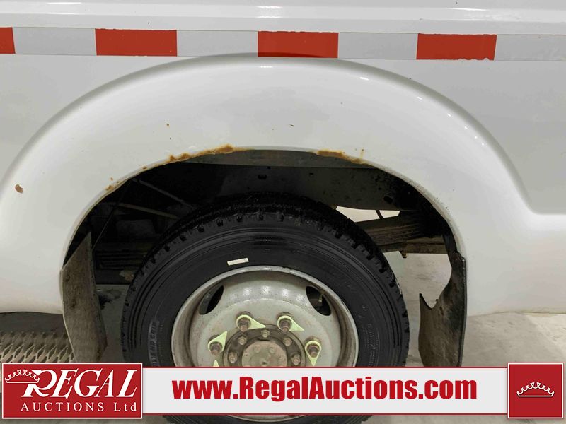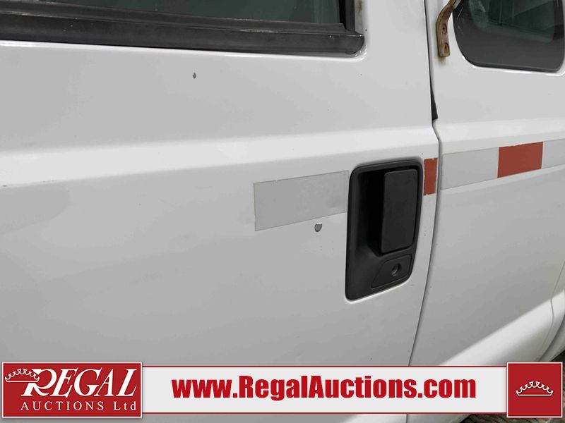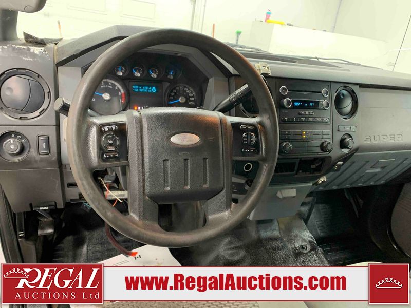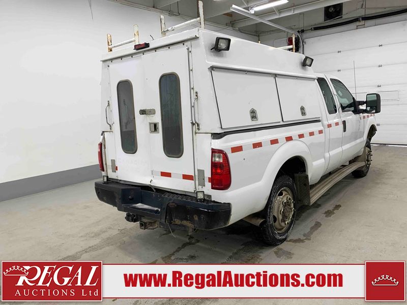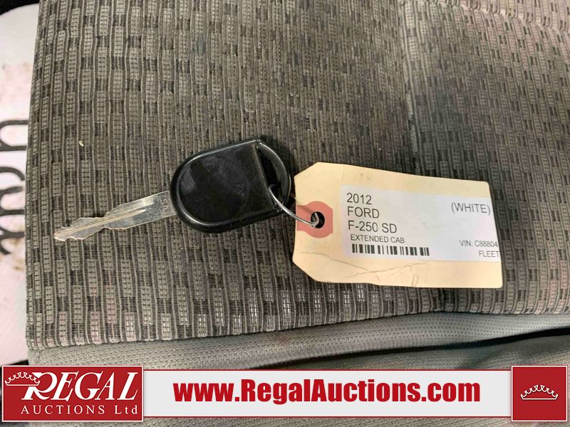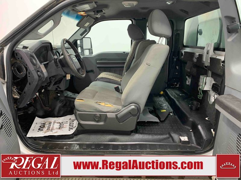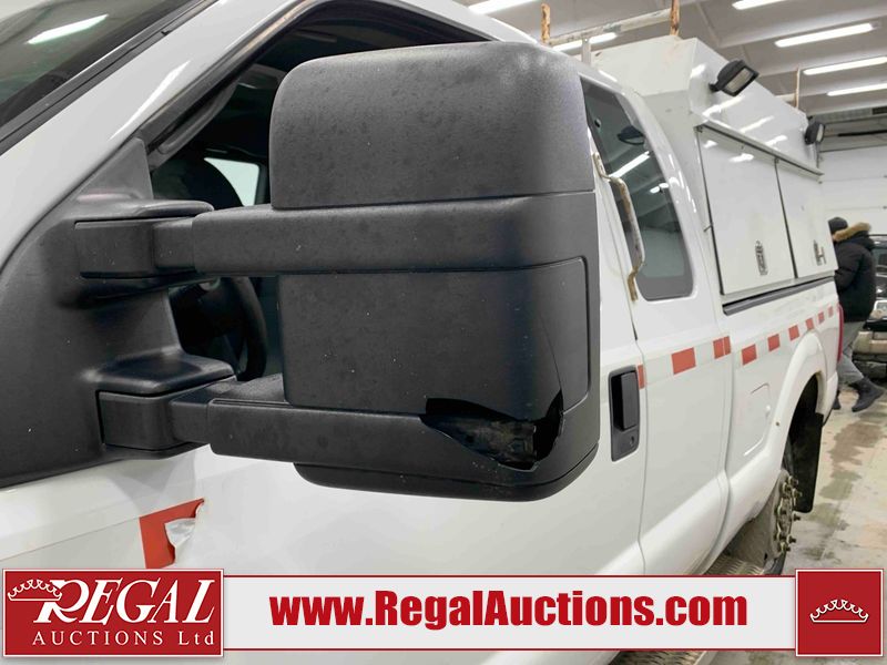 This 2012 FORD F-250 SD XL SUPERCAB 4WD is powered by a 8 cylinder gasoline engine and an automatic transmission. It is equipped with four wheel drive. The truck has seats for 3 people. The truck has high mileage for its age. The vehicle does not have power windows or power locks. The body looks to be in rough condition overall. There is extensive dent damage on the rear bumper. The tail gate is missing. There is a fair amount of rust on the front bumper, left rear fender, and right rear fender. There is some dent damage on the front bumper and right front fender. The right rear fender is cracked. The grille is cracked. There is minimal dent damage on the hood, roof, left front fender, left front door, and right rear fender. There is hail on the hood. There is slight rust on the left front fender, left front door, rear bumper, right rear door, and right front door. There are chips on the left front fender, left front door, left rear fender, and right front door. There are scratches on the right rear fender, right rear door, and right front door. There are chips in a few areas around the body. There are scratches on the left rear door. The interior looks to be in fair condition overall. The driver's seat is worn. The roofliner is dirty. The driver side mirror housing is broken. The windshield is cracked. All of the tires have lots of tread remaining. This truck is being sold by the fleet department of a corporation or government body. The vehicle will be sold with the following declarations: Fleet Vehicle (See Footnote 1). Footnotes: 1) This vehicle is a commercially owned work vehicle. Regal Auctions Ltd. makes no guarantee or warranty, either express or implied, with respect to the data provided in this report. The information has been provided from the consignor and from sources generally believed to be reliable, however the accuracy of this information cannot be guaranteed by Regal Auctions.