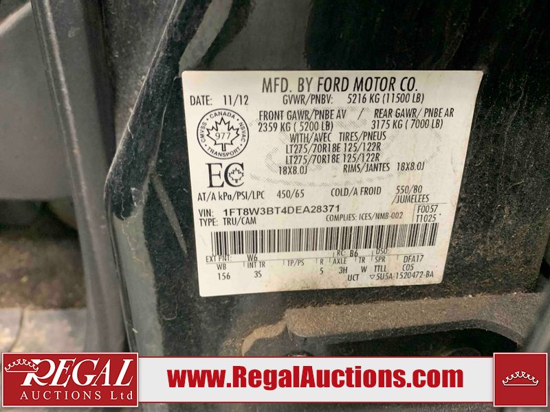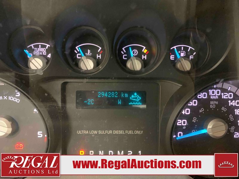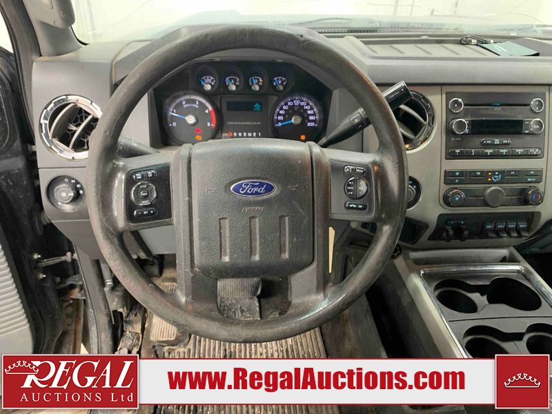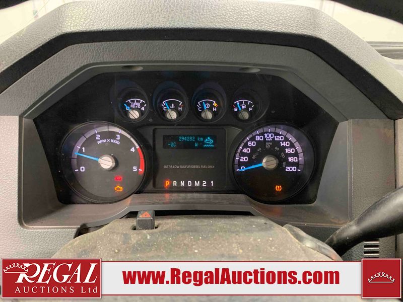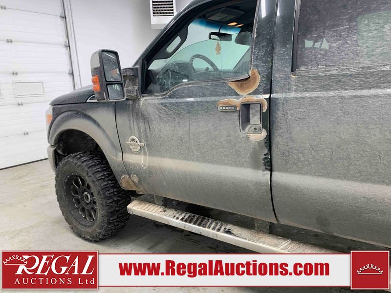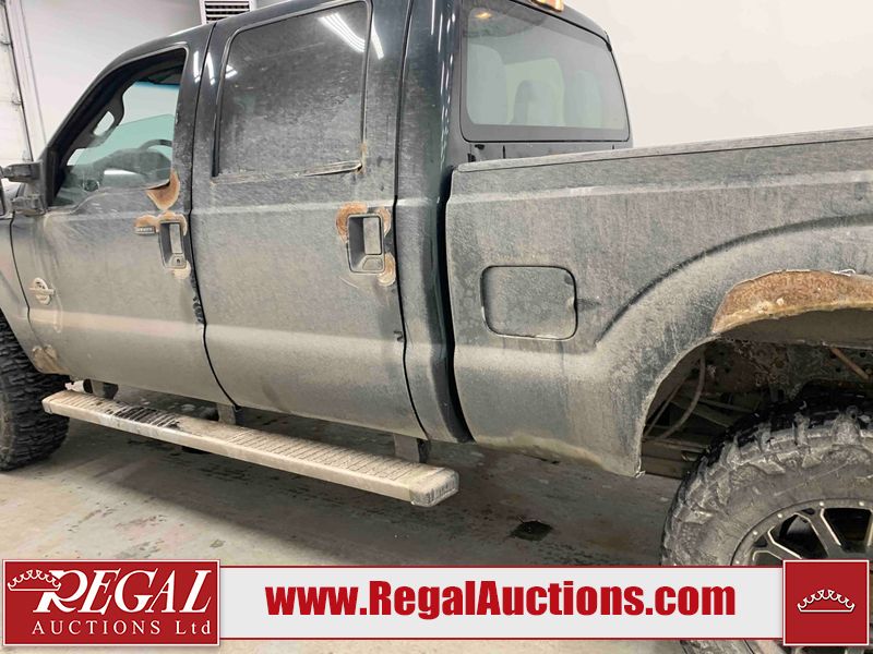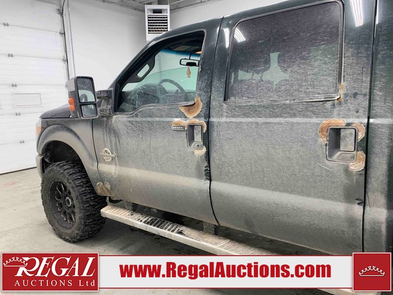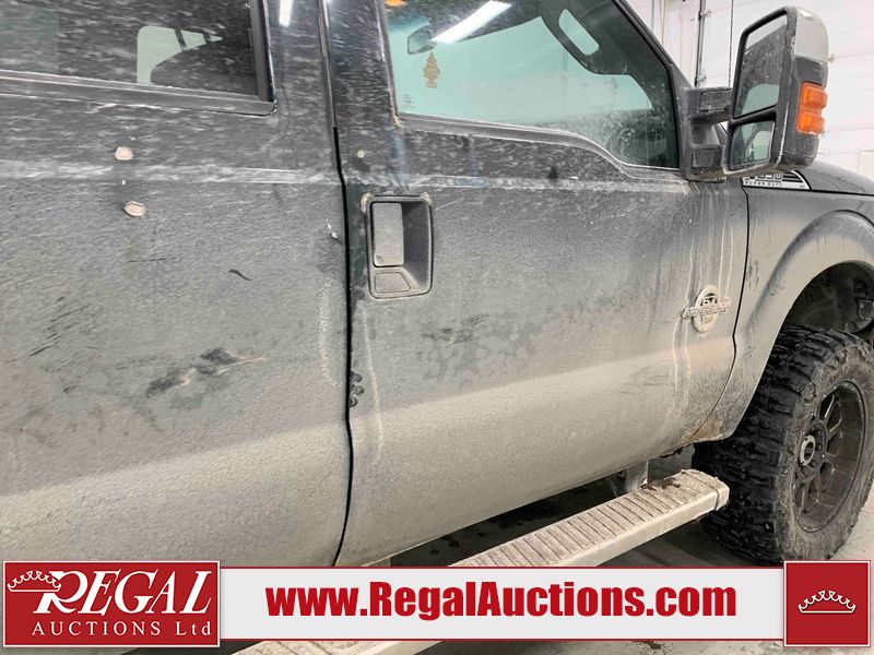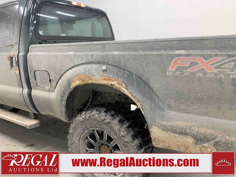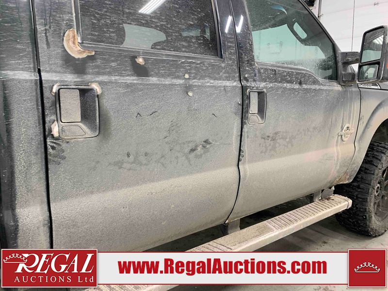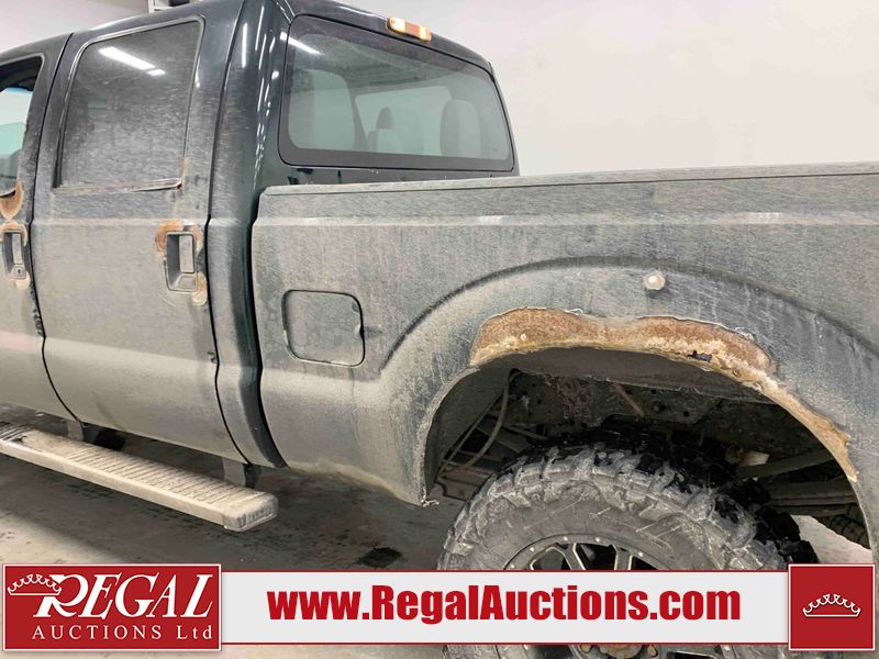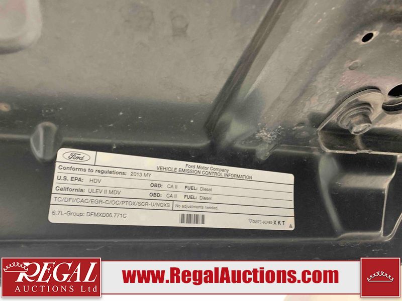 This 2013 FORD F-350 SD CREW CAB 4WD is powered by a 6.7L V8 cylinder diesel engine and an automatic transmission. It is equipped with four-wheel drive. The truck has seats for 5 people. The truck has high mileage for its age. The vehicle has high-value options including power seats and a backup camera. The vehicle does not have a radio. The Check Engine, Battery, and Tire Pressure lights are on. The body looks to be in rough condition overall. There is very bad rust on the left rear door, left rear fender, and right rear fender. There is a fair amount of rust on the left front fender, left front door, and right rear door. There is some paint peeling on the left front door, left rear door, left rear fender, right rear fender, and right rear door. There are slight chips on the front bumper, hood, roof, left front fender, left front door, left rear door, left rear fender, rear bumper, tailgate, right rear fender, right rear door, right front door, and right front fender. There are incidental scratches on the front bumper, hood, roof, left front fender, left front door, left rear door, left rear fender, rear bumper, tailgate, right rear fender, right rear door, right front door, and right front fender. There is paint peeling on the left front fender, right front door, and right front fender. There is minimal dent damage on the tailgate. There is rust on the right front door and right front fender. There are very minor chips on the grille. The interior looks to be in fair condition overall. The driver's seat is torn. The passenger seat and rear seats are stained. The doors are worn. The dashboard is dirty. The windshield is damaged. All of the tires have lots of tread remaining. This truck is being sold by a franchise dealership. The vehicle will be sold with the following declarations: Dealership Trade-In (See Footnote 1). Footnotes: 1) This vehicle is being sold on behalf of a franchise dealership. Franchise Dealerships are automotive sales companies who are directly connected to an automotive manufacturer like Ford, Tesla, Honda, BMW, or similar. Regal Auctions Ltd. makes no guarantee or warranty, either express or implied, with respect to the data provided in this report. The information has been provided from the consignor and from sources generally believed to be reliable, however the accuracy of this information cannot be guaranteed by Regal Auctions.
