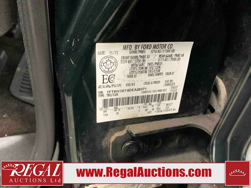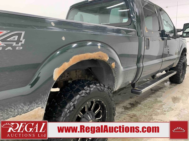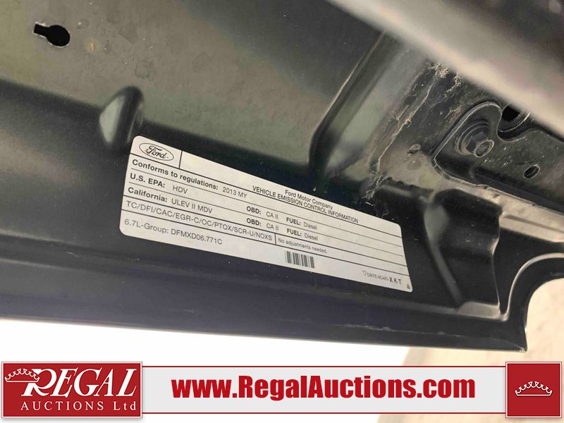 This 2013 FORD F-350 SD SUPER CAB 4WD SWB is powered by a turbocharged 6.7L V8 diesel engine and an automatic transmission. It is equipped with four-wheel drive. The truck has seats for 5 people. The truck has high mileage for its age. The vehicle has high-value options, including power seats and a backup camera. The Check Engine, Tire Pressure, and Battery lights are on. The body looks to be in rough condition overall. There is severe rust on the right front fender. There is a fair amount of paint peeling on the left front fender, left front door, left rear door, left rear fender, right rear fender, right rear door, and right front door. There is some rust on the left front fender, left front door, left rear door, left rear fender, right rear fender, right rear door, right front door, and right front fender. There are minimal chips on the front bumper, hood, roof, left front fender, left front door, left rear door, left rear fender, rear bumper, tailgate, right rear fender, right rear door, right front door, and right front fender. There are incidental scratches on the front bumper, left front fender, left rear door, left rear fender, rear bumper, tailgate, right rear fender, right rear door, right front door, and right front fender. There is incidental dent damage on the hood, left rear door, tailgate, right rear fender, and right rear door. There are very minor scratches in a few areas around the body. There is very minor dent damage on the right front door. The grille is loose. The interior looks to be in good condition overall. The driver seat is torn. The windshield is cracked. All of the tires have lots of tread remaining. This truck is being sold by a franchise dealership. The vehicle will be sold with the following declarations: Dealership Trade-In (See Footnote 1). Footnotes: 1) This vehicle is being sold on behalf of a franchise dealership. Franchise Dealerships are automotive sales companies who are directly connected to an automotive manufacturer like Ford, Tesla, Honda, BMW, or similar. Regal Auctions Ltd. makes no guarantee or warranty, either express or implied, with respect to the data provided in this report. The information has been provided from the consignor and from sources generally believed to be reliable, however the accuracy of this information cannot be guaranteed by Regal Auctions.