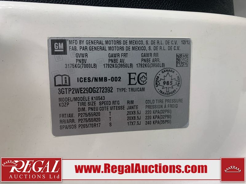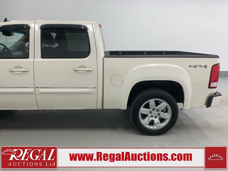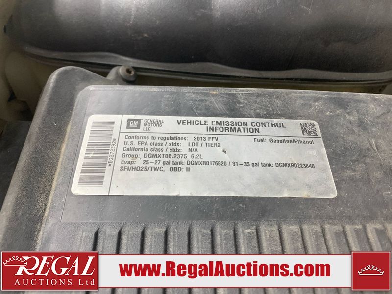 This 2013 GMC SIERRA 1500 SLT CREW CAB is powered by a 6.2L V8 gasoline engine and an automatic transmission. It is equipped with four-wheel drive. The truck has seats for 5 people. The truck has low mileage for its age. The vehicle has high-value options including a sunroof, leather upholstery, power seats, and a DVD Player. The Check Engine, Tire Pressure, and Airbag lights are on. The body looks to be in rough condition overall. There is noteworthy rust on the right rear fender. There are scratches on the front bumper, hood, left rear fender, rear bumper, tailgate, right rear door, and right front door. There are minimal chips on the grille and hood. There is dent damage on the left front fender, left rear door, left rear fender, rear bumper, tailgate, right front door, and right front fender. There is rust on the left rear fender. There are very minor chips in many areas around the body. There is very minor dent damage on the hood. There are very minor scratches in many areas around the body. The interior looks to be in good condition overall. The driver's seat is torn. The windshield is cracked. All of the tires have lots of tread remaining. This truck is being sold by an automotive broker. The vehicle will be sold with the following declarations: Out of Province - MB (See Footnote 1). Footnotes: 1) The vehicle's last registered jurisdiction is Manitoba. The purchaser must have the vehicle undergo and pass an Out of Province inspection before it can be registered in Alberta. Regal Auctions Ltd. makes no guarantee or warranty, either express or implied, with respect to the data provided in this report. The information has been provided from the consignor and from sources generally believed to be reliable, however the accuracy of this information cannot be guaranteed by Regal Auctions.