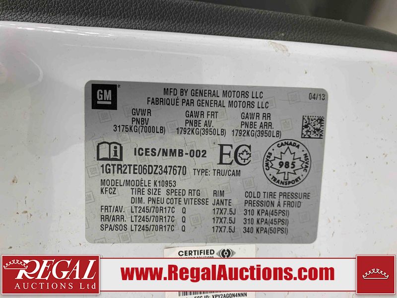 This 2013 GMC SIERRA EXT CAB 4WD is powered by a 5.3L V8 gasoline engine and an automatic transmission. It is equipped with four-wheel drive. The truck has seats for 6 people. The truck has low mileage for its age. The vehicle does not have power windows or power locks. The body looks to be in rough condition overall. The rear bumper is broken. There is a fair amount of paint overspray on the left front door, left rear door, left rear fender, tail gate, right rear fender, right rear door, and right front door. There are incidental chips on the hood, left front door, left rear door, left rear fender, right rear fender, right rear door, and right front door. There is minor rust on the hood, left front door, and right rear door. There are scratches on the left front door, left rear door, left rear fender, tail gate, right rear fender, right rear door, and right front door. There is slight dent damage on the tail gate and right rear fender. There are very minor chips in many areas around the body. There are very minor scratches in many areas around the body. The interior looks to be in fair condition overall. The driver's seat is torn. The rear seats are stained. The doors are worn. The windshield is chipped. All of the tires have lots of tread remaining. This truck is being sold by an automotive broker. The vehicle will be sold with the following declarations: Claims Total $1000 - $2999 (See Footnote 1). Footnotes: 1) The vehicle's total recorded insurance claims history is between $1,000 - $2,999. This is the amount of money that was paid out by an insurance company for repairs to cover claims against the vehicle's insurance policy. This information is provided by CarFax. Regal Auctions Ltd. makes no guarantee or warranty, either express or implied, with respect to the data provided in this report. The information has been provided from the consignor and from sources generally believed to be reliable, however the accuracy of this information cannot be guaranteed by Regal Auctions.
