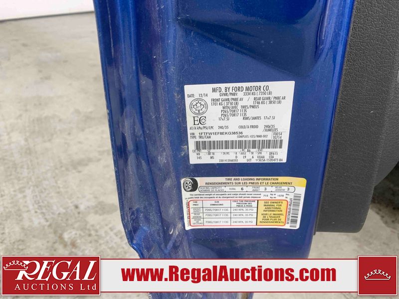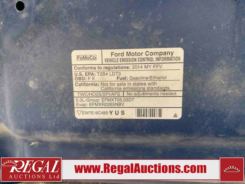 This 2014 FORD F-150 XLT CREW CAB is powered by a 5.0L 8 cylinder gasoline engine and an automatic transmission. It is equipped with four wheel drive. The truck has seats for 6 people. The truck has low mileage for its age. The vehicle has high value options including heated seats and a backup camera. The Check Engine light is on. The body looks to be in rough condition overall. There are minor chips on the front bumper, grille, hood, roof, left front fender, left front door, left rear door, left rear fender, rear bumper, trunk lid, rear door, tail gate, pickup bed, right rear fender, right rear door, right front door, and right front fender. There are scratches on the front bumper, hood, roof, left front fender, left front door, left rear door, left rear fender, rear bumper, trunk lid, rear door, tail gate, pickup bed, right rear fender, right rear door, right front door, and right front fender. The interior looks to be in good condition overall. The dashboard, driver's seat, passenger seat, rear seats, and doors are dirty. The carpet is dirty. The windshield is cracked. All of the tires have lots of tread remaining. This truck is being sold by a franchise dealership. The vehicle will be sold with the following declarations: Dealership Trade-In (See Footnote 1). Footnotes: 1) This vehicle is being sold on behalf of a franchise dealership. Franchise Dealerships are automotive sales companies who are directly connected to an automotive manufacturer like Ford, Tesla, Honda, BMW, or similar. Regal Auctions Ltd. makes no guarantee or warranty, either express or implied, with respect to the data provided in this report. The information has been provided from the consignor and from sources generally believed to be reliable, however the accuracy of this information cannot be guaranteed by Regal Auctions.