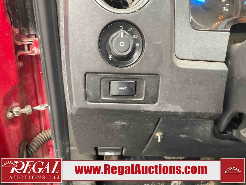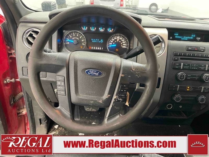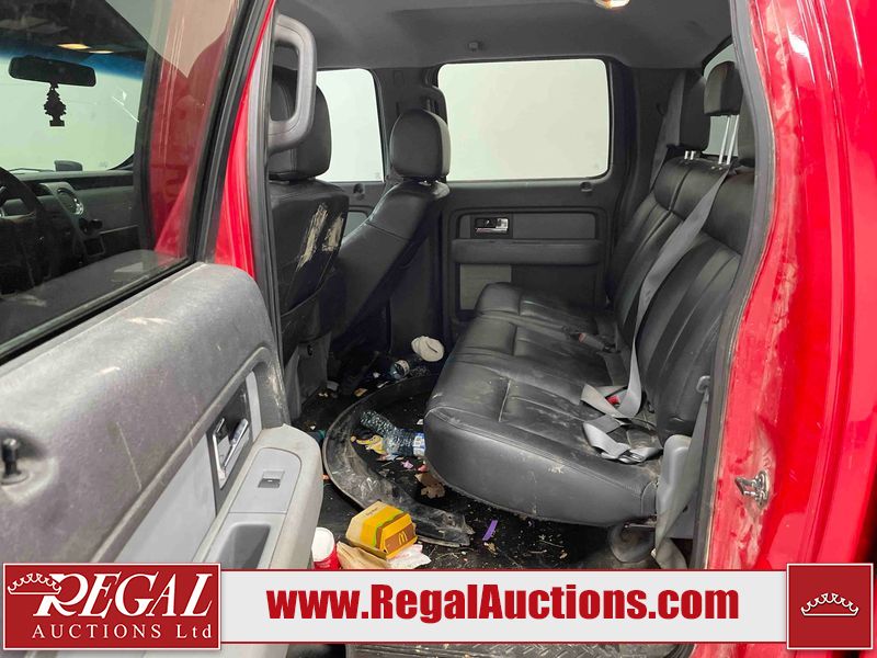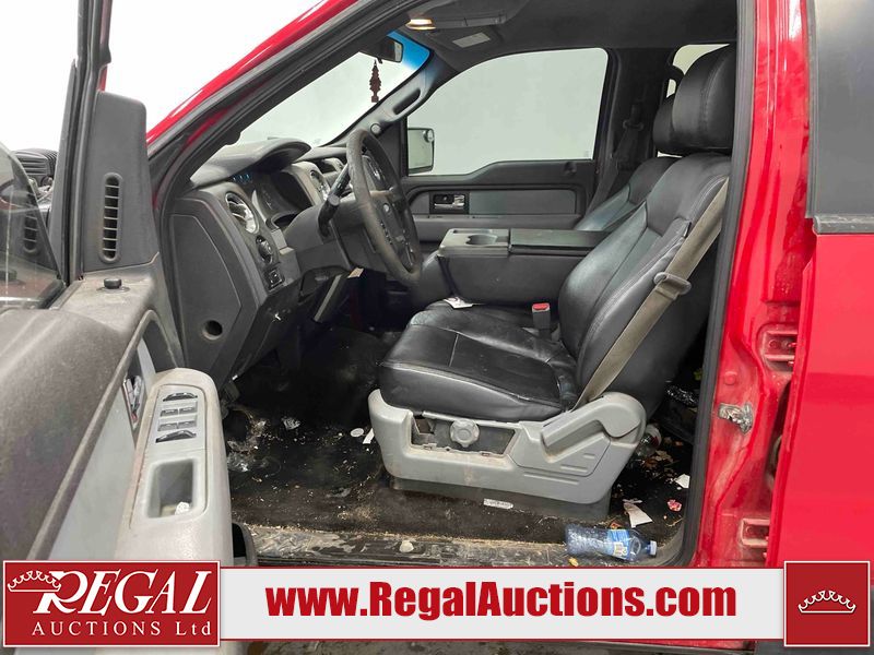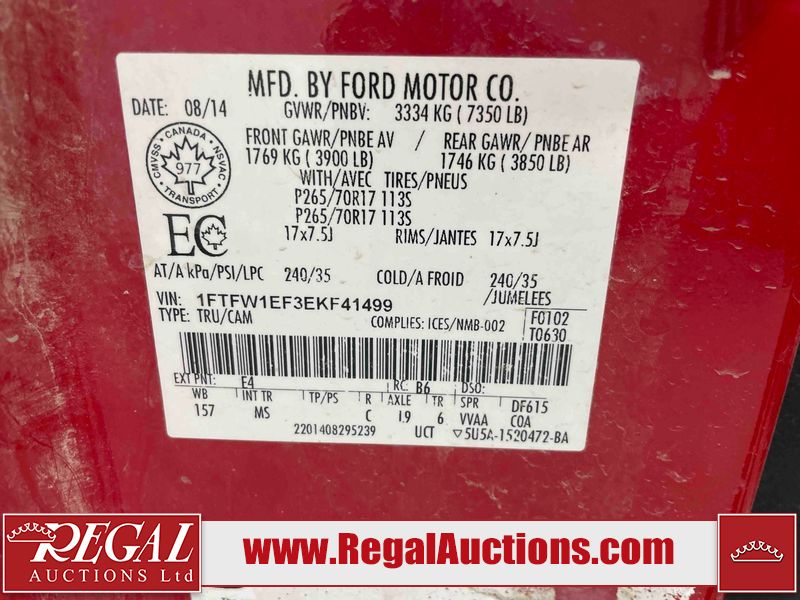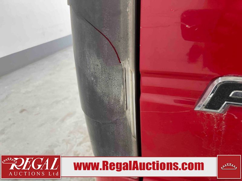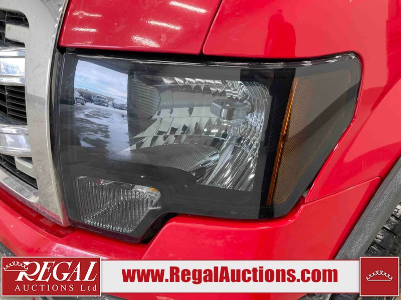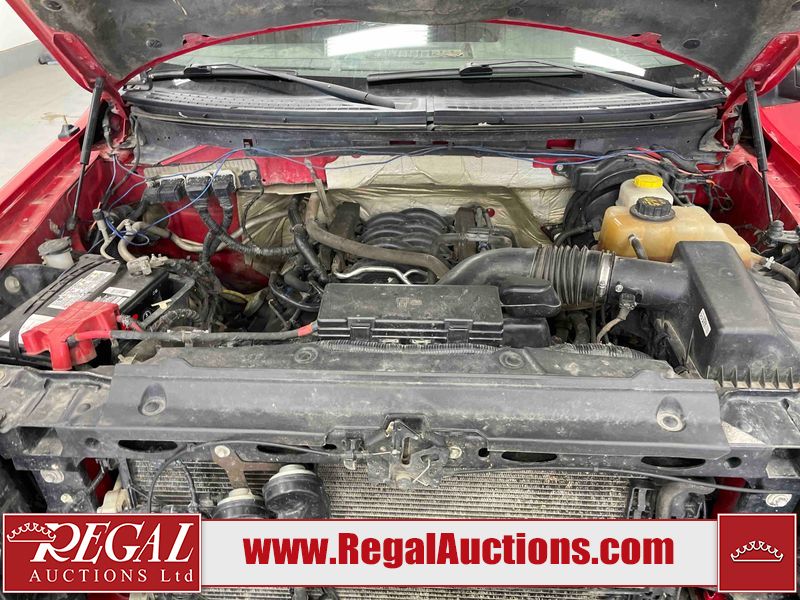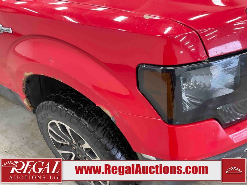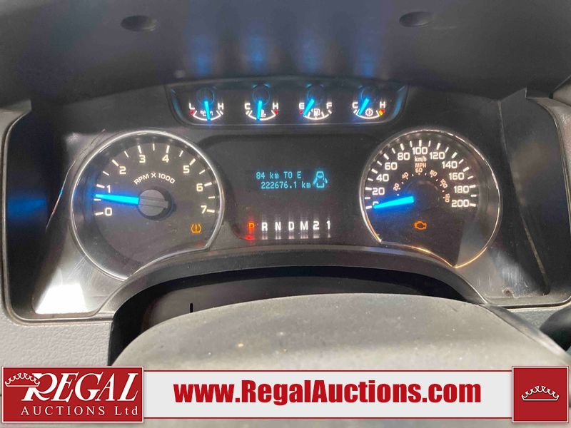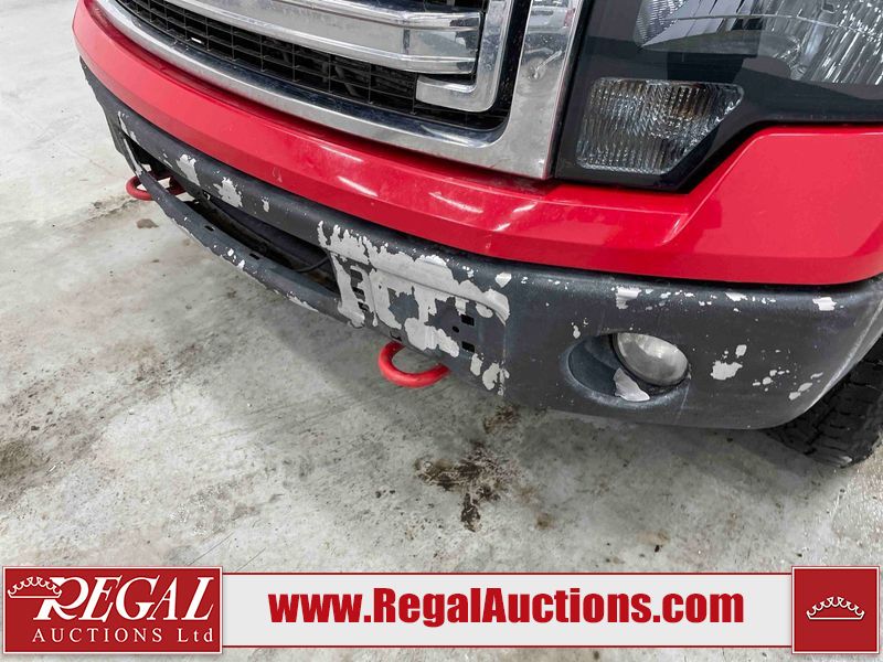 This 2014 FORD F150 XLT SUPER CREW 4WD SWB 5.0L is powered by a 8 cylinder gasoline engine and an automatic transmission. It is equipped with four wheel drive. The truck has seats for 6 people. The mileage is average considering the truck's age. The vehicle has high value options including leather upholstery. The Check Engine and Tire Pressure lights are on. Aftermarket headlights have been installed. Aftermarket lights have been mounted to the windshield cowel. There is paint overspray fog light damage to the head lights. There is tint damage to the tail lights. The vehicle has some mechanical problems. The exhaust is noisy. The body looks to be in rough condition overall. The front bumper, left front door, left rear door, left rear fender, rear bumper, right rear fender, right rear door, and right front door have been repainted poorly. There is extensive paint peeling on the front bumper. There is noteworthy chrome peeling on the grille. There is a fair amount of paint overspray on the left front fender and right front fender. There are some scratches on the left rear fender. There is conspicuous paint peeling on the rear bumper and right front fender. There is a fair amount of rust on the right front fender. There is dent damage on the front bumper, roof, rear bumper, tail gate, right rear fender, right rear door, right front door, and right front fender. There are minimal chips on the hood, roof, left front fender, and right front fender. There are minimal scratches on the hood, tail gate, right rear fender, and right front fender. There is slight rust on the roof. There are very minor chips in many areas around the body. There is very minor dent damage in many areas around the body. There are very minor scratches in many areas around the body. The left tail light is broken. The interior looks to be in rough condition overall. The dashboard and driver's seat are broken. The passenger seat, rear seats, and doors are worn. The carpet is dirty. The roof liner is dirty. The windshield is cracked. The driver side mirror is broken. There is tint damage to the windows. The front tires are both worn. The rear tires are nearly bald and should be replaced. Aftermarket alloy wheels have been mounted, the factory alloys are missing. All windows have been poorly tinted.