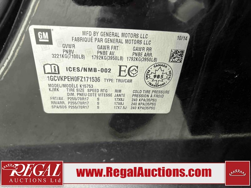 This 2015 CHEVROLET SILVERADO 1500 EXTENDED CAB 4WD is powered by a 4.3L V6 gasoline engine and an automatic transmission. It is equipped with four-wheel drive. The truck has seats for 6 people. The truck has low mileage for its age. The Check Engine and Tire Pressure lights are on. The body looks to be in rough condition overall. There is severe hail on the hood and roof. There is a fair amount of hail on the left front fender, left front door, left rear fender, and right front fender. There is incidental rust on the roof. There are scratches on the left front door, left rear door, left rear fender, and right rear fender. There is hail on the left rear door and right rear fender. The tail gate has parts missing. There is incidental dent damage on the right rear fender. There are very minor chips in many areas around the body. There are very minor scratches in many areas around the body. There is very minor dent damage on the right front door. The interior looks to be in good condition overall. The windshield is chipped. All of the tires have lots of tread remaining. This truck is being sold by an automotive broker. The vehicle will be sold with the following declarations: Hail Damage (See Footnote 1) and Out of Province - MB (See Footnote 2). Footnotes: 1) This vehicle shows signs of damage from a hail storm. Hail damage is not always clearly visible in photographs. 2) The vehicle's last registered jurisdiction is Manitoba. The purchaser must have the vehicle undergo and pass an Out of Province inspection before it can be registered in Alberta. Regal Auctions Ltd. makes no guarantee or warranty, either express or implied, with respect to the data provided in this report. The information has been provided from the consignor and from sources generally believed to be reliable, however the accuracy of this information cannot be guaranteed by Regal Auctions.