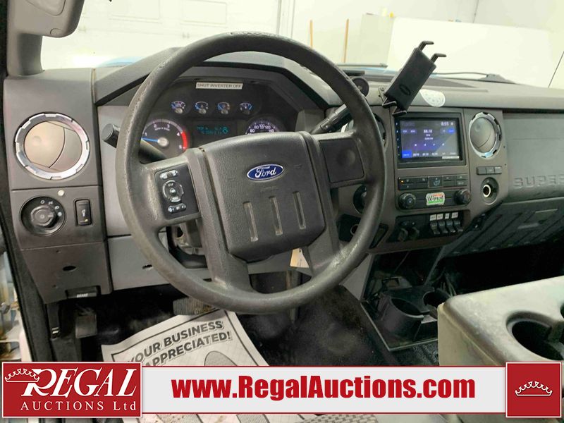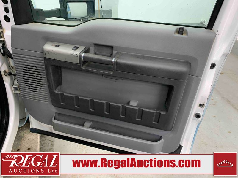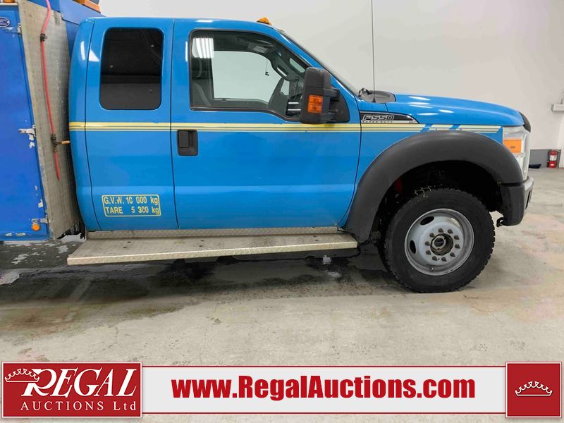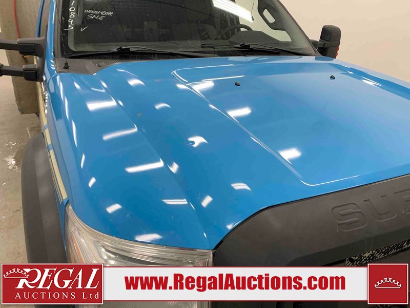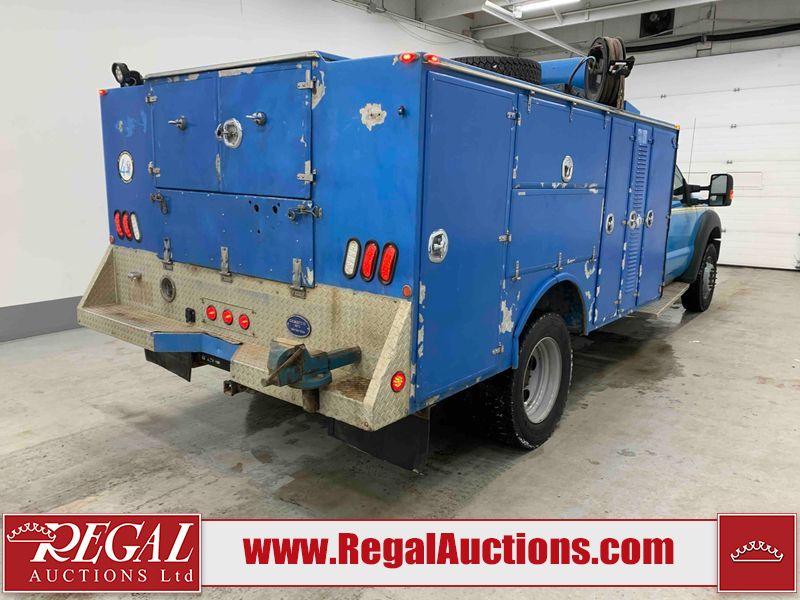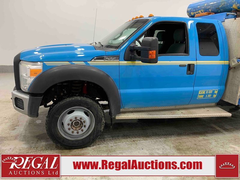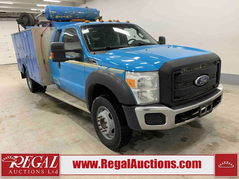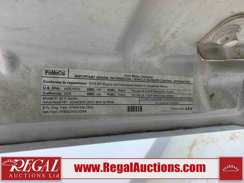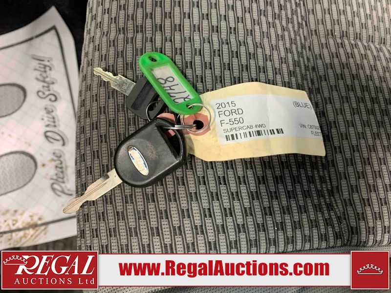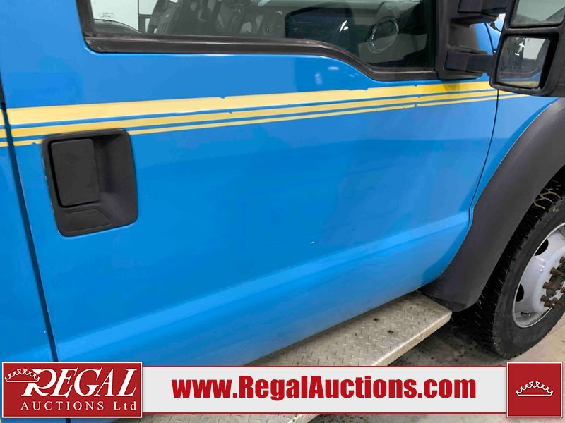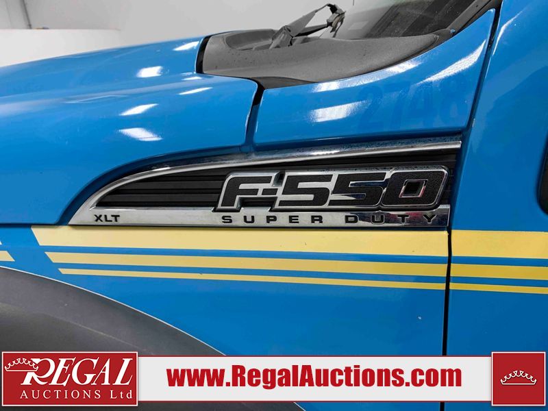 This 2015 FORD F-550 XLT SUPERCAB SERVICE TRUCK DRW 4WD is powered by a turbocharged 440HP 6.7L 8CYL DIESEL 8 cylinder diesel engine and an automatic transmission. It is equipped with four wheel drive. The truck has seats for 3 people. The mileage is average considering the truck's age. The body looks to be in good condition overall. The grille is cracked. There is moderate rust on the left front door. There are scratches on the front bumper and hood. There is minimal dent damage on the hood. There are very minor chips in a few areas around the body. There are very minor scratches in some areas around the body. The interior looks to be in fair condition overall. The driver's seat is torn. The passenger seat is stained. The windshield looks to be in good condition. The passenger side front tire is nearly bald and should be replaced. The rest of the tries have lots of tread remaining. This truck is being sold by the fleet department of a corporation or government body. The vehicle will be sold with the following declarations: Fleet Vehicle (See Footnote 1). Footnotes: 1) This vehicle is a commercially owned work vehicle. Regal Auctions Ltd. makes no guarantee or warranty, either express or implied, with respect to the data provided in this report. The information has been provided from the consignor and from sources generally believed to be reliable, however the accuracy of this information cannot be guaranteed by Regal Auctions.