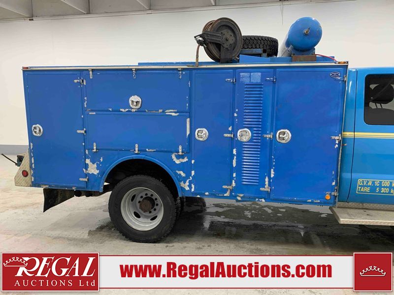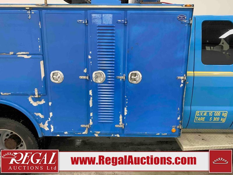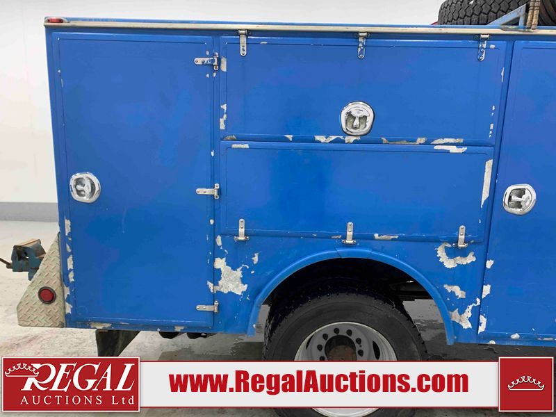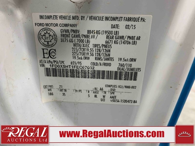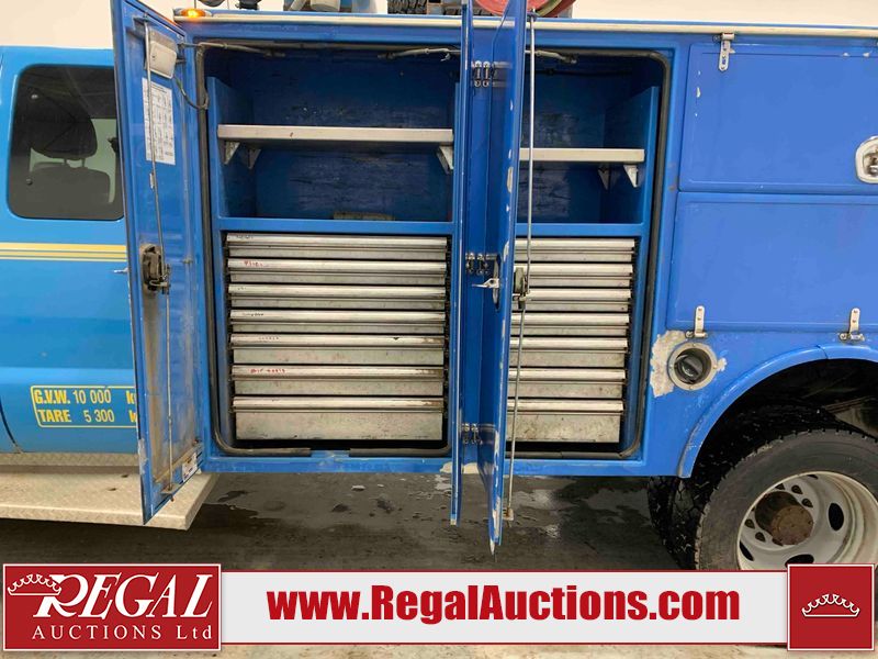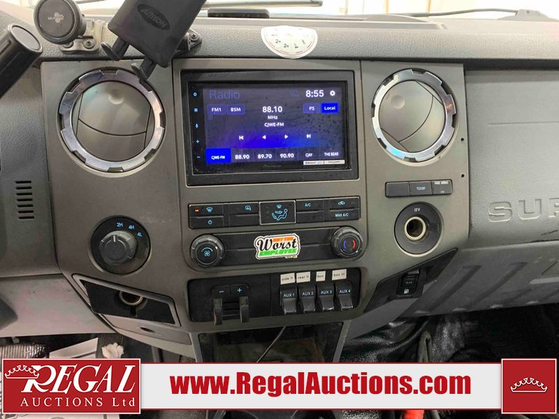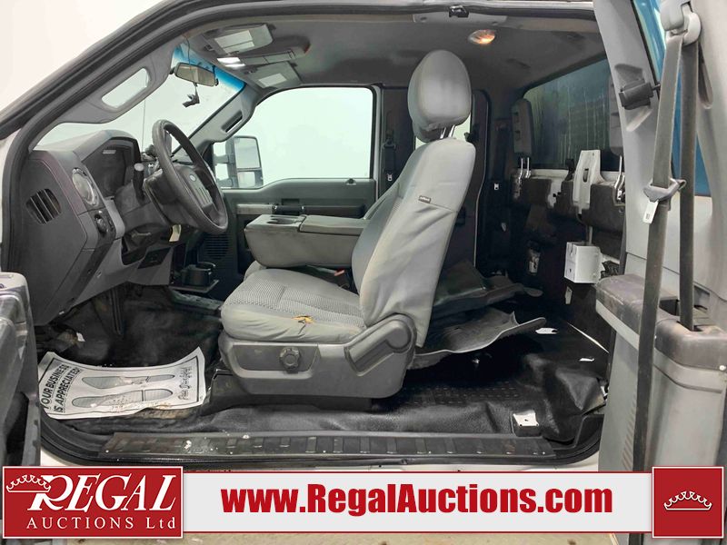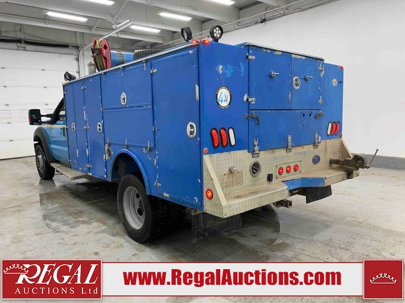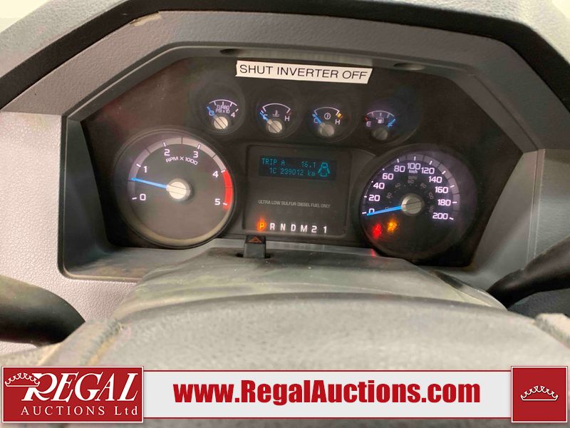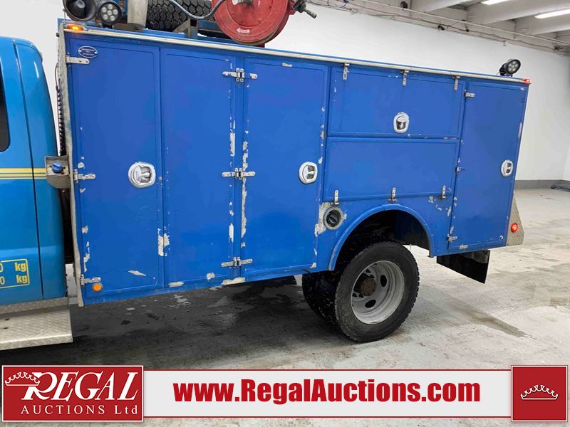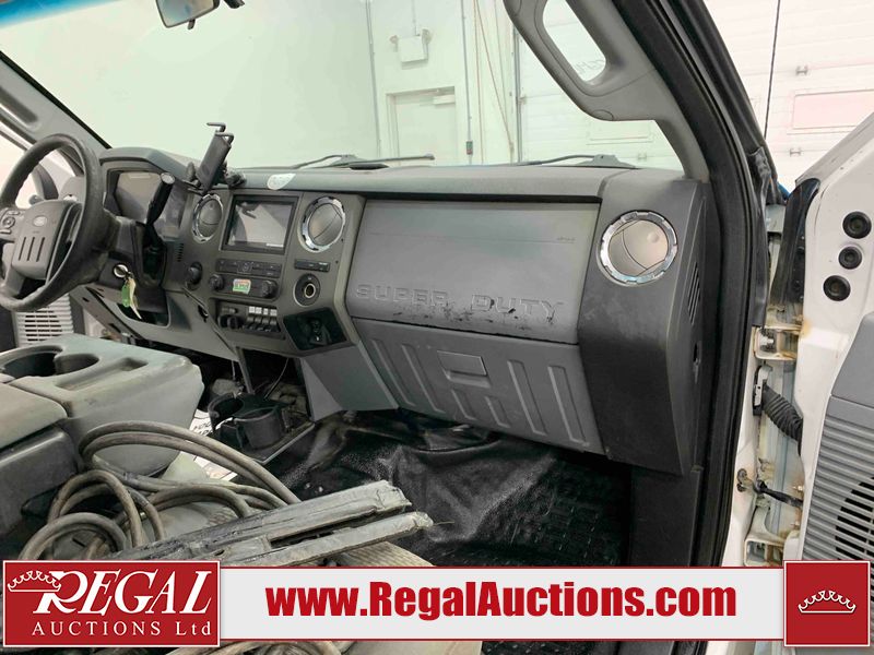 This 2015 FORD F-550 XLT SUPERCAB SERVICE TRUCK DRW 4WD is powered by a turbocharged 440HP 6.7L 8CYL DIESEL 8 cylinder diesel engine and an automatic transmission. It is equipped with four wheel drive. The truck has seats for 3 people. The mileage is average considering the truck's age. The body looks to be in good condition overall. The grille is cracked. There is moderate rust on the left front door. There are scratches on the front bumper and hood. There is minimal dent damage on the hood. There are very minor chips in a few areas around the body. There are very minor scratches in some areas around the body. The interior looks to be in fair condition overall. The driver's seat is torn. The passenger seat is stained. The windshield looks to be in good condition. The passenger side front tire is nearly bald and should be replaced. The rest of the tries have lots of tread remaining. This truck is being sold by the fleet department of a corporation or government body. The vehicle will be sold with the following declarations: Fleet Vehicle (See Footnote 1). Footnotes: 1) This vehicle is a commercially owned work vehicle. Regal Auctions Ltd. makes no guarantee or warranty, either express or implied, with respect to the data provided in this report. The information has been provided from the consignor and from sources generally believed to be reliable, however the accuracy of this information cannot be guaranteed by Regal Auctions.