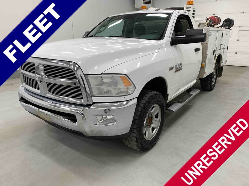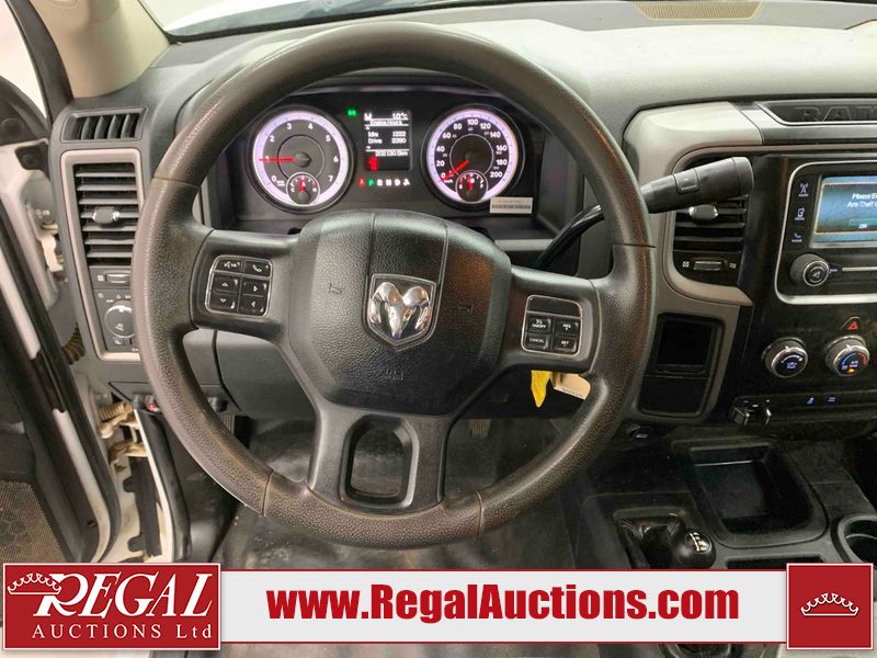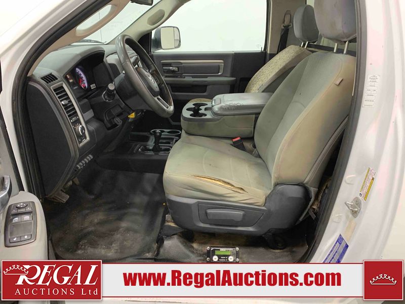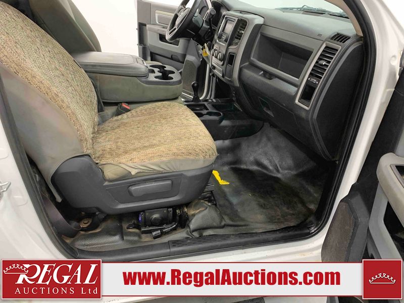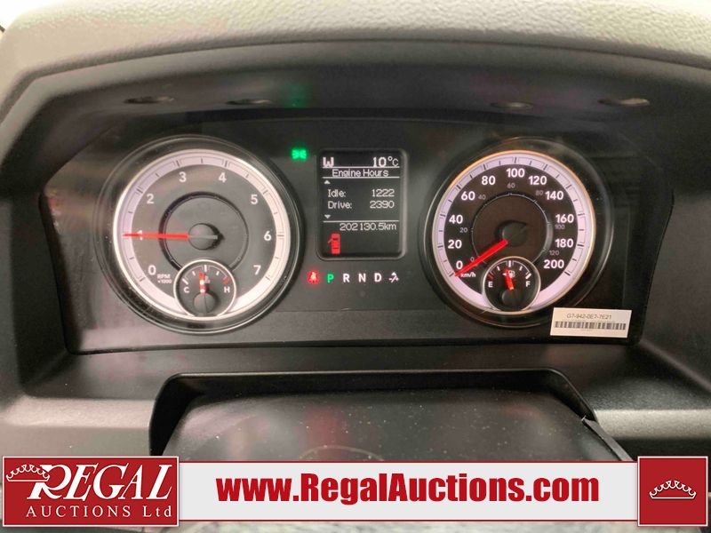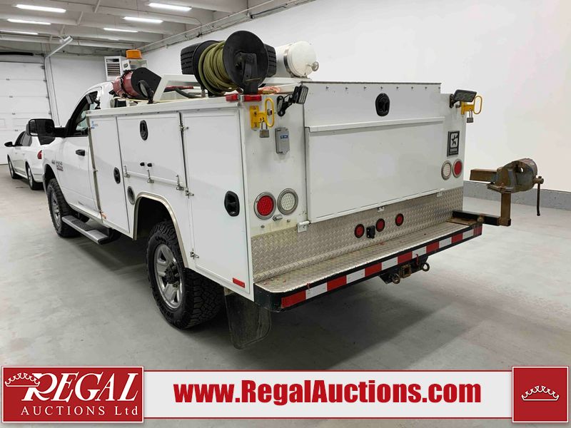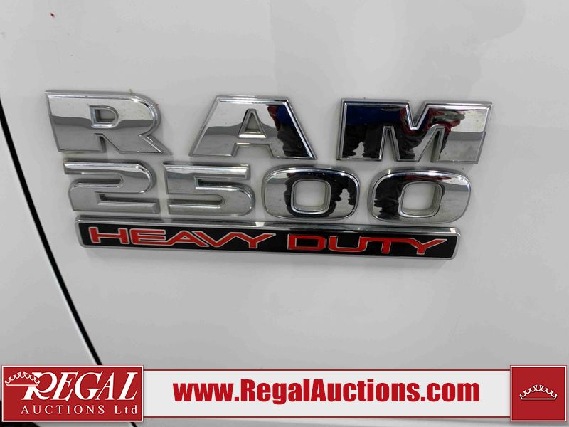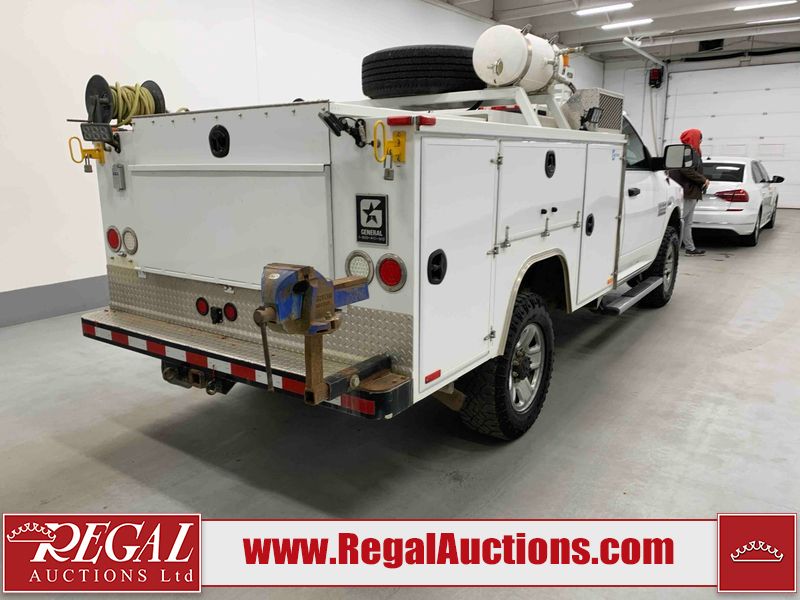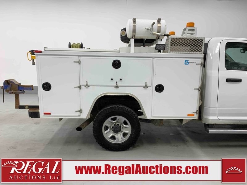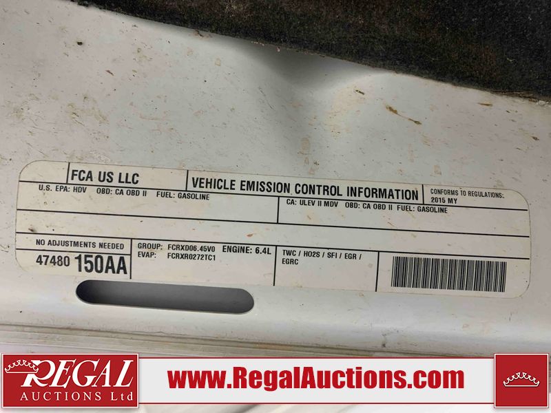 This 2015 RAM 2500 SLT CREW CAB SERVICE TRUCK DRW 4WD is powered by a 8 cylinder gasoline engine and an automatic transmission. It is equipped with four wheel drive. The truck has seats for 3 people. The body looks to be in fair condition overall. There is moderate dent damage on the hood and roof. There are minimal chips on the front bumper, hood, left front door, left rear fender, right rear fender, and right front door. There is minimal dent damage on the front bumper and left front door. There are scratches on the left front door, rear bumper, tail gate, and right rear fender. There are very minor chips in a few areas around the body. There are very minor scratches in a few areas around the body. The interior looks to be in fair condition overall. The driver's seat is torn. The driver's seat is stained. The roofliner is dirty. The passenger side mirror housing is broken. The windshield is cracked. The driver side mirror is broken. The passenger side mirror is broken. The driver's side front tire is worn. All of the other tires have lots of tread remaining. This truck is being sold by the fleet department of a corporation or government body. The vehicle will be sold with the following declarations: Fleet Vehicle (See Footnote 1). Footnotes: 1) This vehicle is a commercially owned work vehicle. Regal Auctions Ltd. makes no guarantee or warranty, either express or implied, with respect to the data provided in this report. The information has been provided from the consignor and from sources generally believed to be reliable, however the accuracy of this information cannot be guaranteed by Regal Auctions.